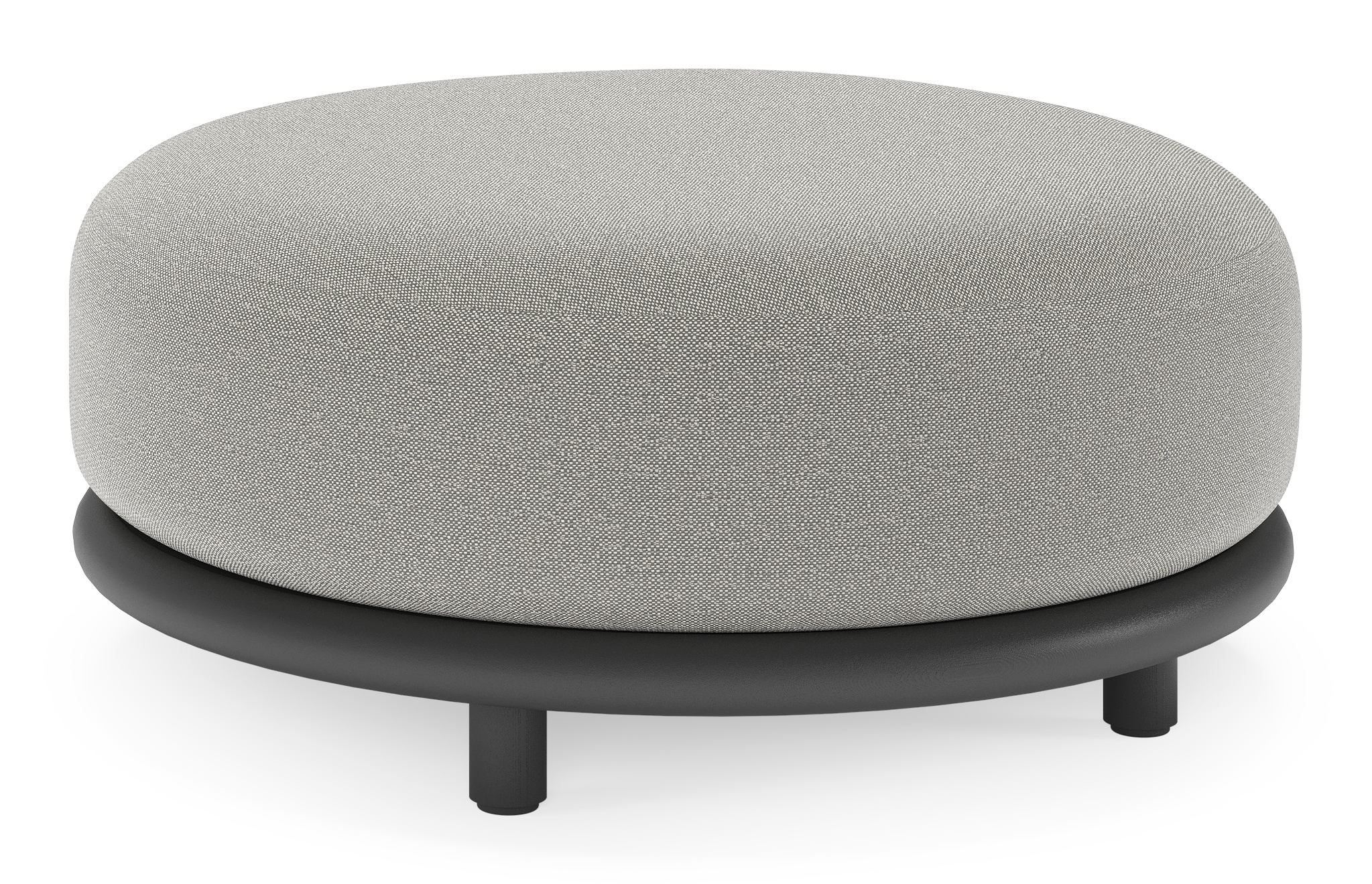 Lomano poef in zwart aluminium en beige verticaal geweven luxe vlakke rope met Savane Zinc all weather sunbrella® luxe | Exterioo tuinmeubelen