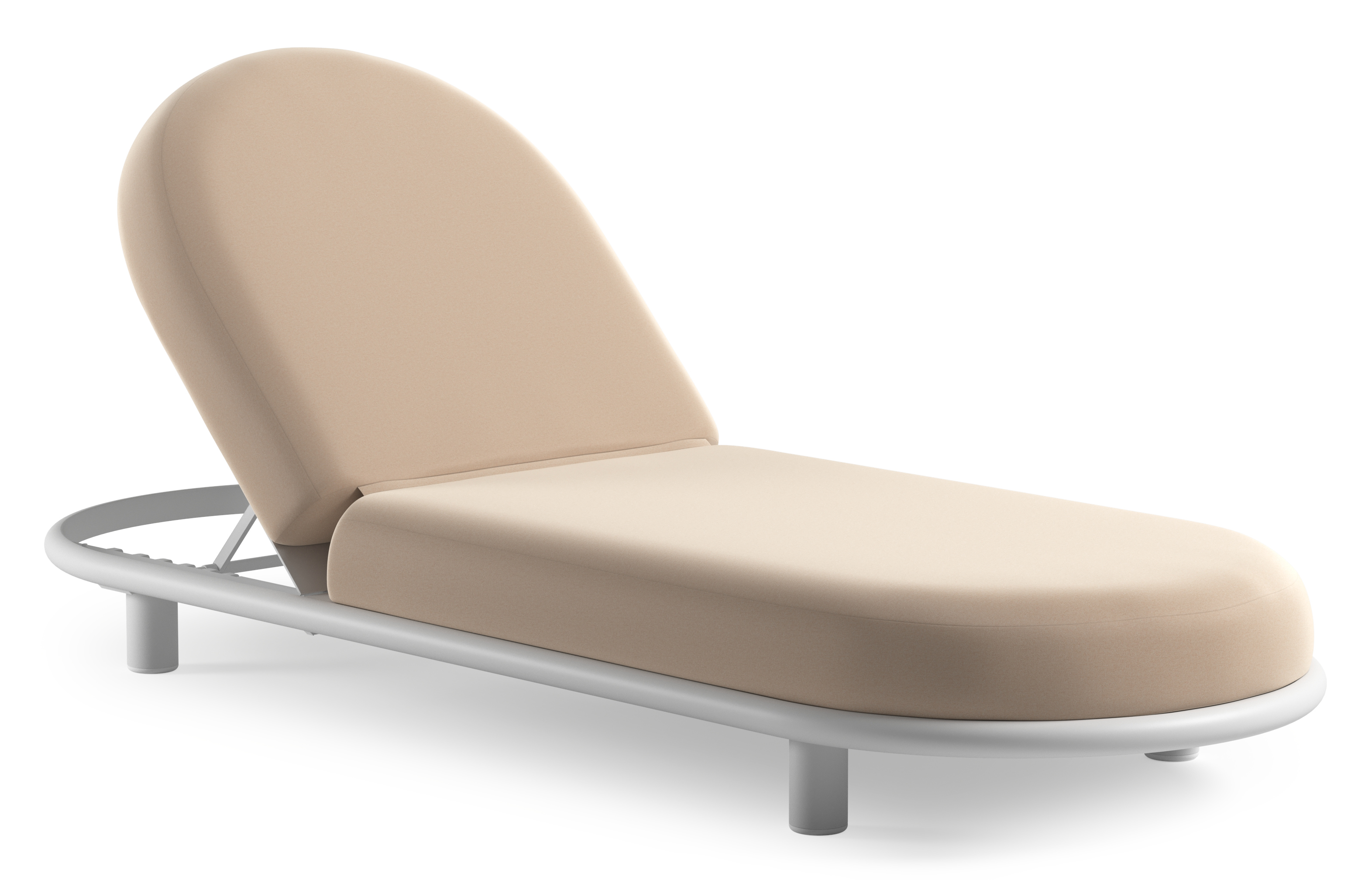 Lomano verstelbaar ligbed in wit aluminium met natte linen chalk all weather sunbrella® luxe | Exterioo tuinmeubelen
