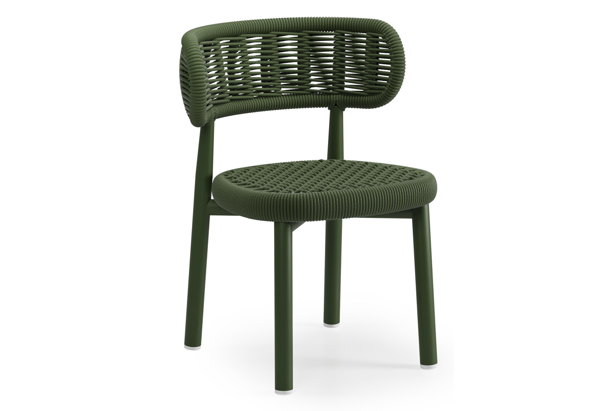 Lomo tuinstoel in groen aluminium en groen vierkant geweven ronde rope | Exterioo