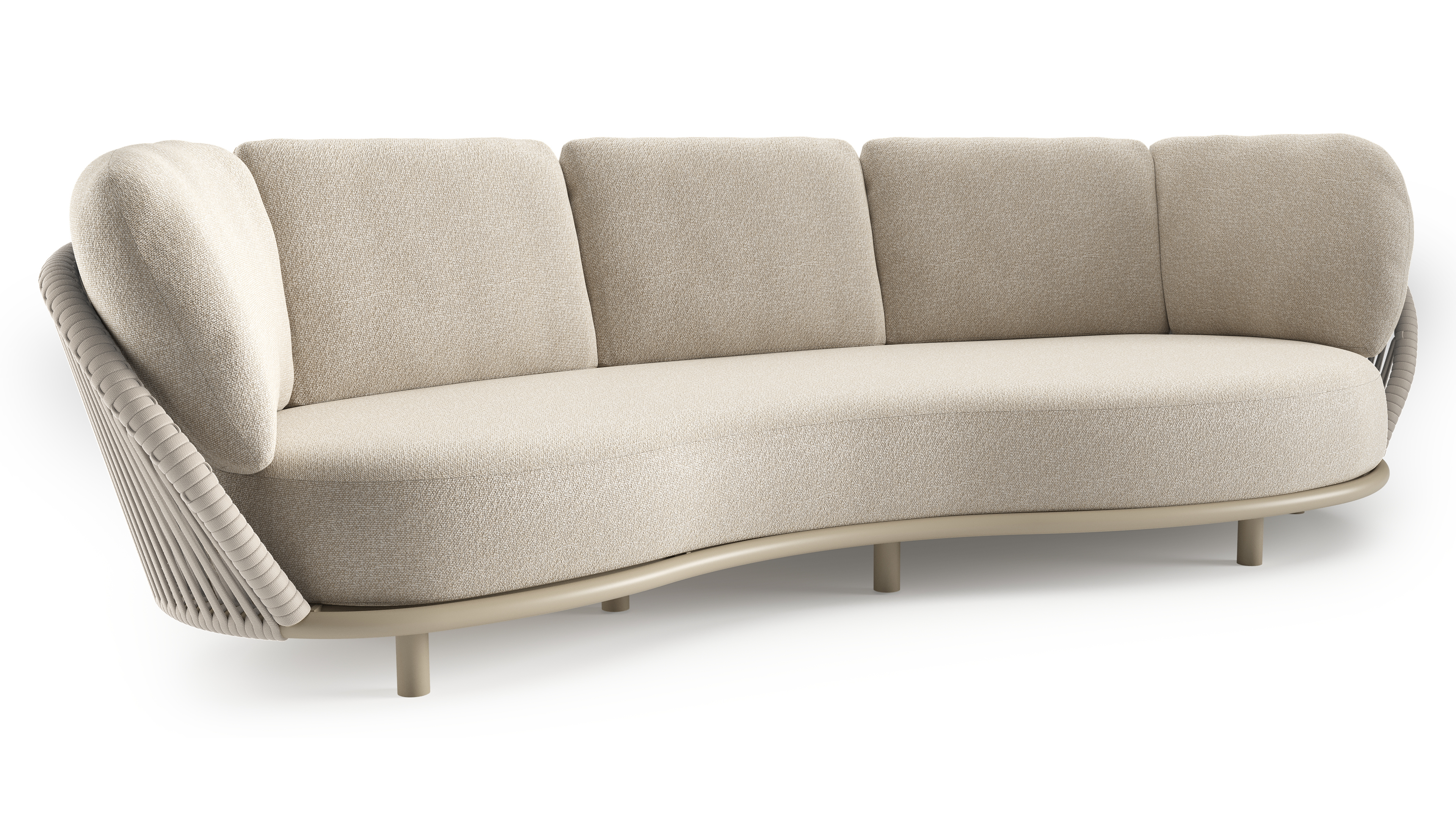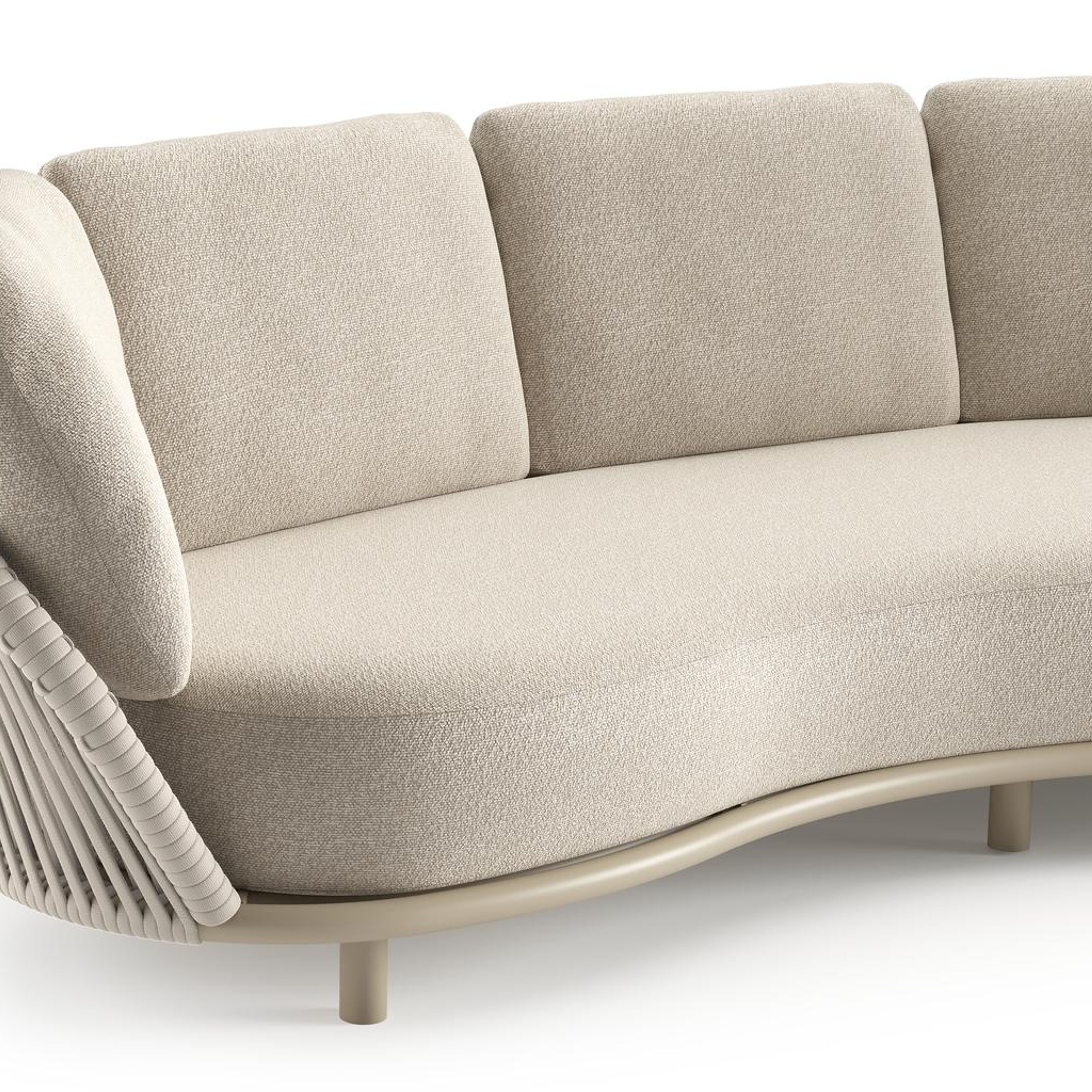 Lupino loungebank in beige aluminium en beige verticaal geweven luxe vlakke brede rope met marbella ecru all weather cosytica kussen | Exterioo tuinmeubelen