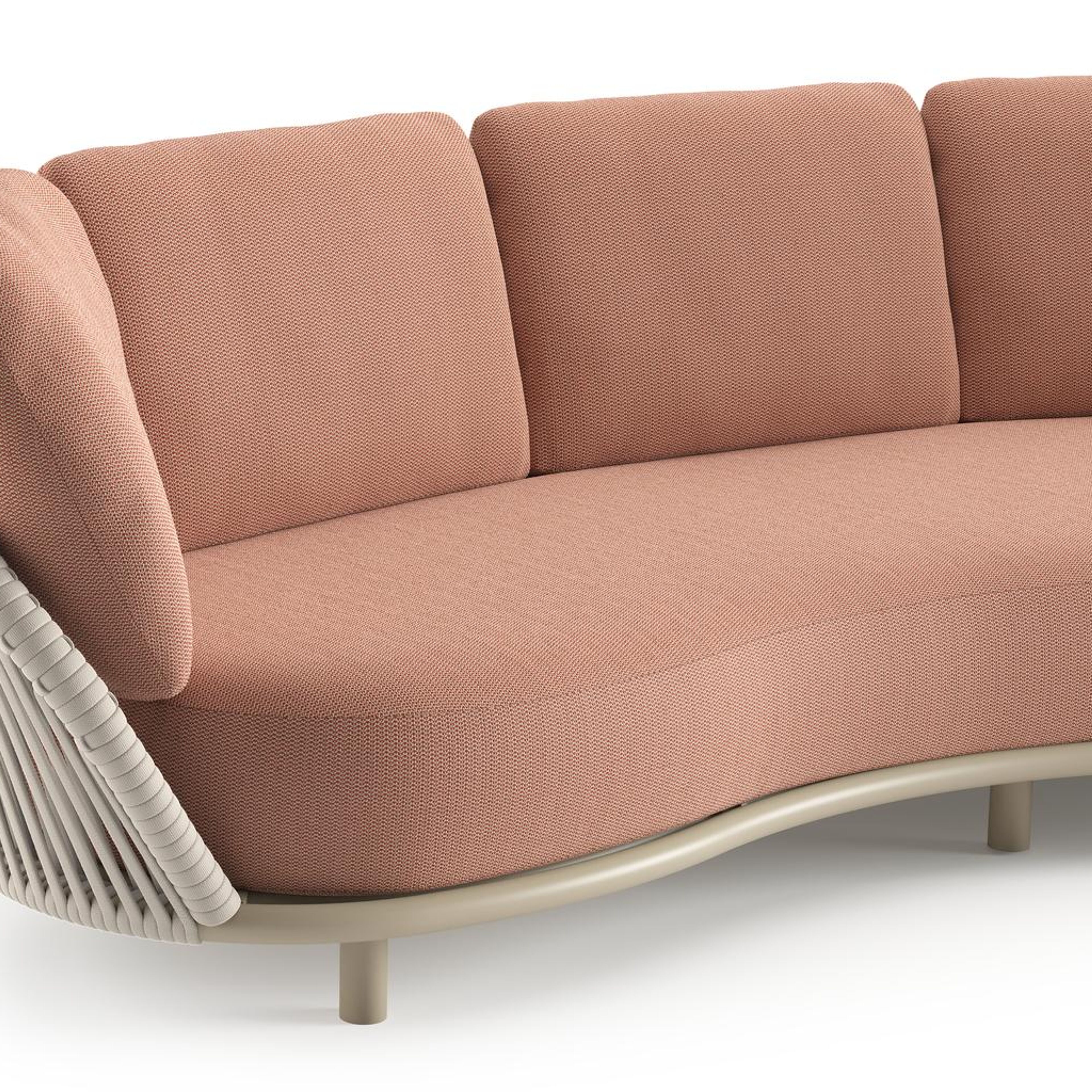 Lupino loungebank in beige aluminium en beige verticaal geweven luxe vlakke brede rope met lopi fawn all weather sunbrella® luxe kussen | Exterioo tuinmeubelen