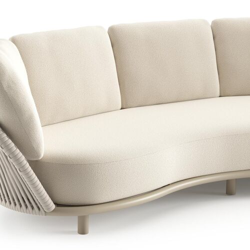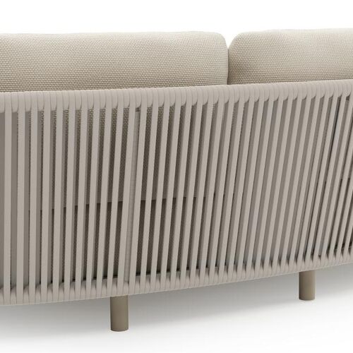 Lupino loungebank in beige aluminium en beige verticaal geweven luxe vlakke brede rope met althea off white all weather cosytica kussen | Exterioo