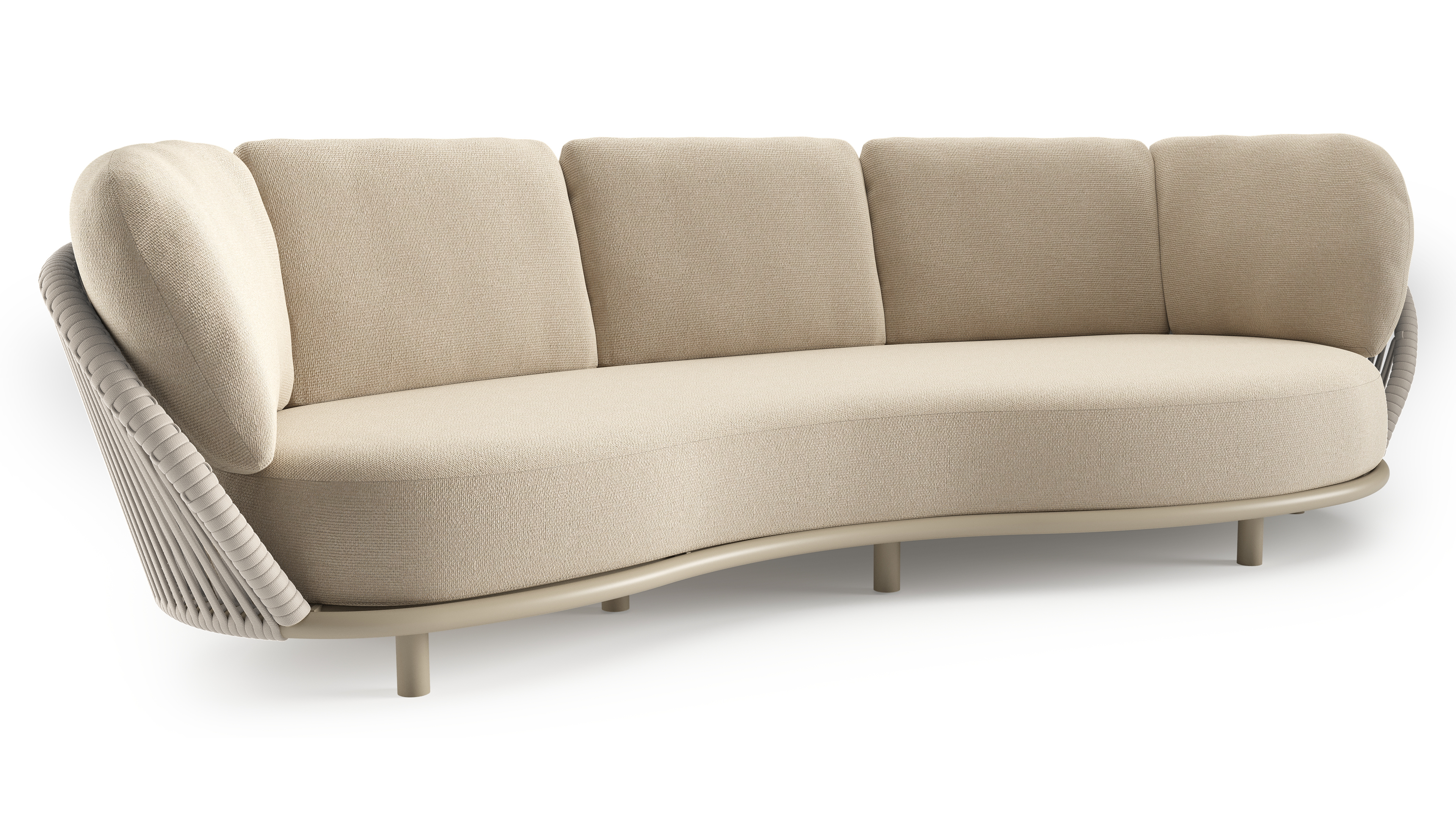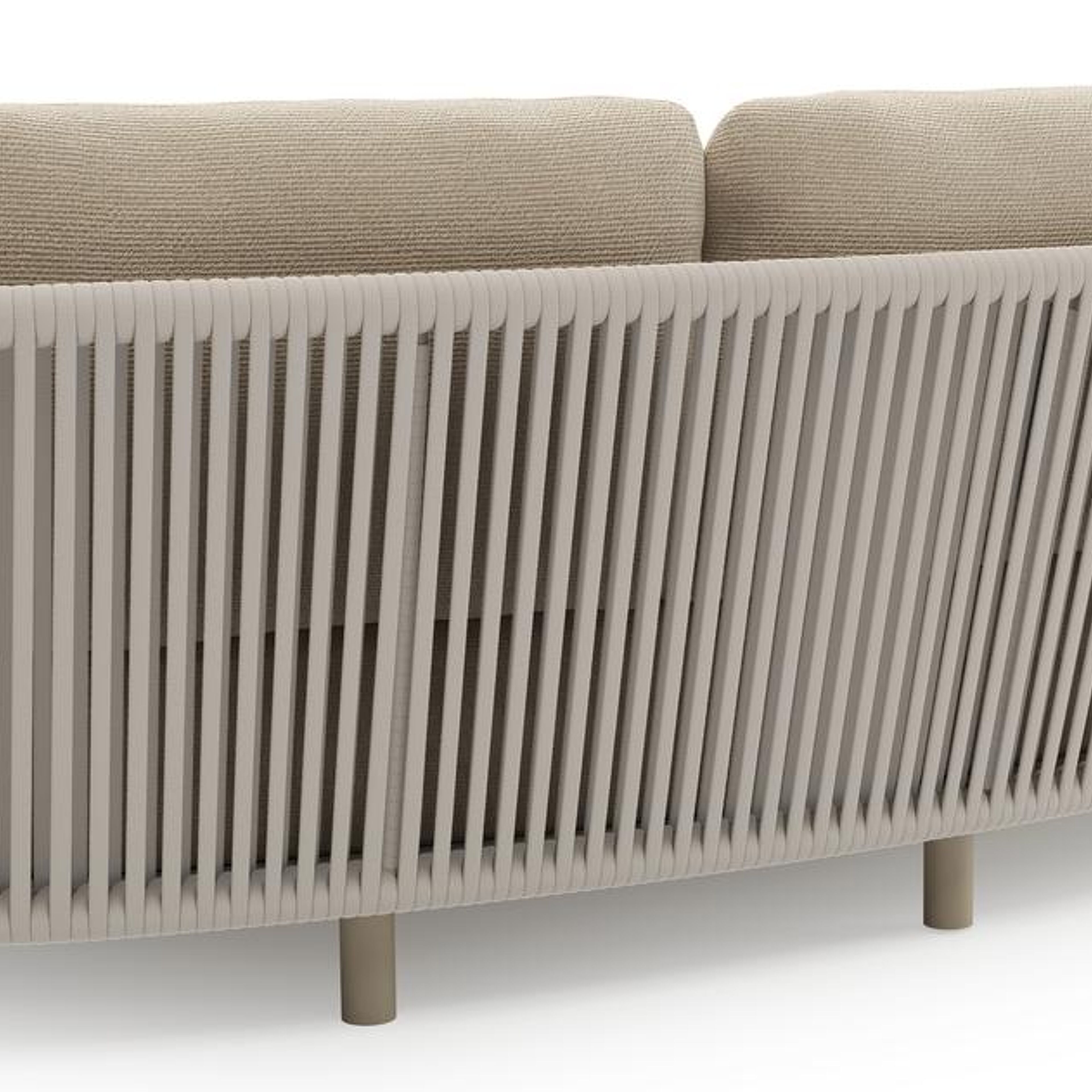 Lupino loungebank in beige aluminium en beige verticaal geweven luxe vlakke brede rope met althea chalk all weather cosytica kussen | Exterioo tuinmeubelen