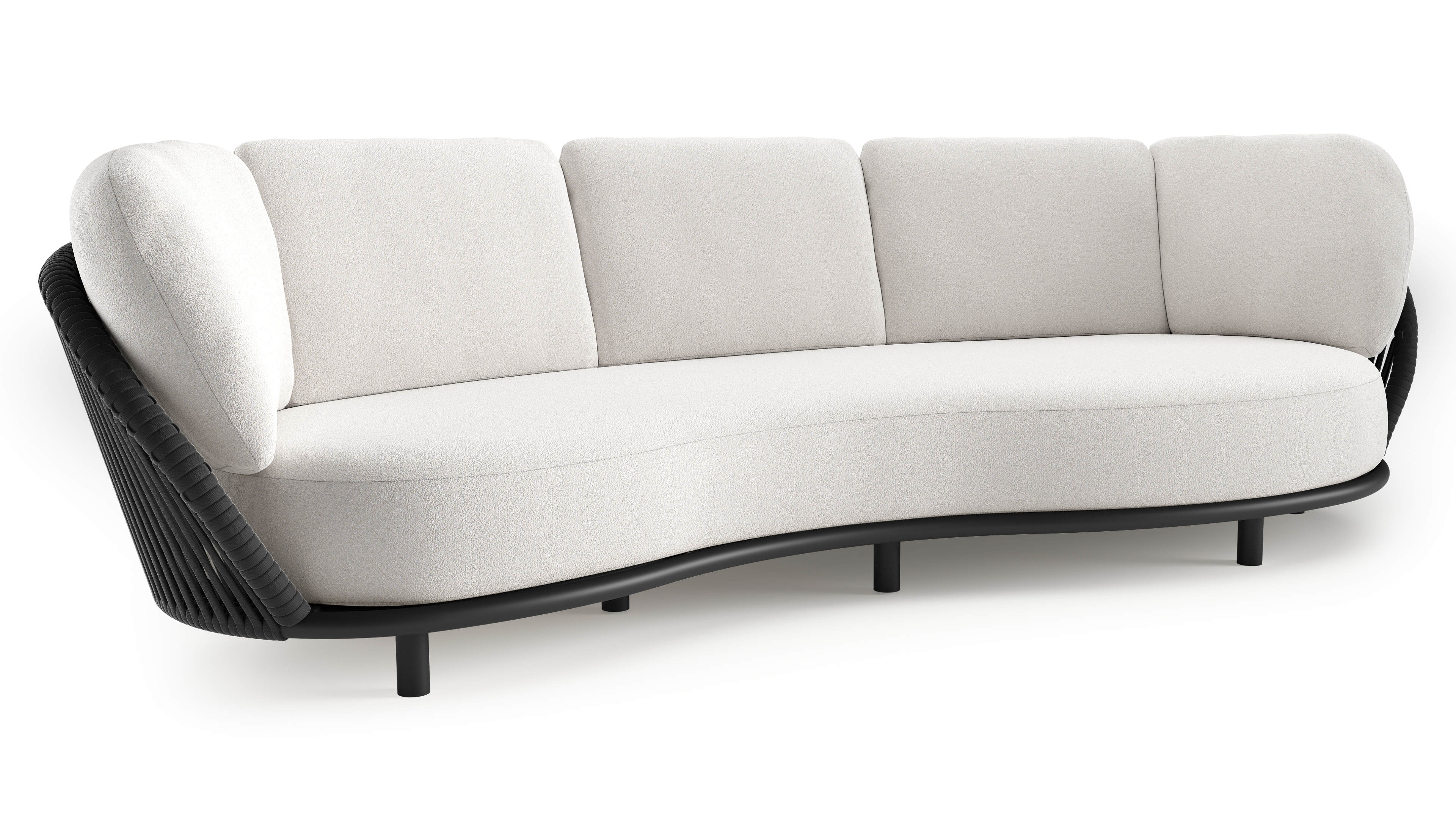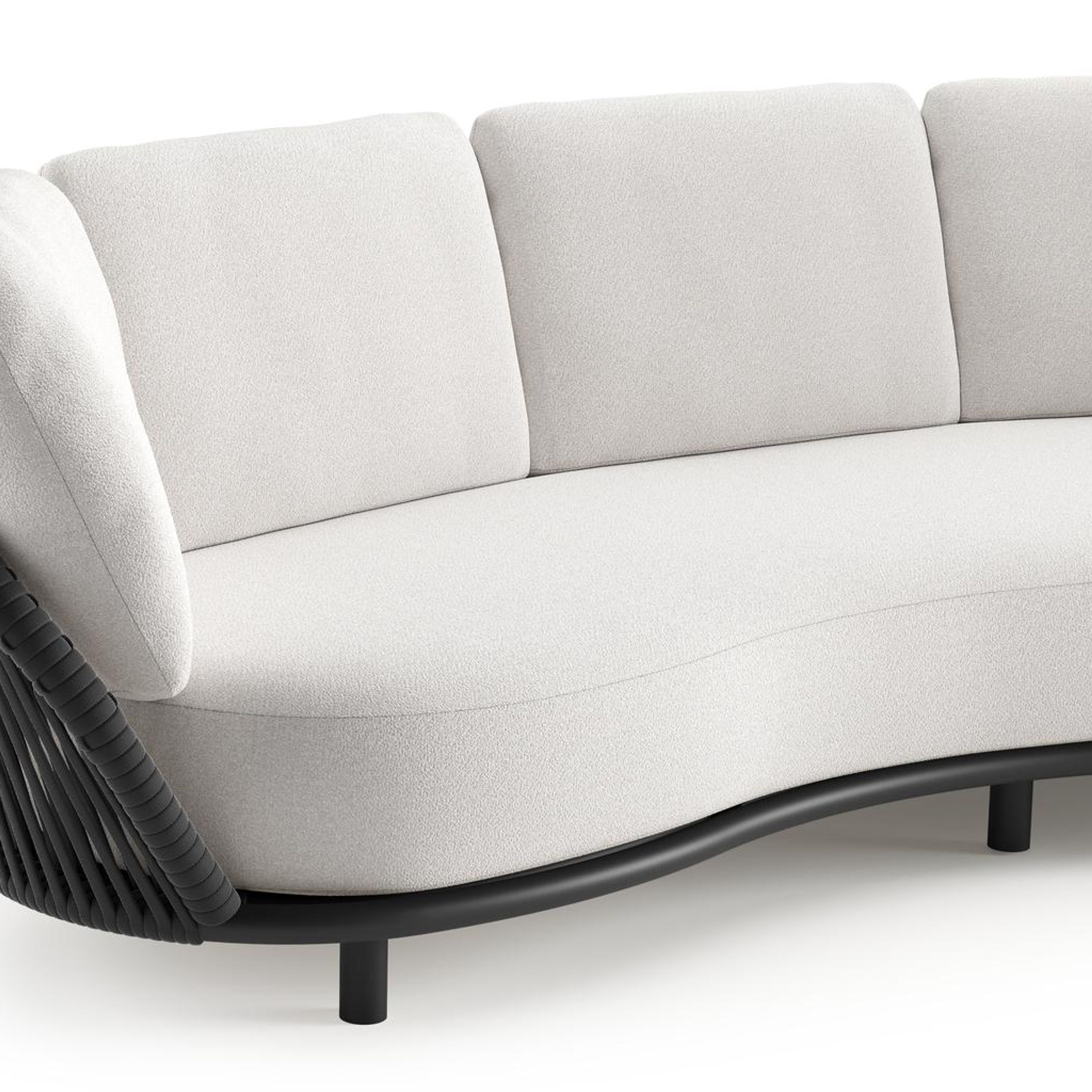 Lupino loungebank in zwart aluminium en zwart verticaal geweven luxe vlakke brede rope met soul optik all weather solica kussen | Exterioo tuinmeubelen