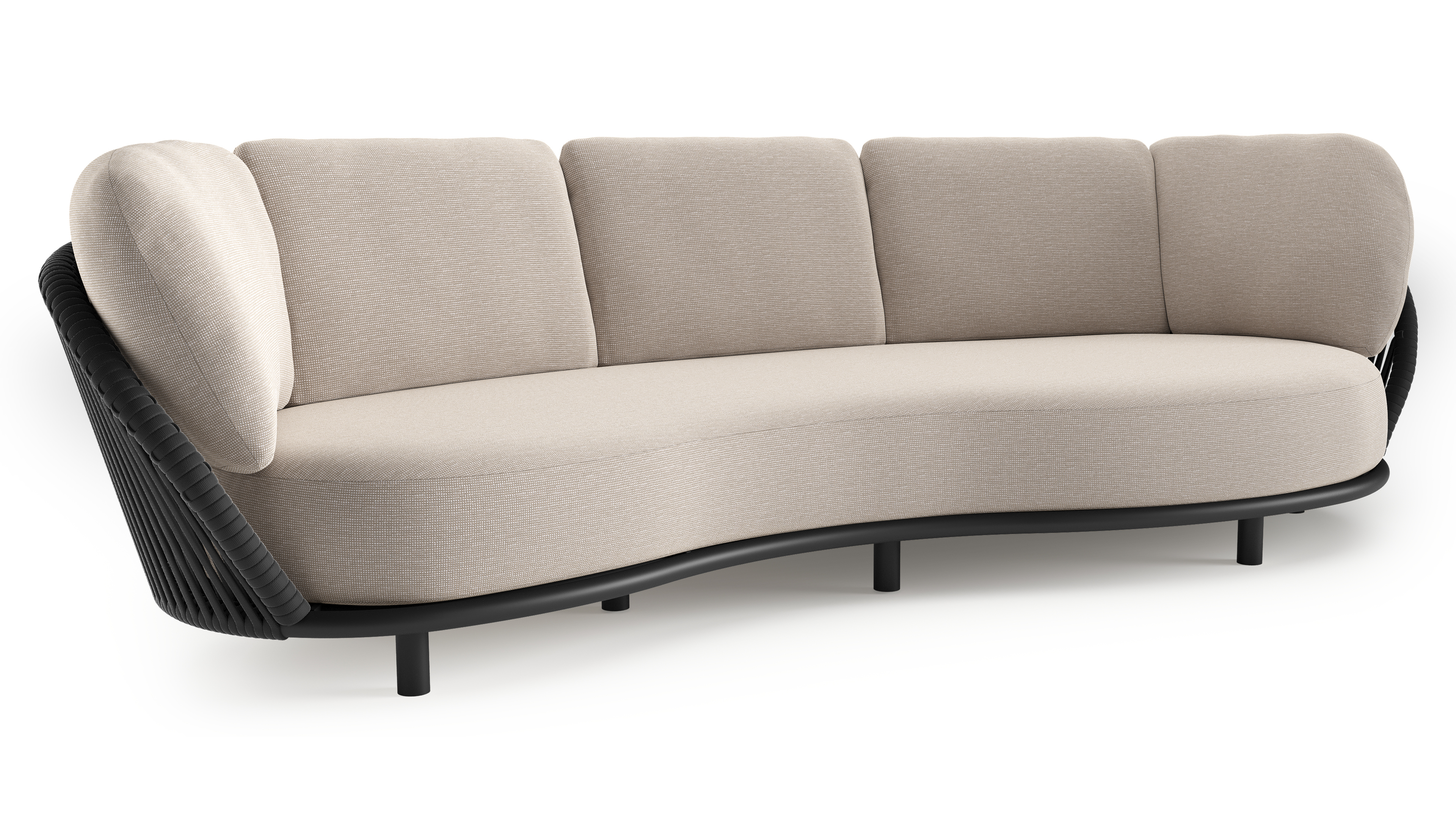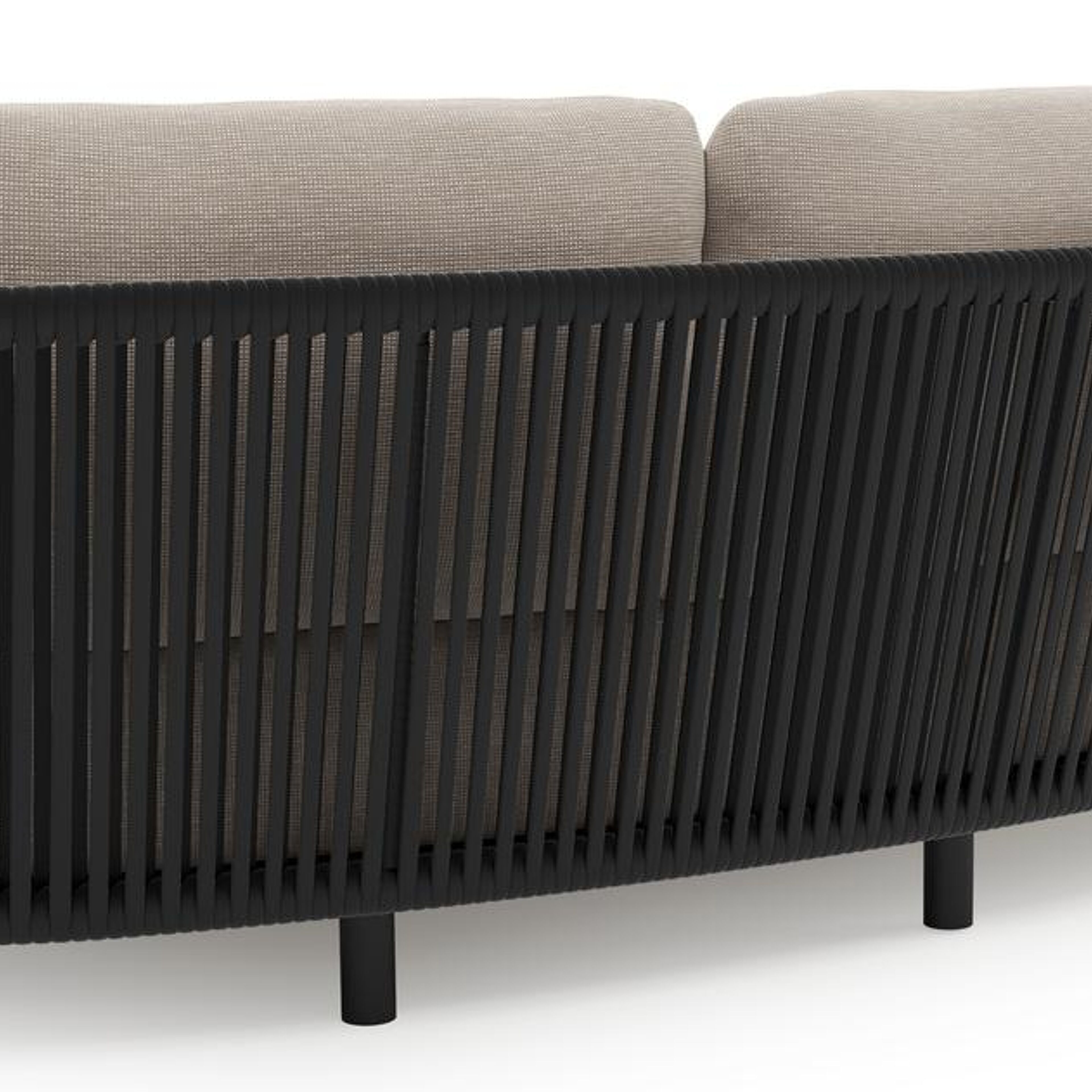 Lupino loungebank in zwart aluminium en zwart verticaal geweven luxe vlakke brede rope met slow farafra all weather sunbrella® luxe kussen | Exterioo tuinmeubelen
