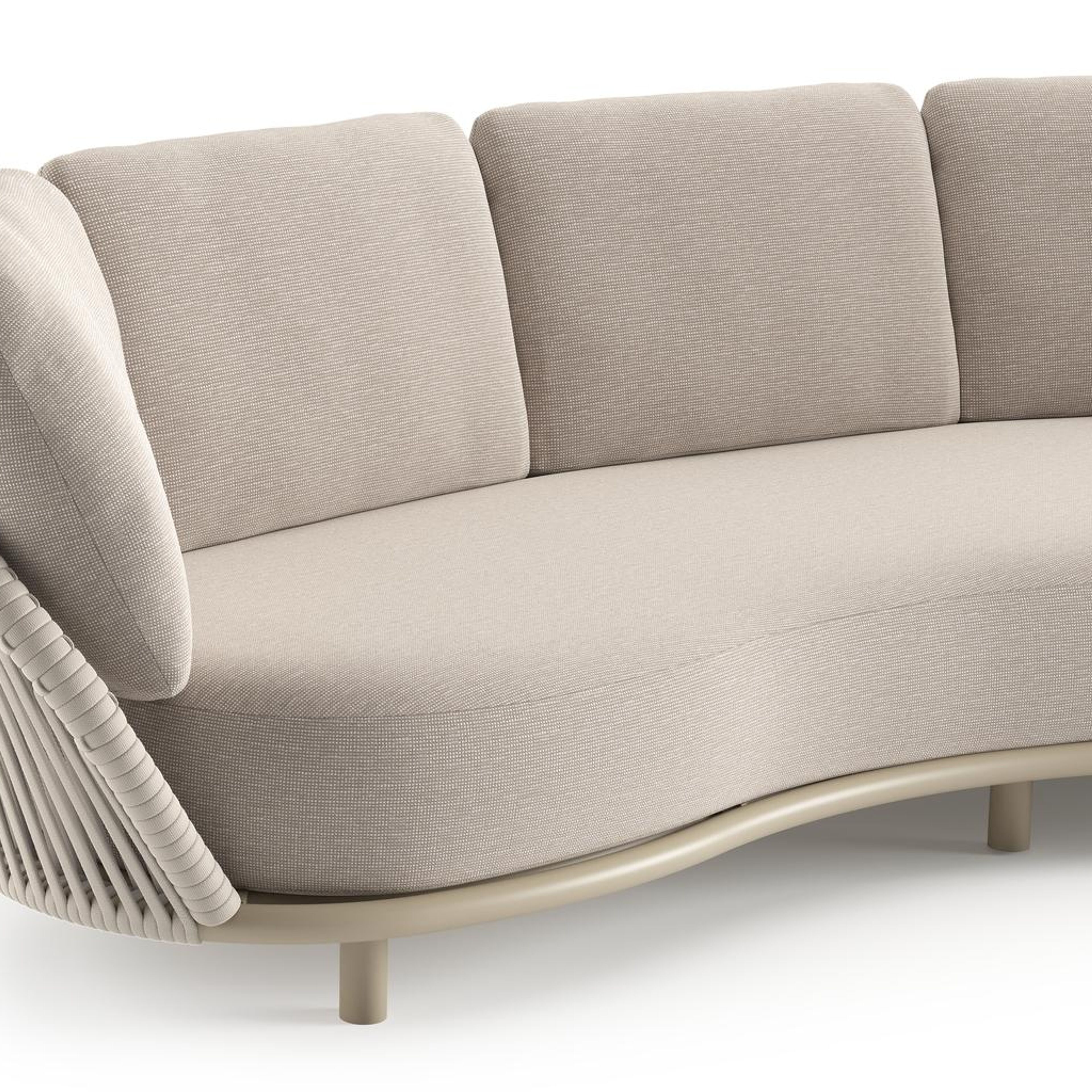 Lupino loungeset in beige aluminium en beige verticaal geweven luxe vlakke brede rope met slow farafra all weather sunbrella® luxe kussen | Exterioo tuinmeubelen