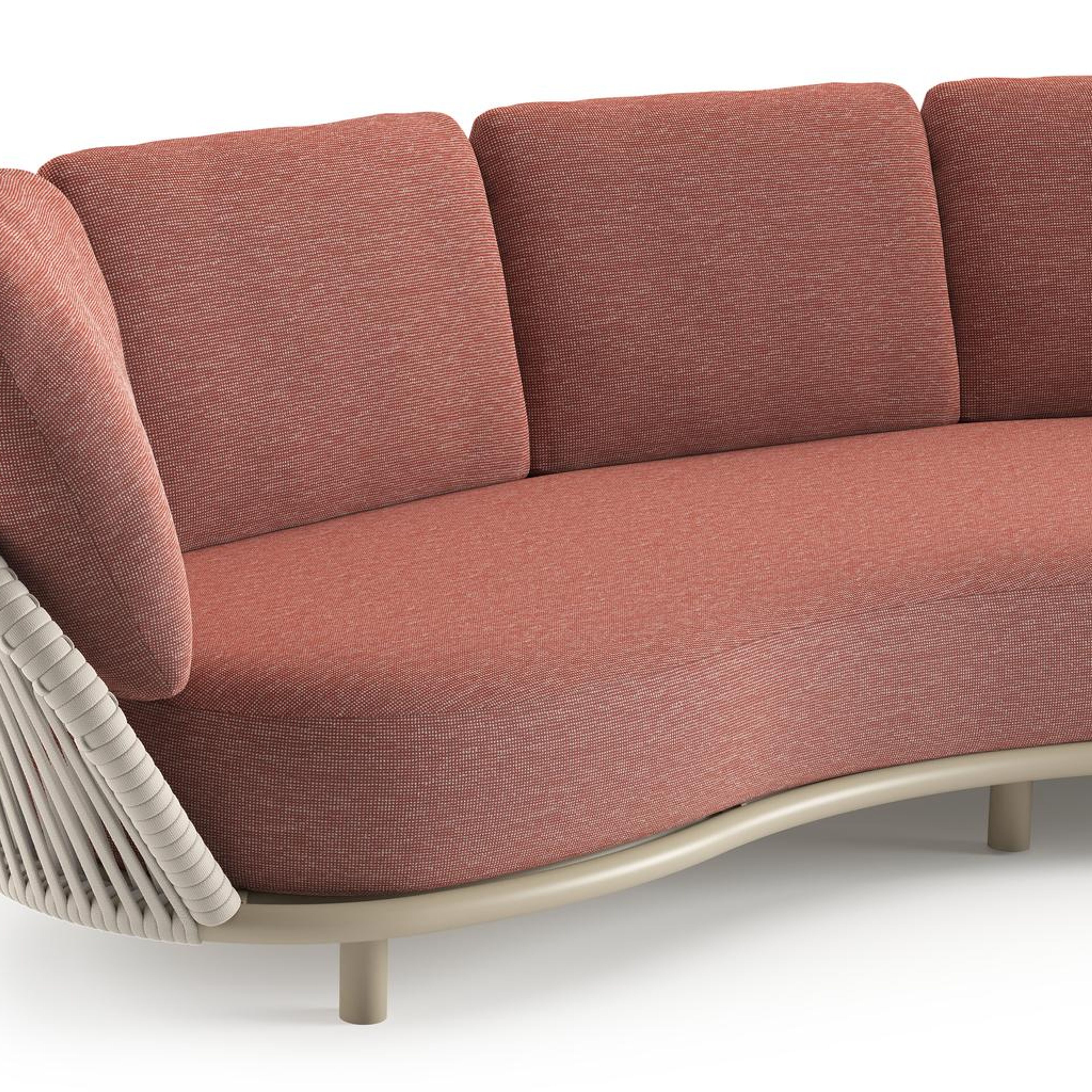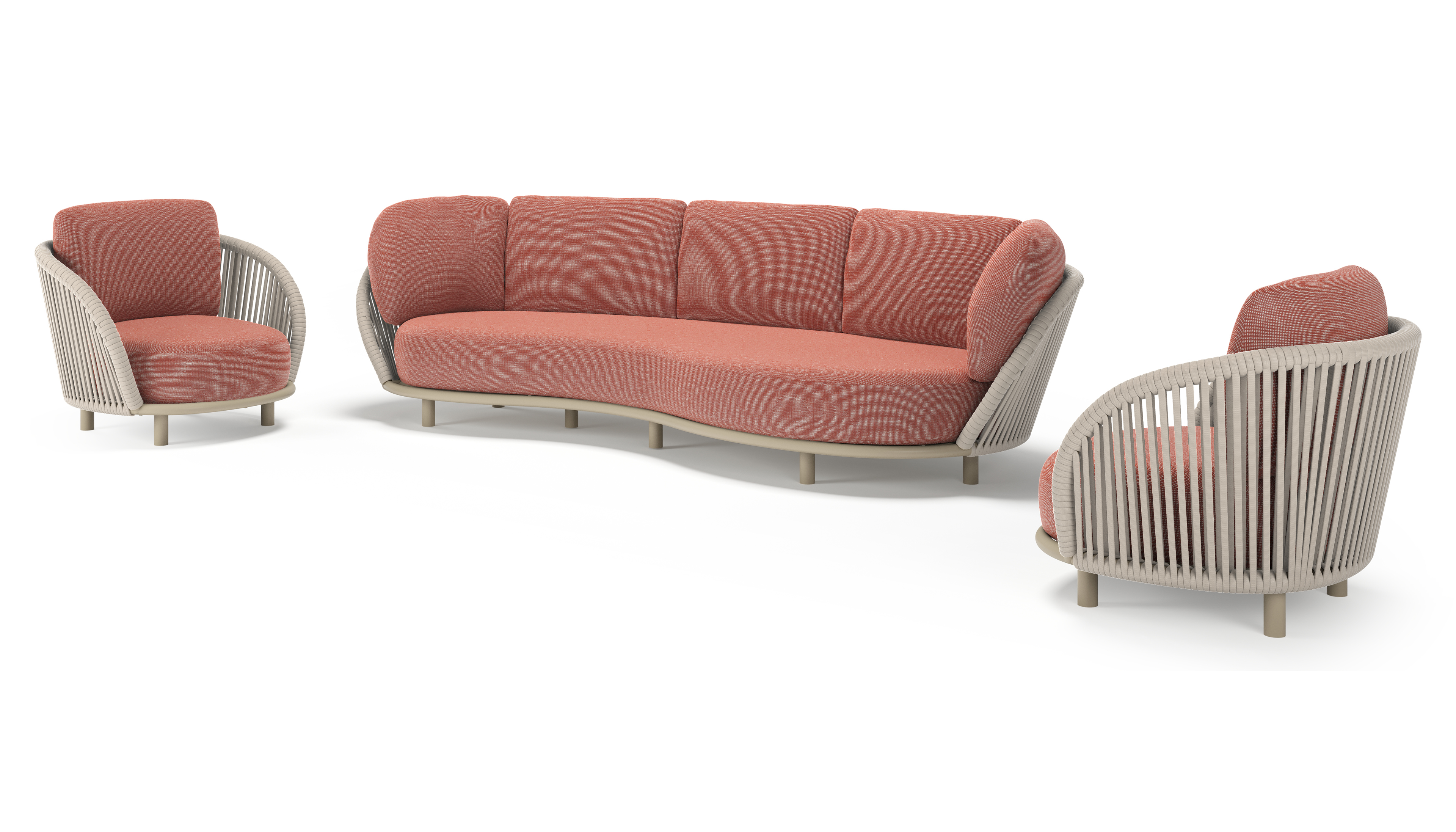 Lupino loungeset in beige aluminium en beige verticaal geweven luxe vlakke brede rope met slow alezan all weather sunbrella® luxe kussen | Exterioo tuinmeubelen
