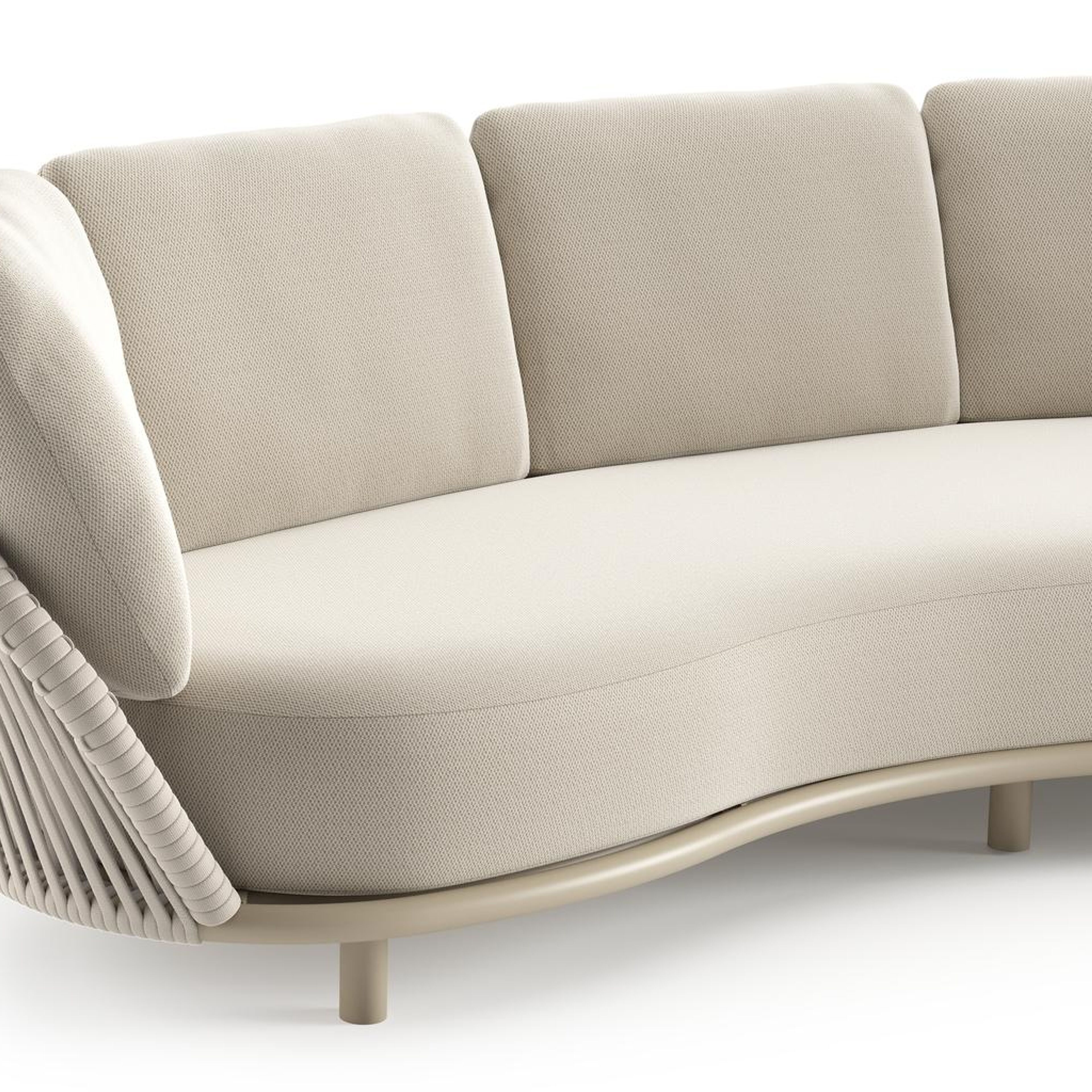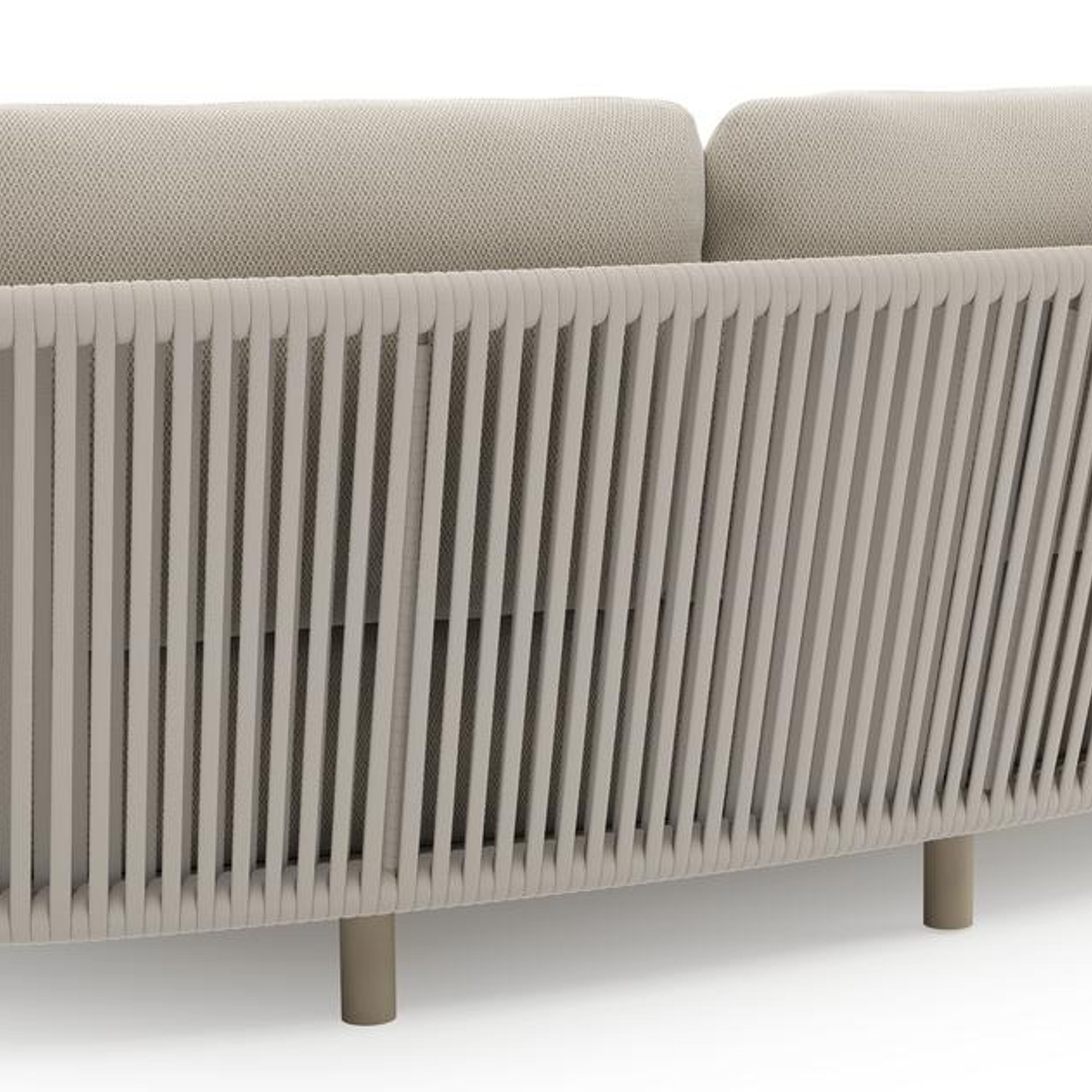 Lupino loungeset in beige aluminium en beige verticaal geweven luxe vlakke brede rope met lopi marble all weather sunbrella® luxe kussen | Exterioo tuinmeubelen