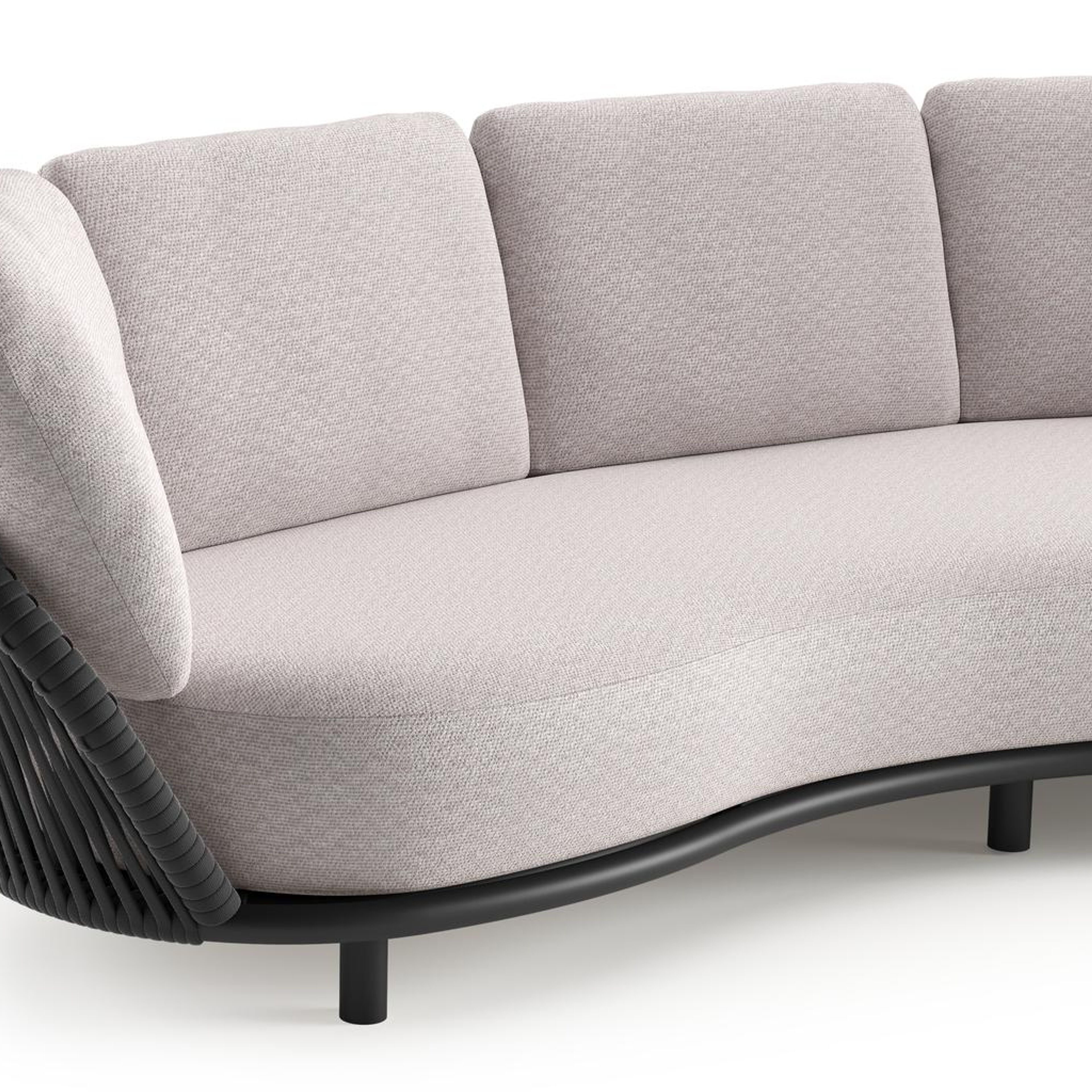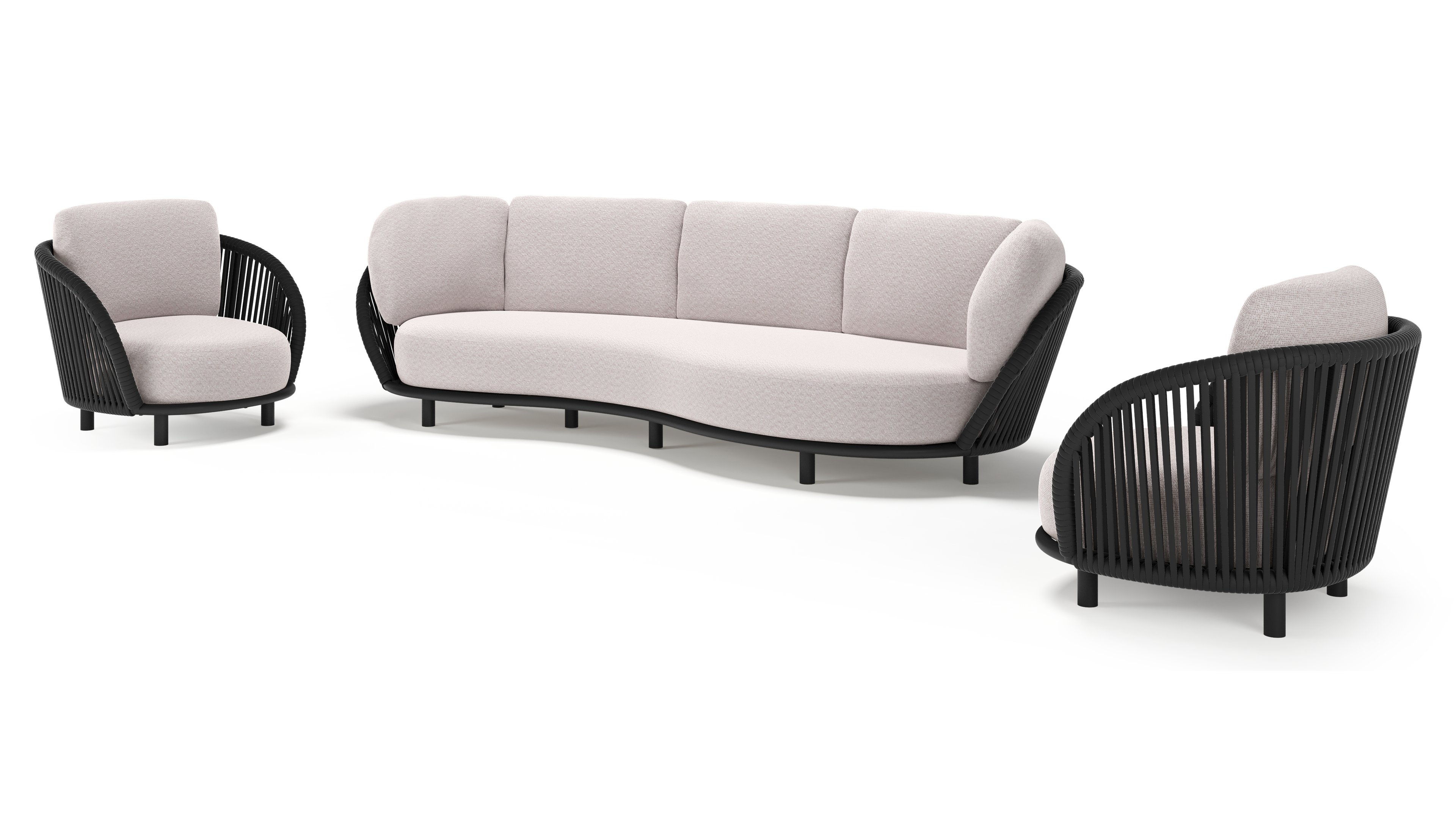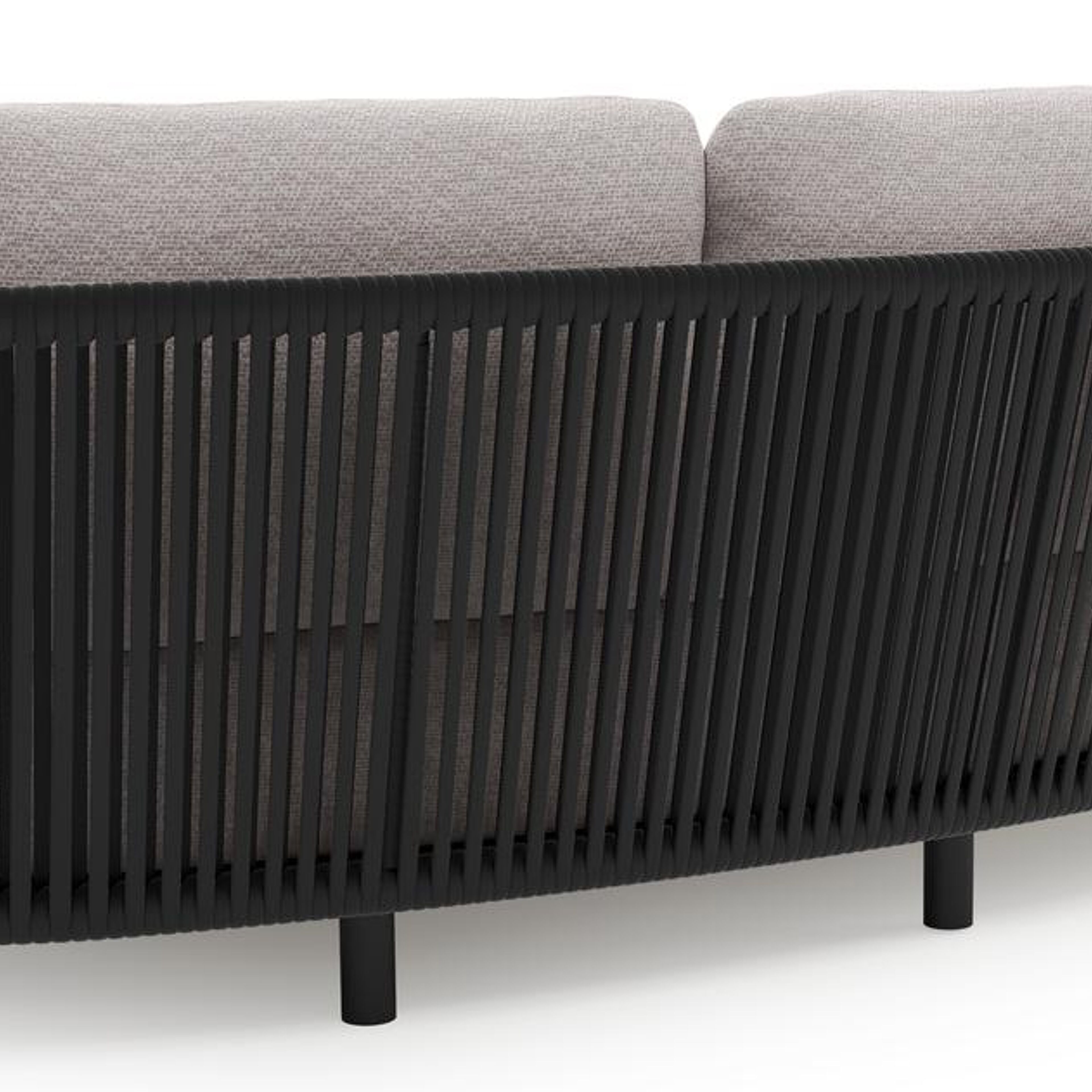 Lupino loungeset in zwart aluminium en zwart verticaal geweven luxe vlakke brede rope met wander gobi all weather sunbrella® luxe kussen | Exterioo tuinmeubelen