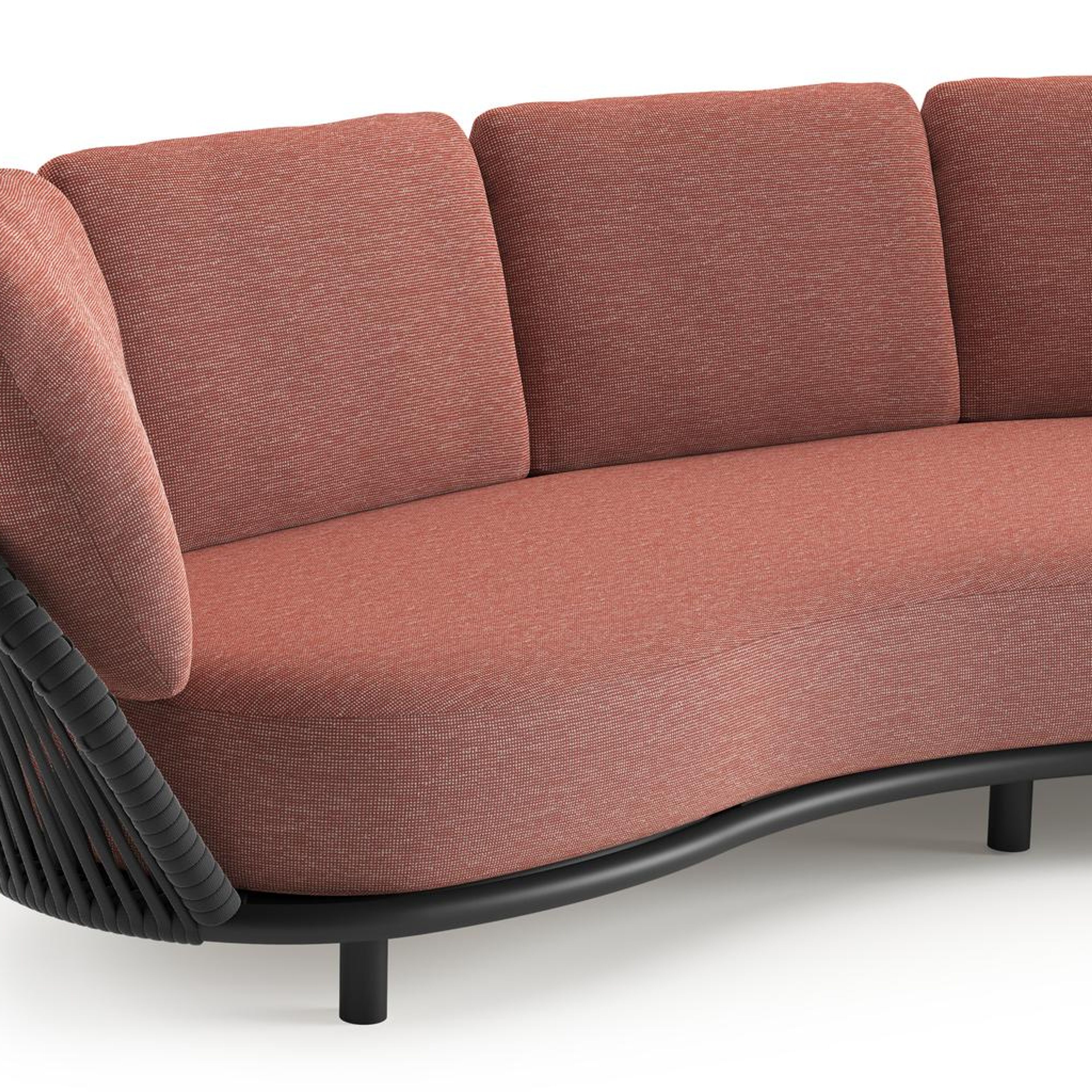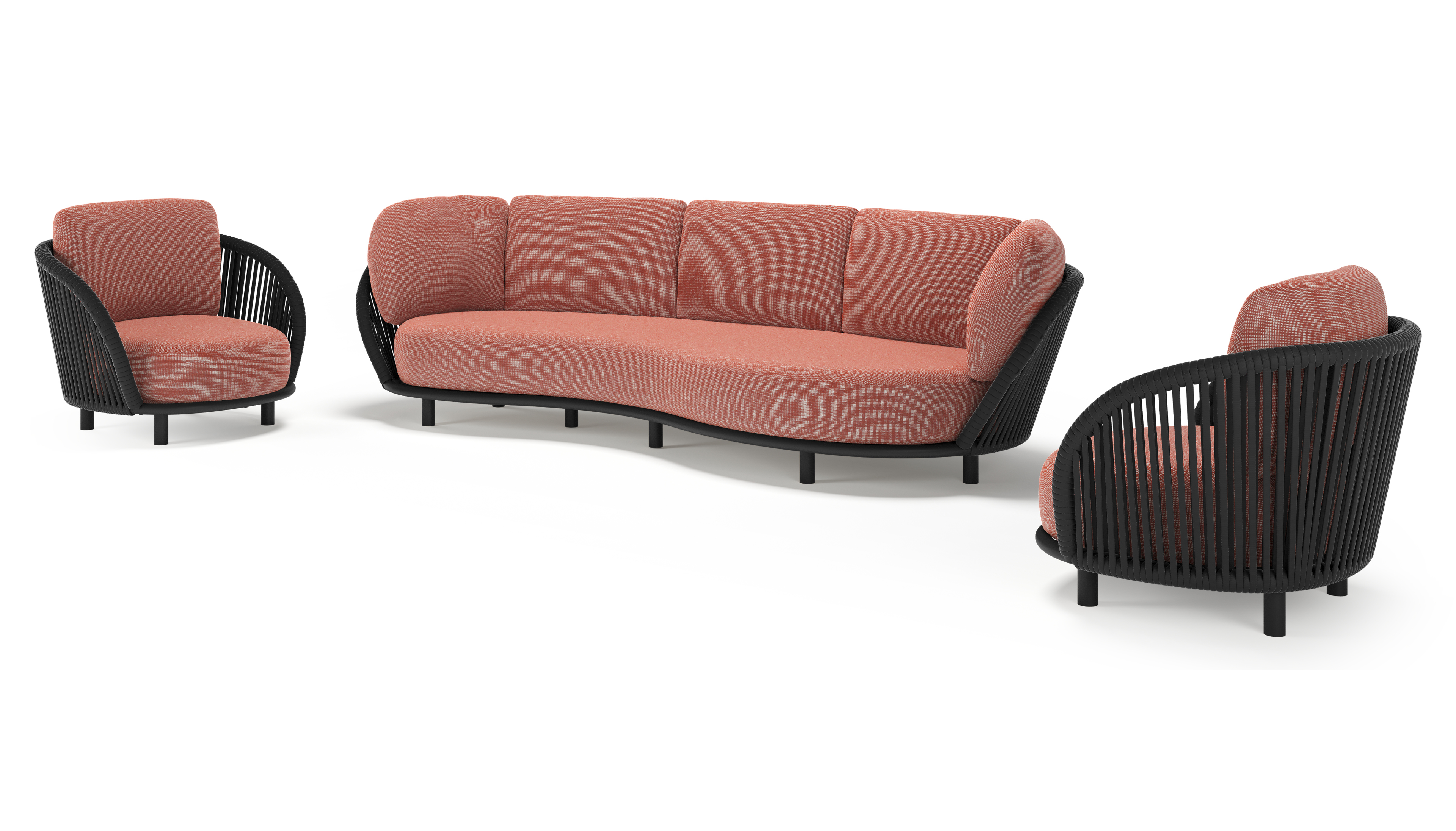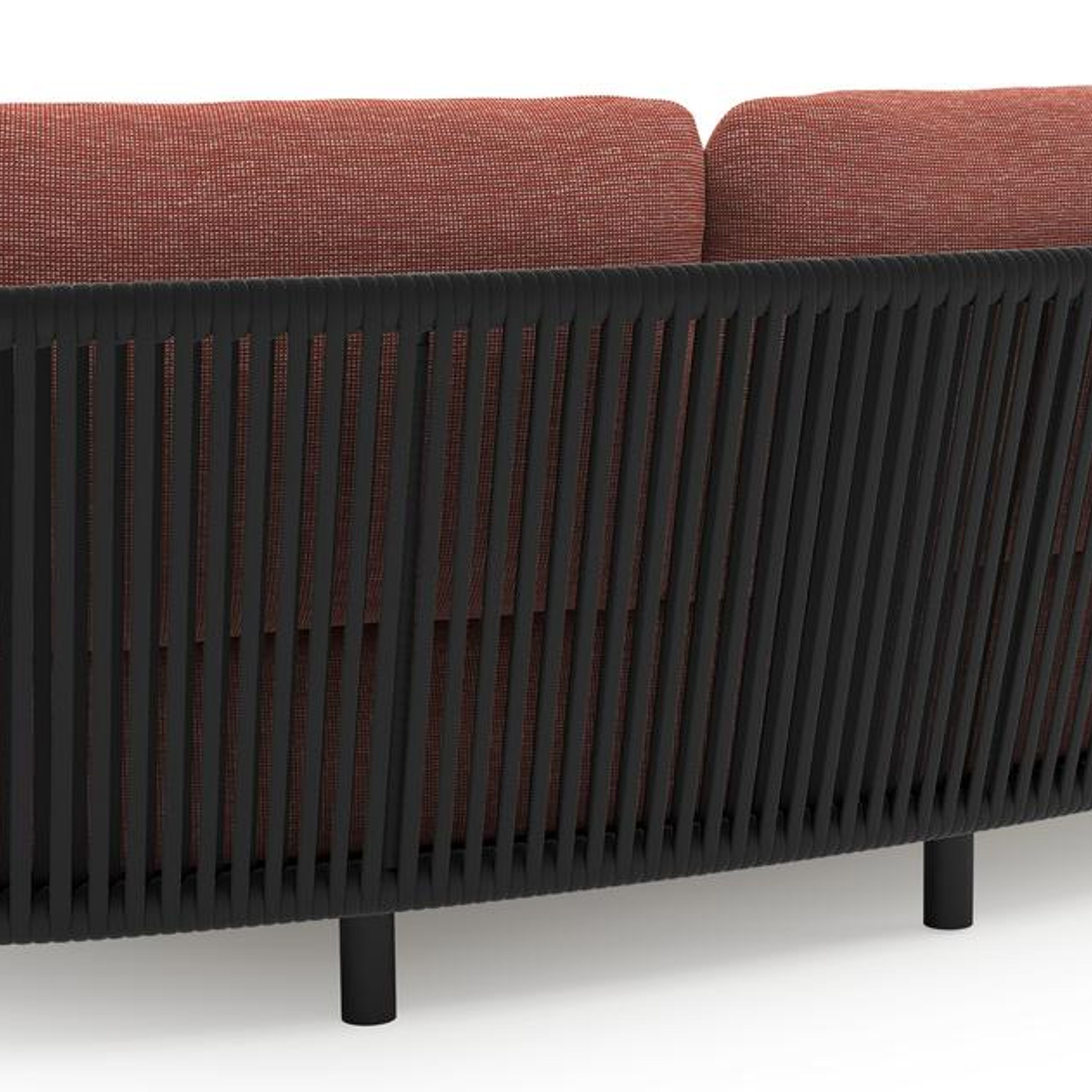 Lupino loungeset in zwart aluminium en zwart verticaal geweven luxe vlakke brede rope met slow alezan all weather sunbrella® luxe kussen | Exterioo tuinmeubelen