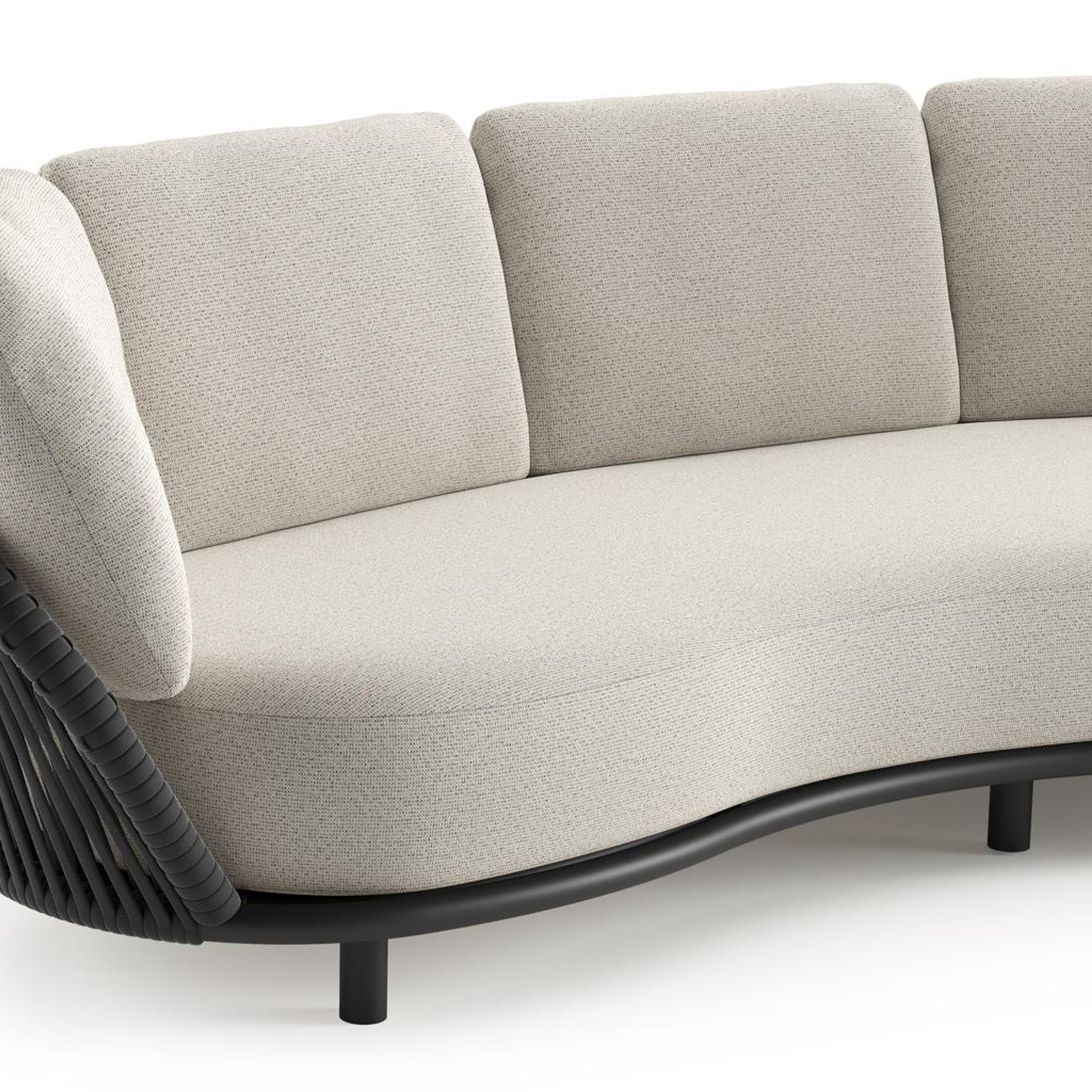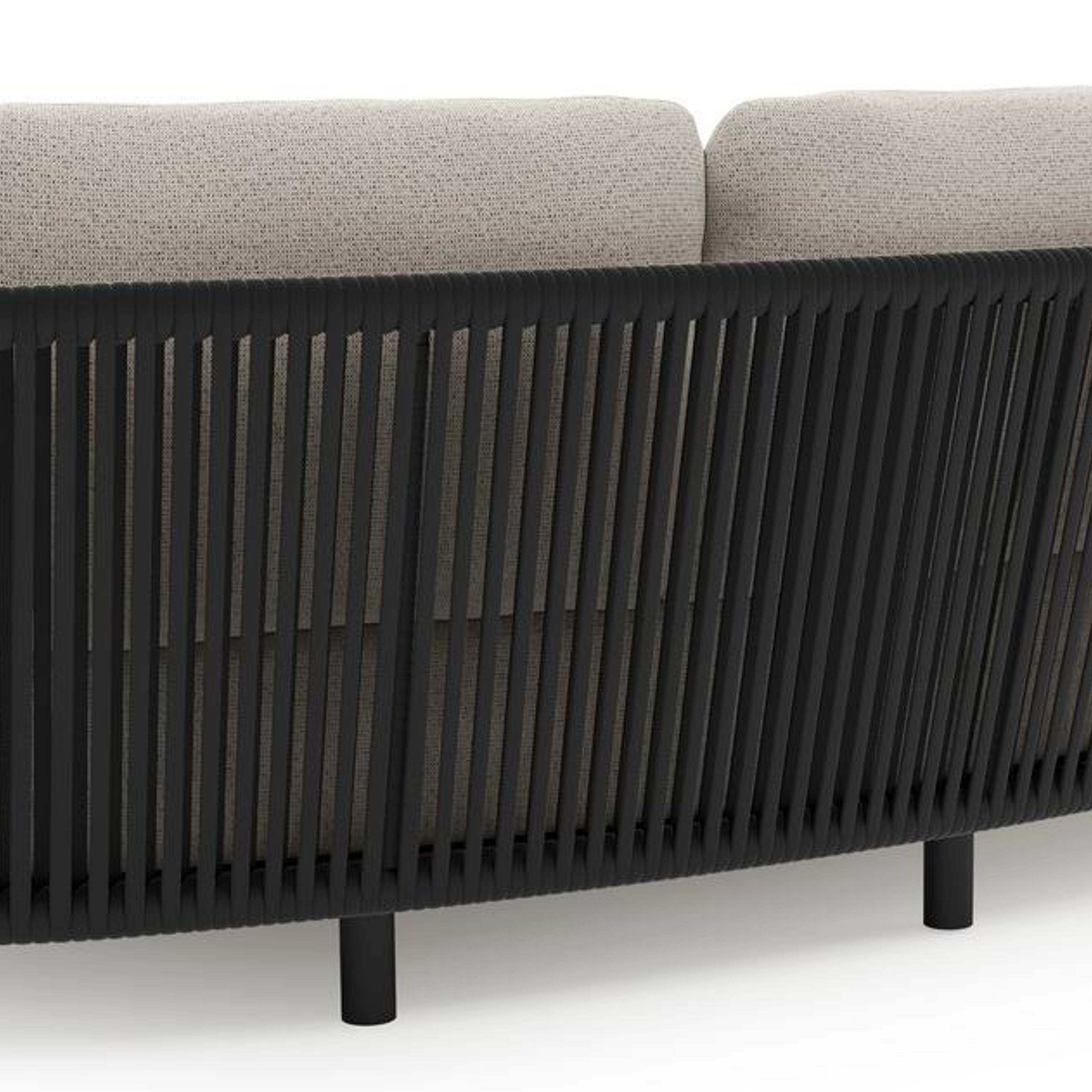 Lupino loungeset in zwart aluminium en zwart verticaal geweven luxe vlakke brede rope met firenze natural all weather solica kussen | Exterioo tuinmeubelen