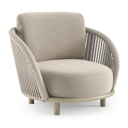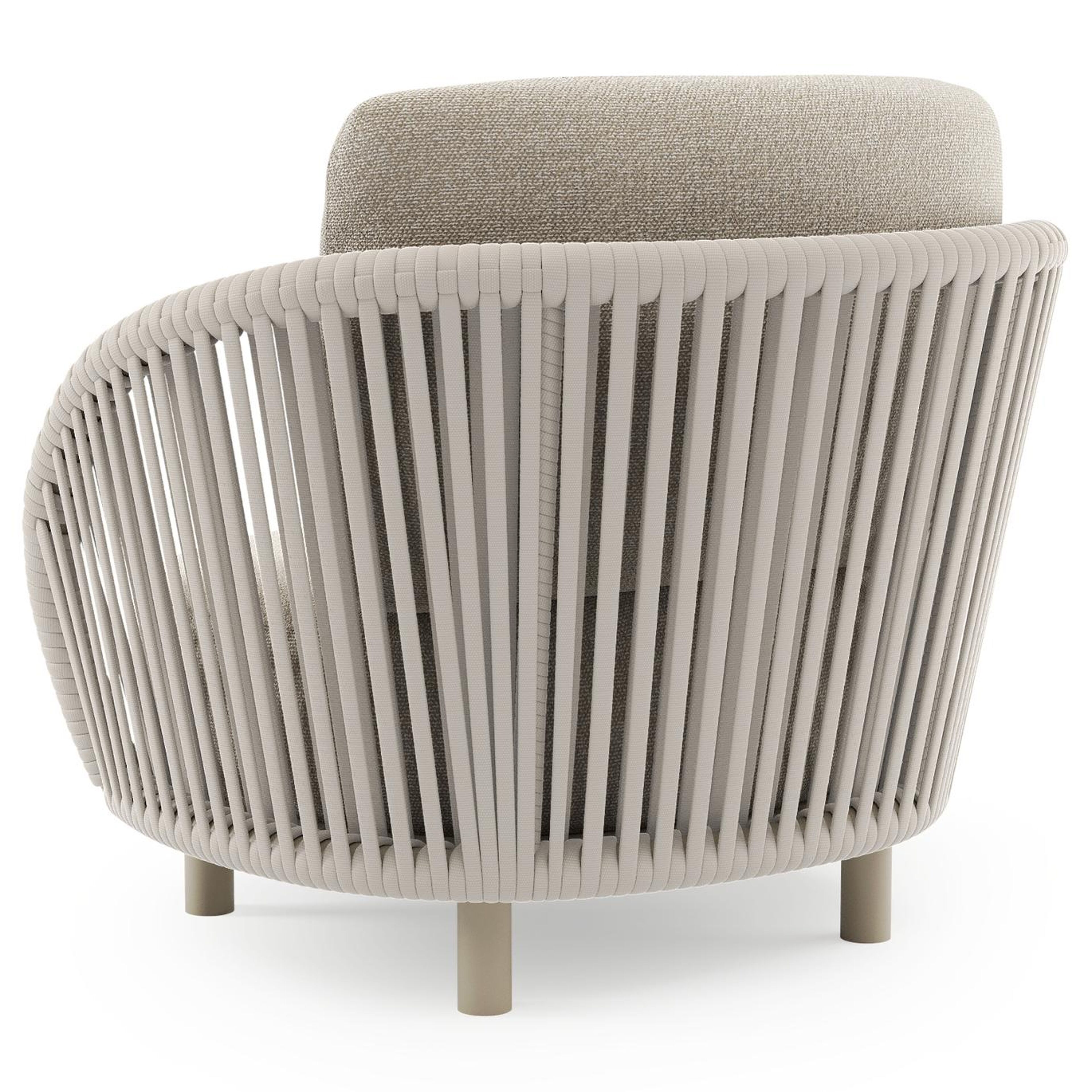 Lupino loungestoel in beige aluminium en beige verticaal geweven luxe vlakke brede rope met marbella ecru all weather cosytica kussen | Exterioo tuinmeubelen