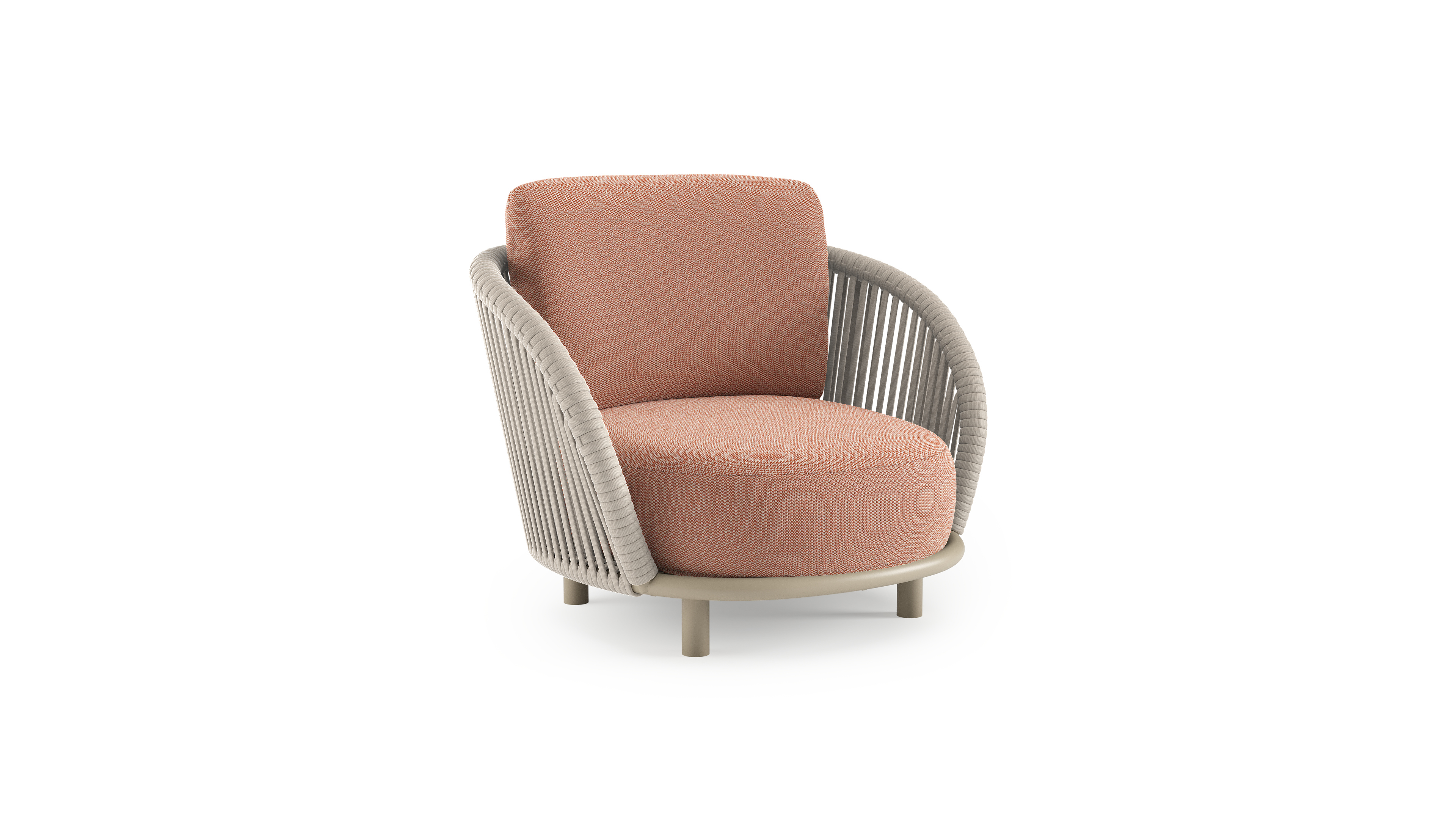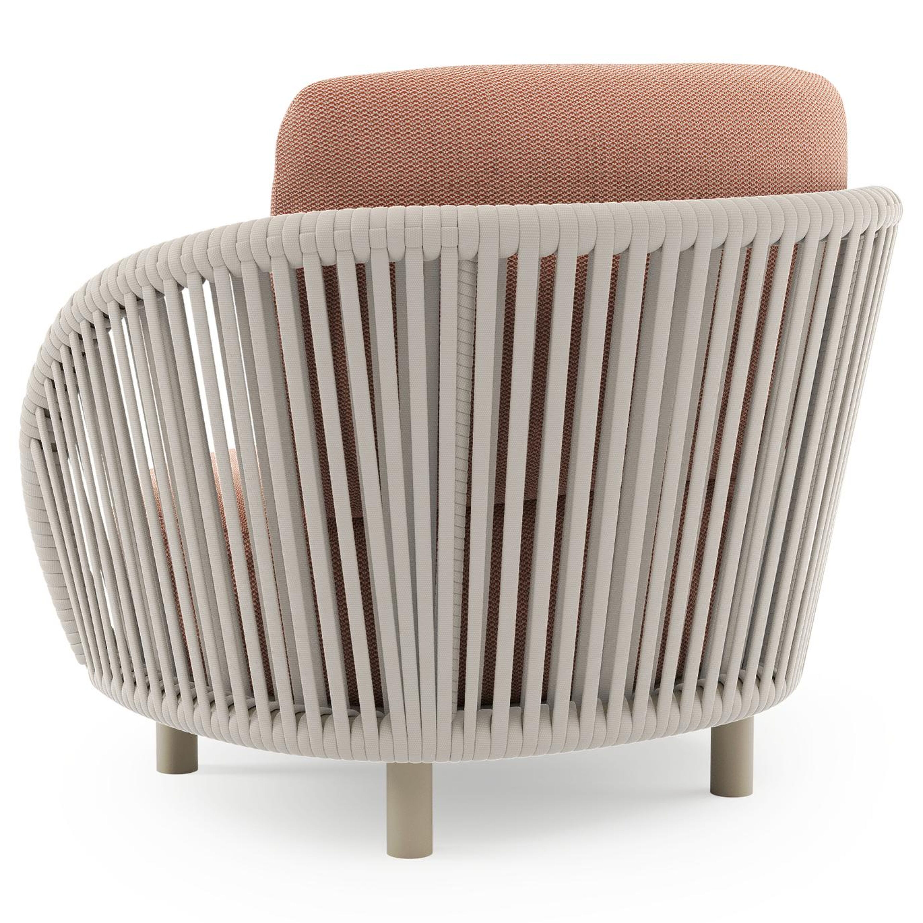 Lupino loungestoel in beige aluminium en beige verticaal geweven luxe vlakke brede rope met lopi fawn all weather sunbrella® luxe kussen | Exterioo tuinmeubelen