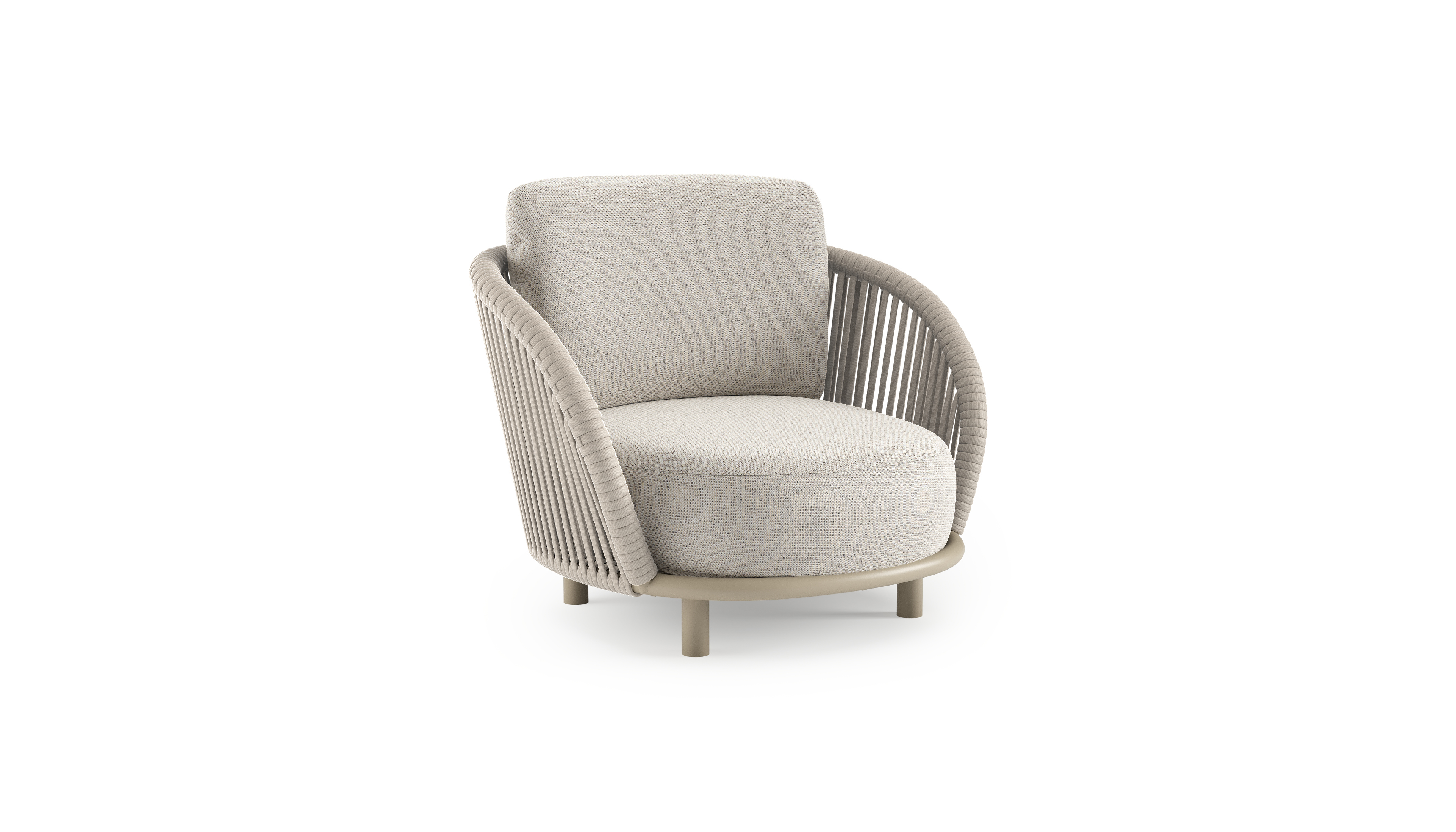 Lupino loungestoel in beige aluminium en beige verticaal geweven luxe vlakke brede rope met firenze natural all weather solica kussen | Exterioo tuinmeubelen