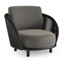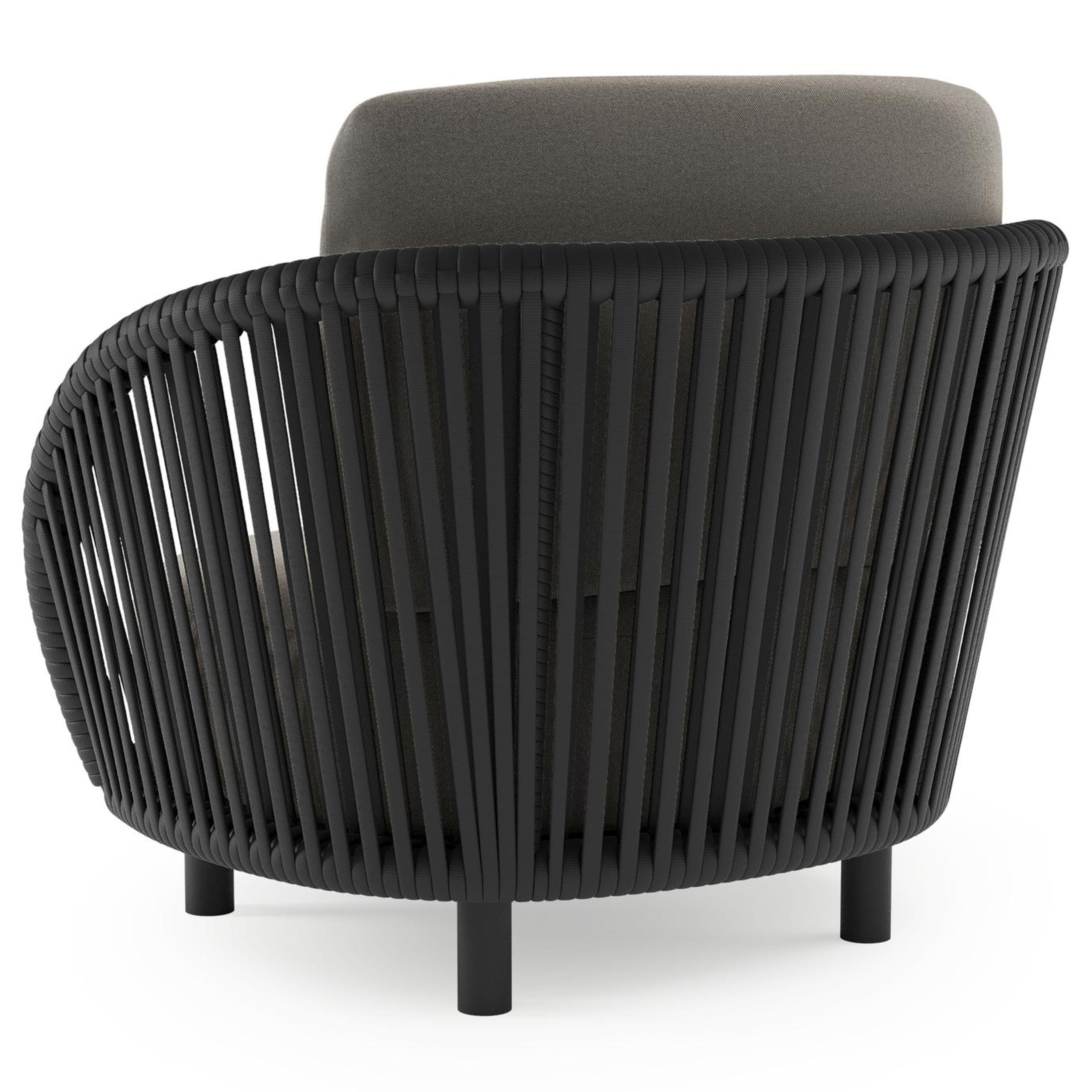 Lupino loungestoel in zwart aluminium en zwart verticaal geweven luxe vlakke brede rope met natte dark taupe all weather sunbrella® luxe kussen | Exterioo tuinmeubelen