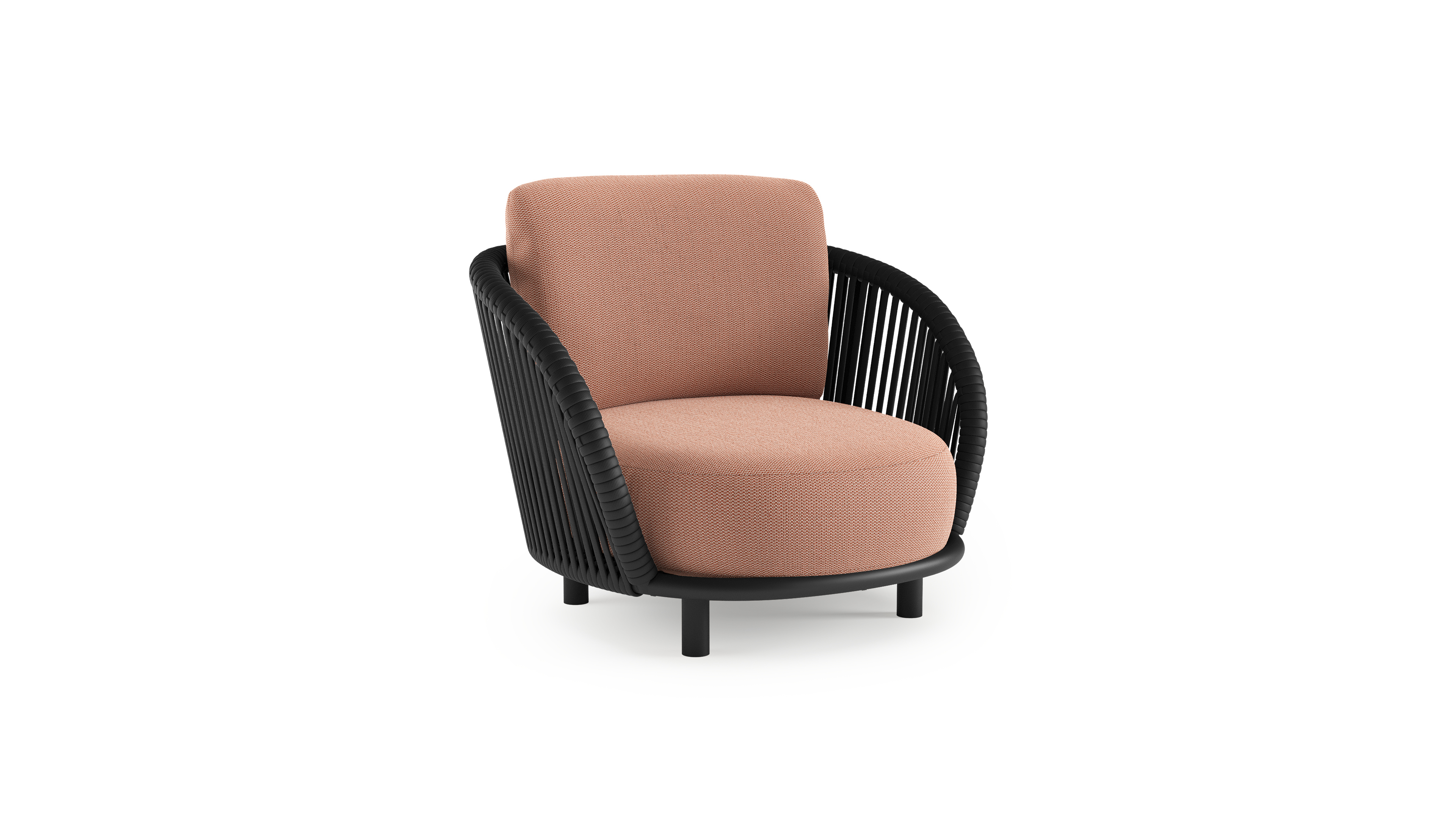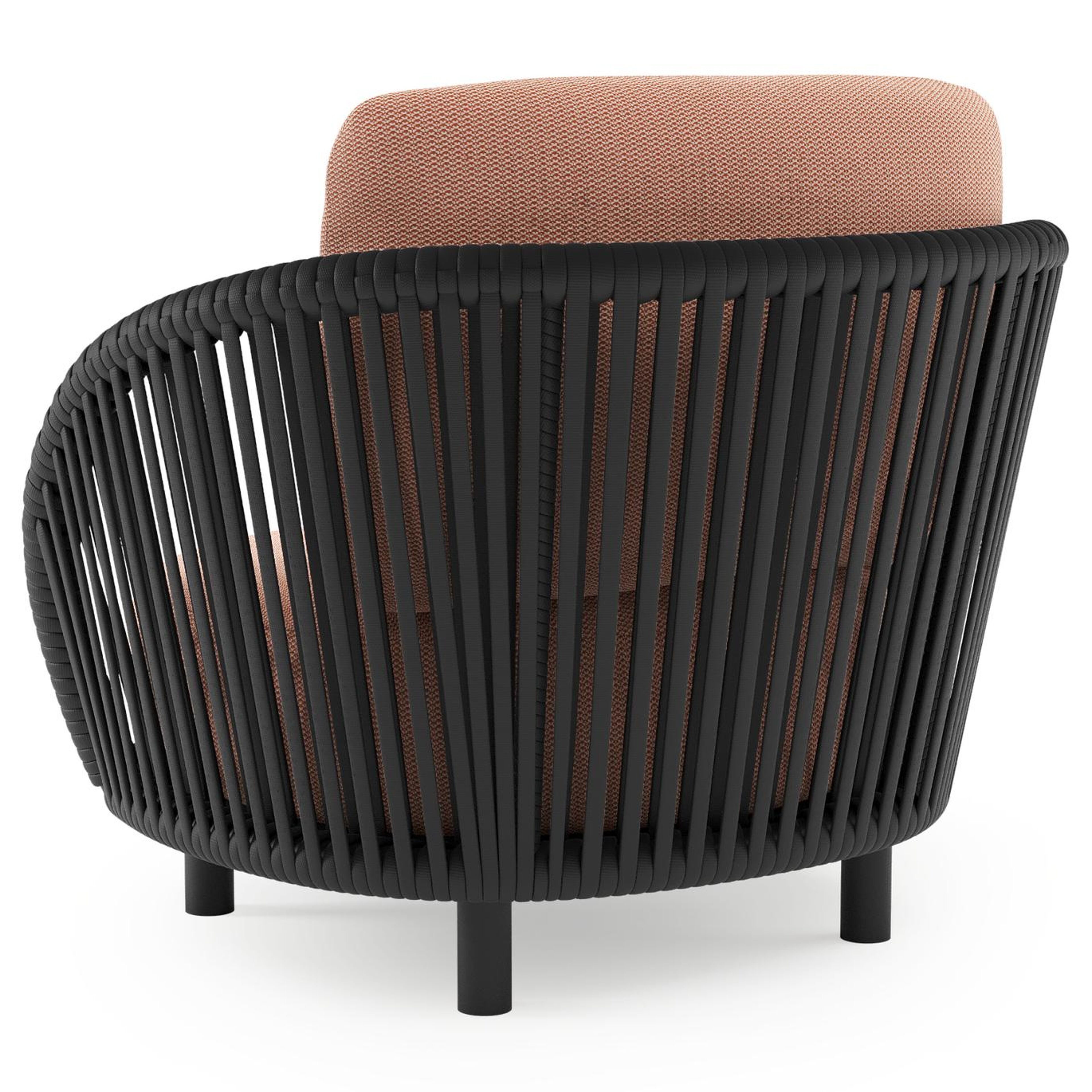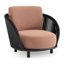 Lupino loungestoel in zwart aluminium en zwart verticaal geweven luxe vlakke brede rope met lopi fawn all weather sunbrella® luxe kussen | Exterioo tuinmeubelen