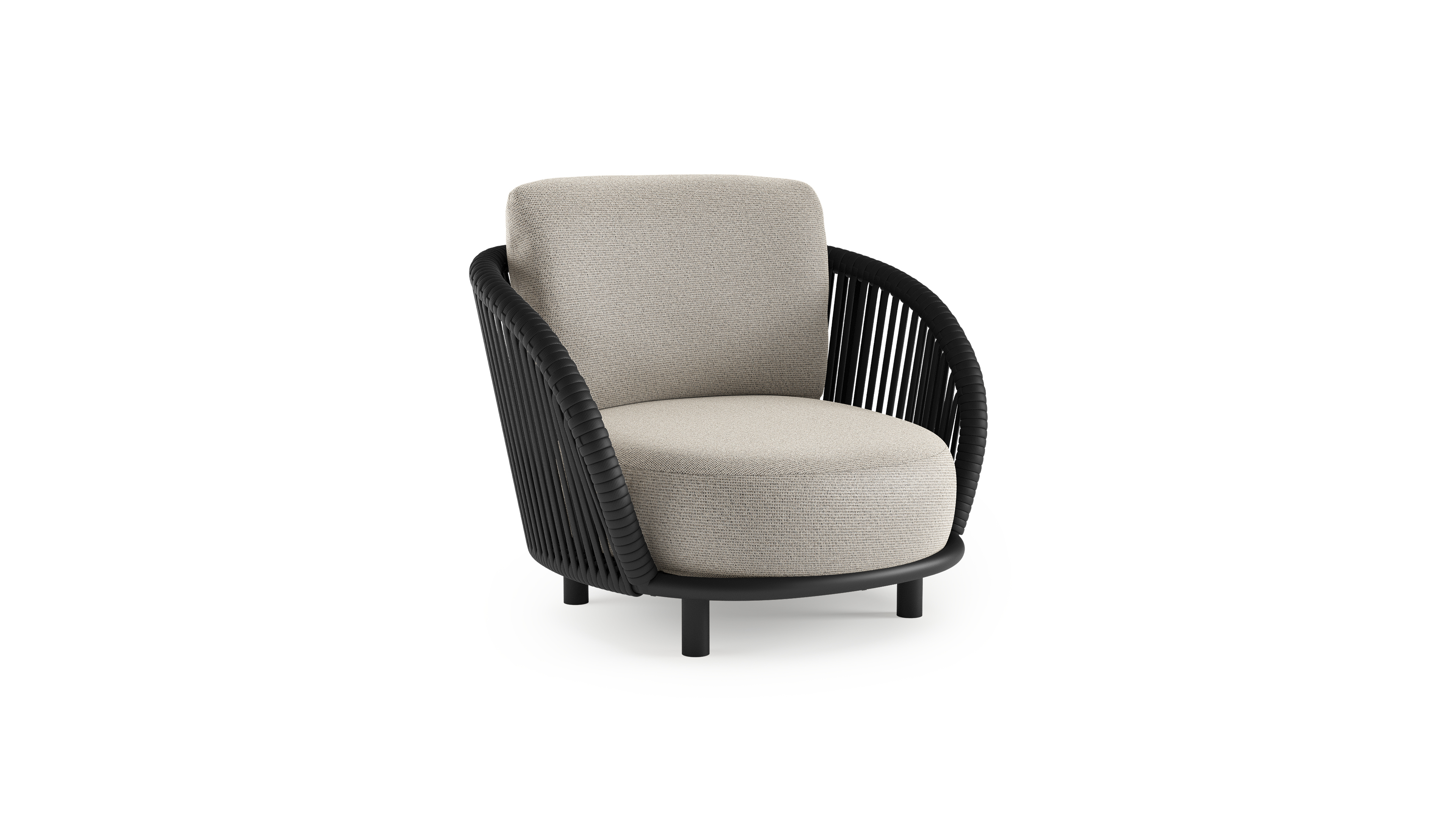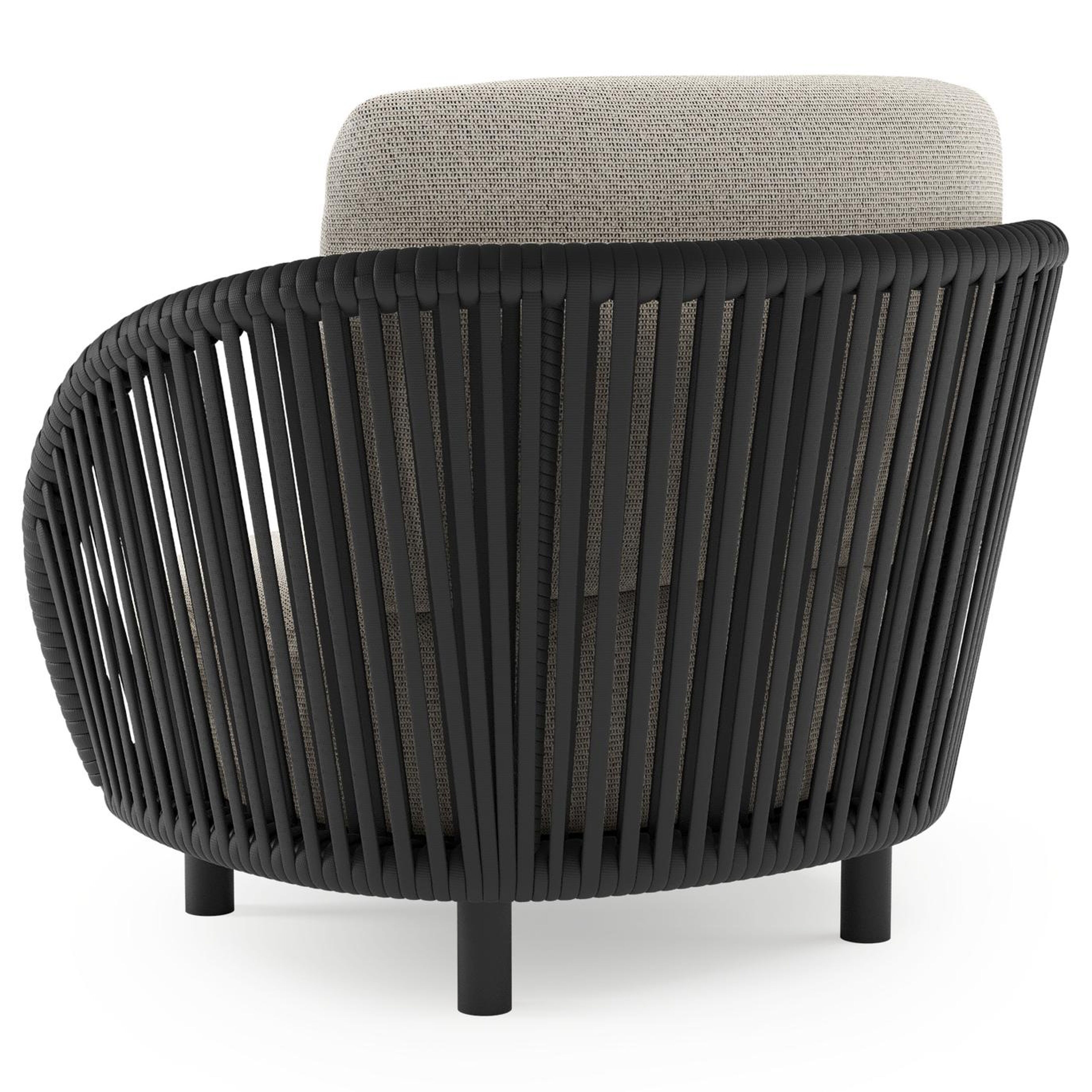 Lupino loungestoel in zwart aluminium en zwart verticaal geweven luxe vlakke brede rope met firenze sand all weather solica kussen | Exterioo tuinmeubelen