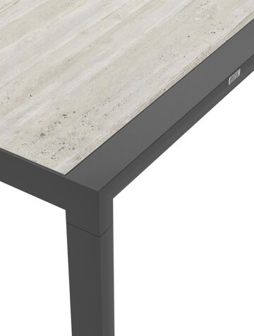 Het frame van de tafel is gemaakt uit roestvrij aluminium, een sterk, maar toch licht materiaal dat makkelijk verplaatsbaar is. Het oppervlak is glad afgewerkt waardoor het geen vuil aantrekt en onderhoudsvriendelijk is. De poedercoating zorgt voor de UV- en weerbestendigheid van je meubel.