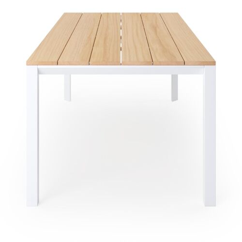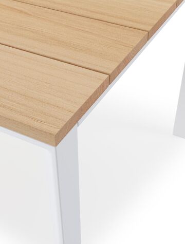 De Malito tafel is kenmerkend voor zijn elegant, schuin aflopende rand. Het frame is gemaakt van aluminium een licht, maar sterk en roestvrij materiaal dat zeer geschikt is voor tuinmeubelen. Deze tafel is afgewerkt met een tafelblad in teak. Dit zorgt voor een warme en natuurlijke touch.
