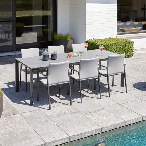 Malito tuintafel in zwart aluminium en volkeramiek aspen grey - L 240 x B 100 x H 75 cm | Exterioo