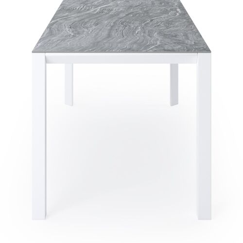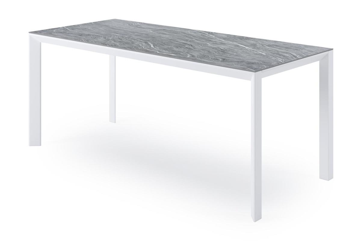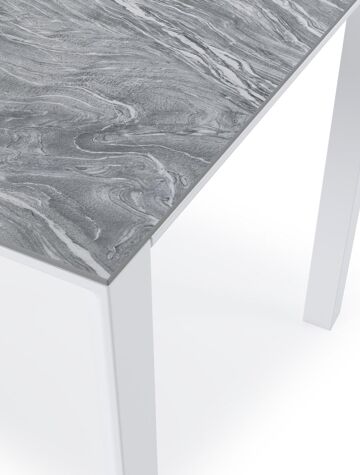 De Malito tafel is kenmerkend voor zijn elegant, schuin aflopende rand. Het frame is gemaakt van aluminium een licht, maar sterk en roestvrij materiaal dat zeer geschikt is voor tuinmeubelen. Deze tafel is afgewerkt met een Mar Del Plata tafelblad. Een uniek tafelblad waarin de golven van de zee weerspiegelen. In de tafel vind je glinsterende spikkels die zorgen voor een prachtig parelmoereffect. Het voordeel van volkeramische tafelbladen is dat ze krasbestendig zijn en bestand zijn tegen alle weersomstandigheden.