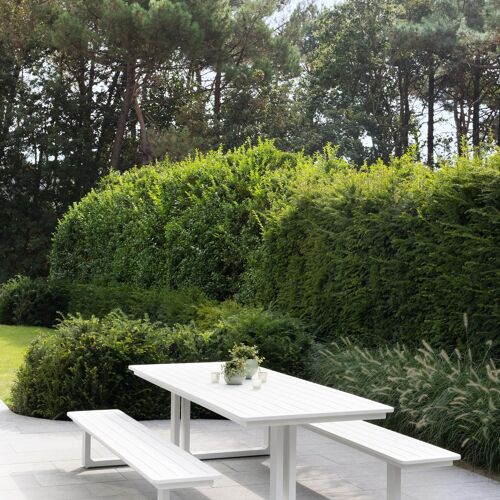 De Merano picknicktafel straalt een eigentijdse elegantie uit met zijn strakke ontwerp en afgeronde hoeken. De tafel nodigt uit tot gezelligheid met zijn ruime instap, waardoor het moeiteloos en comfortabel is om plaats te nemen.