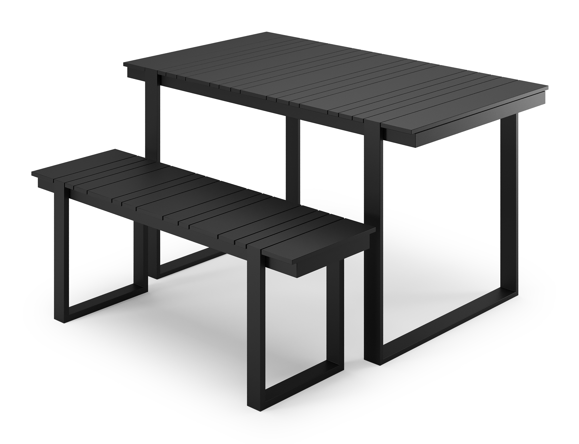 Merida loungetafel en bank in zwart aluminium en zwart - L 123 x B 70 x H 69.5 cm | Exterioo tuinmeubelen