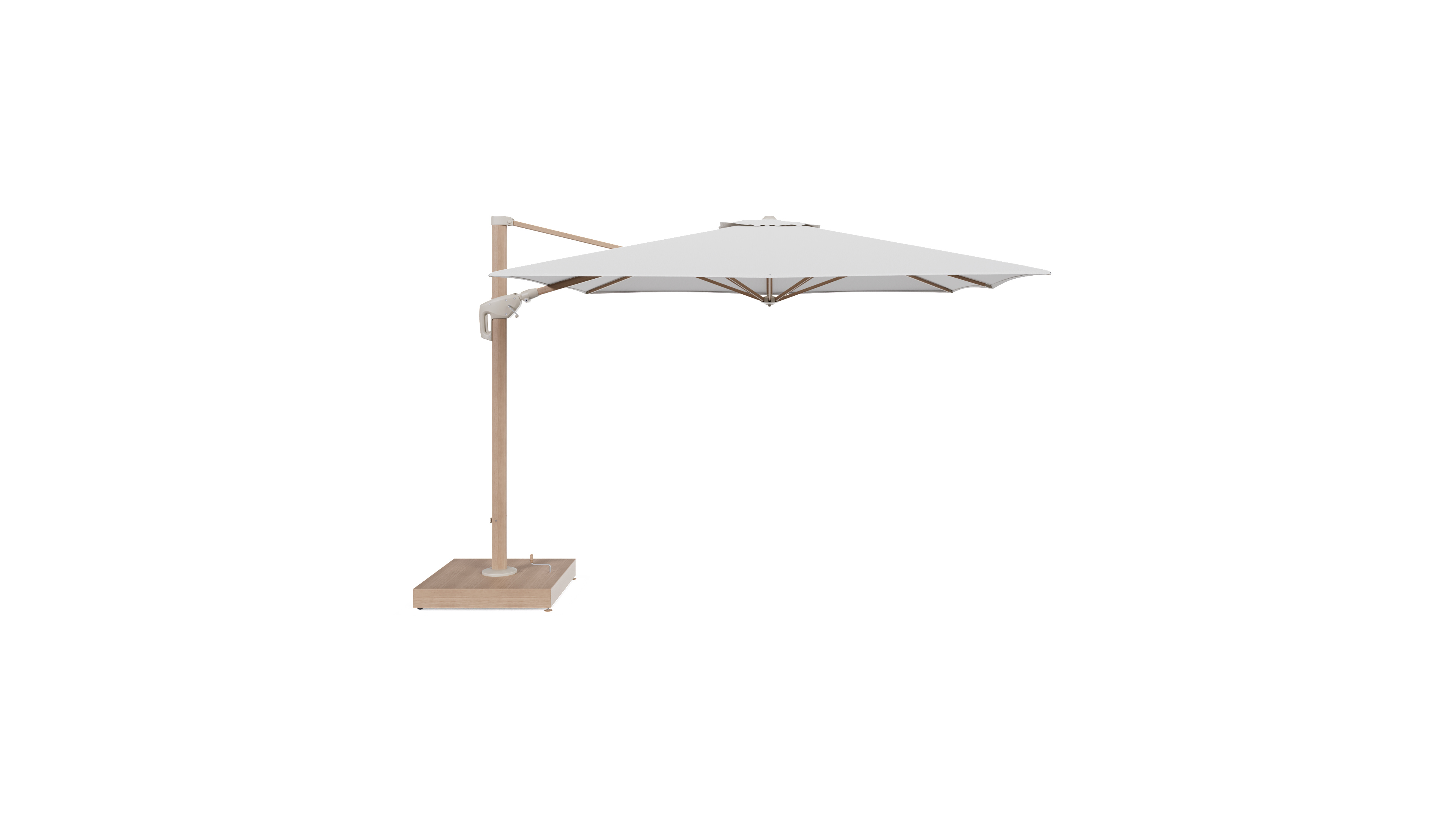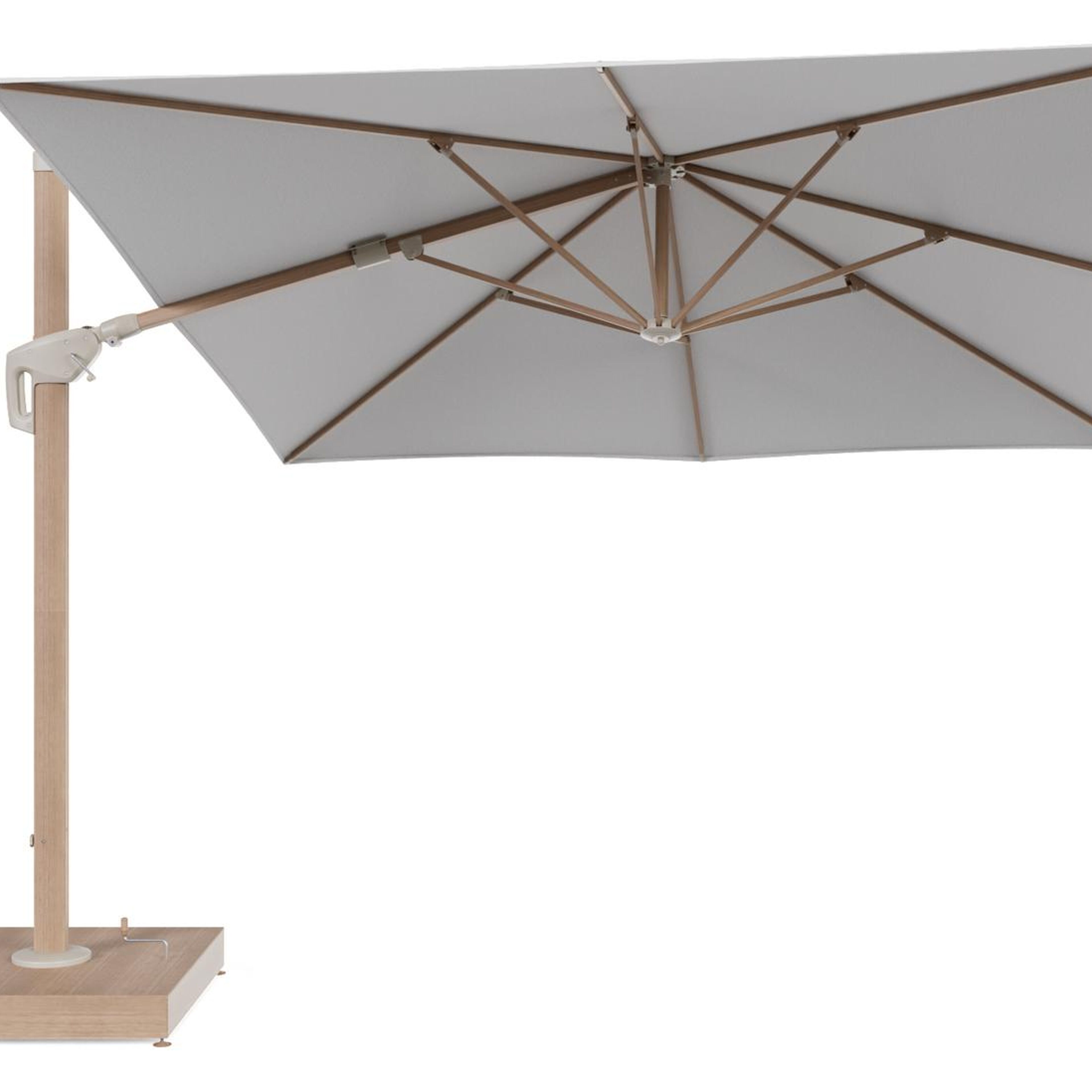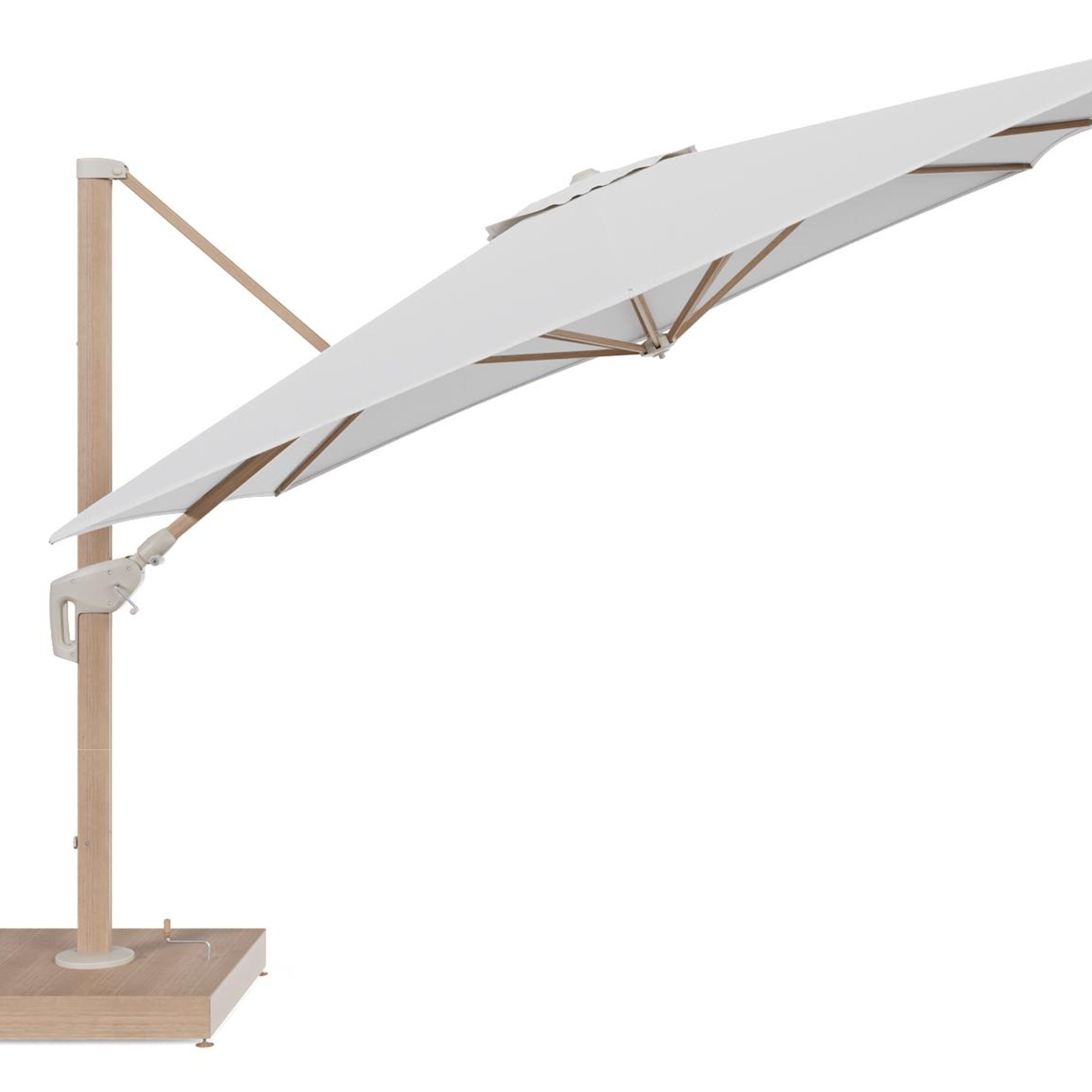 Minore zweefparasol met tiltfunctie in houtlook aluminium en Ego Birch All Weather Solica parasoldoek - L1 350 x L2 350 cm met parasolvoet Minore 260 kg met wielen | Exterioo tuinmeubelen
