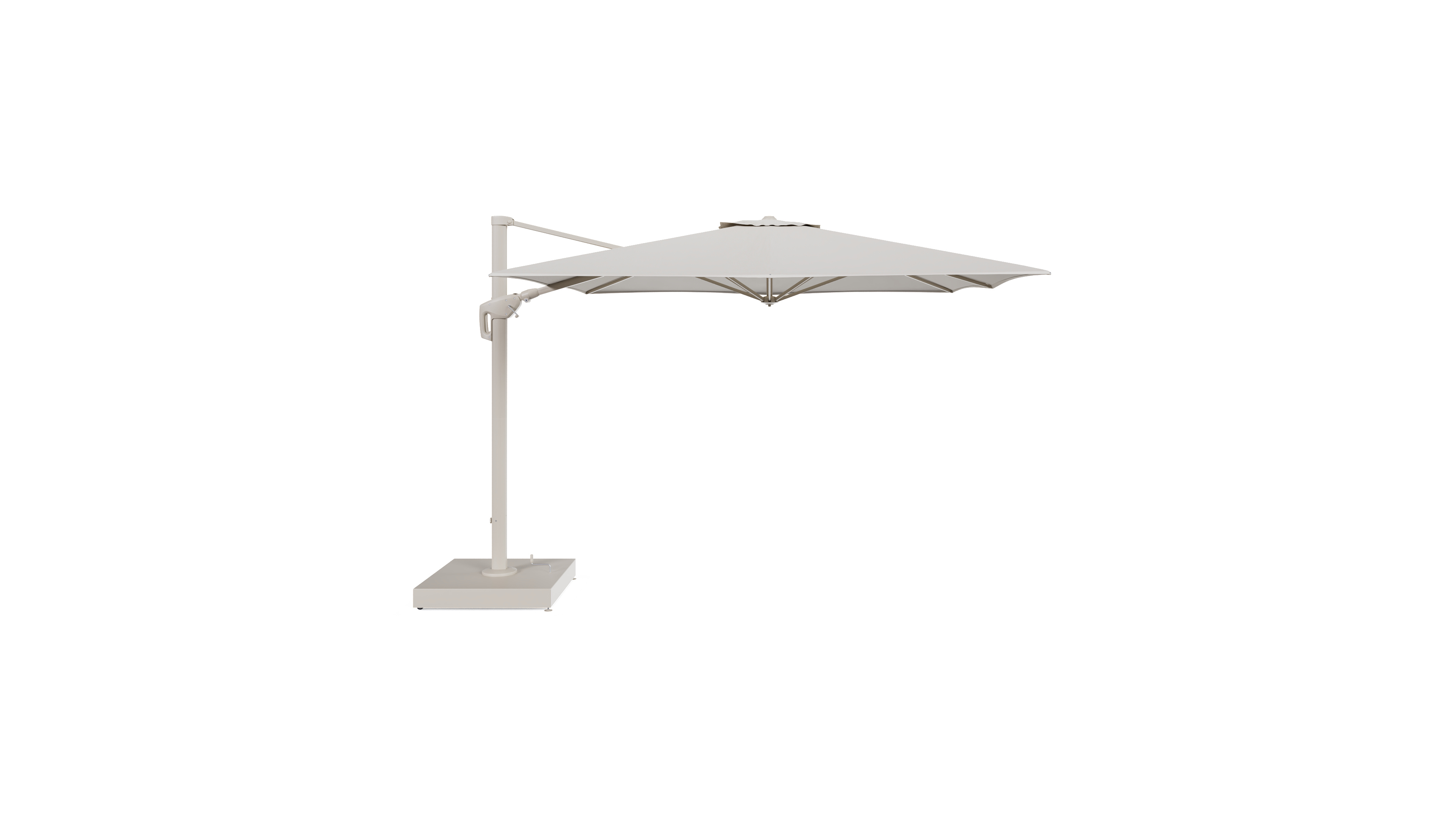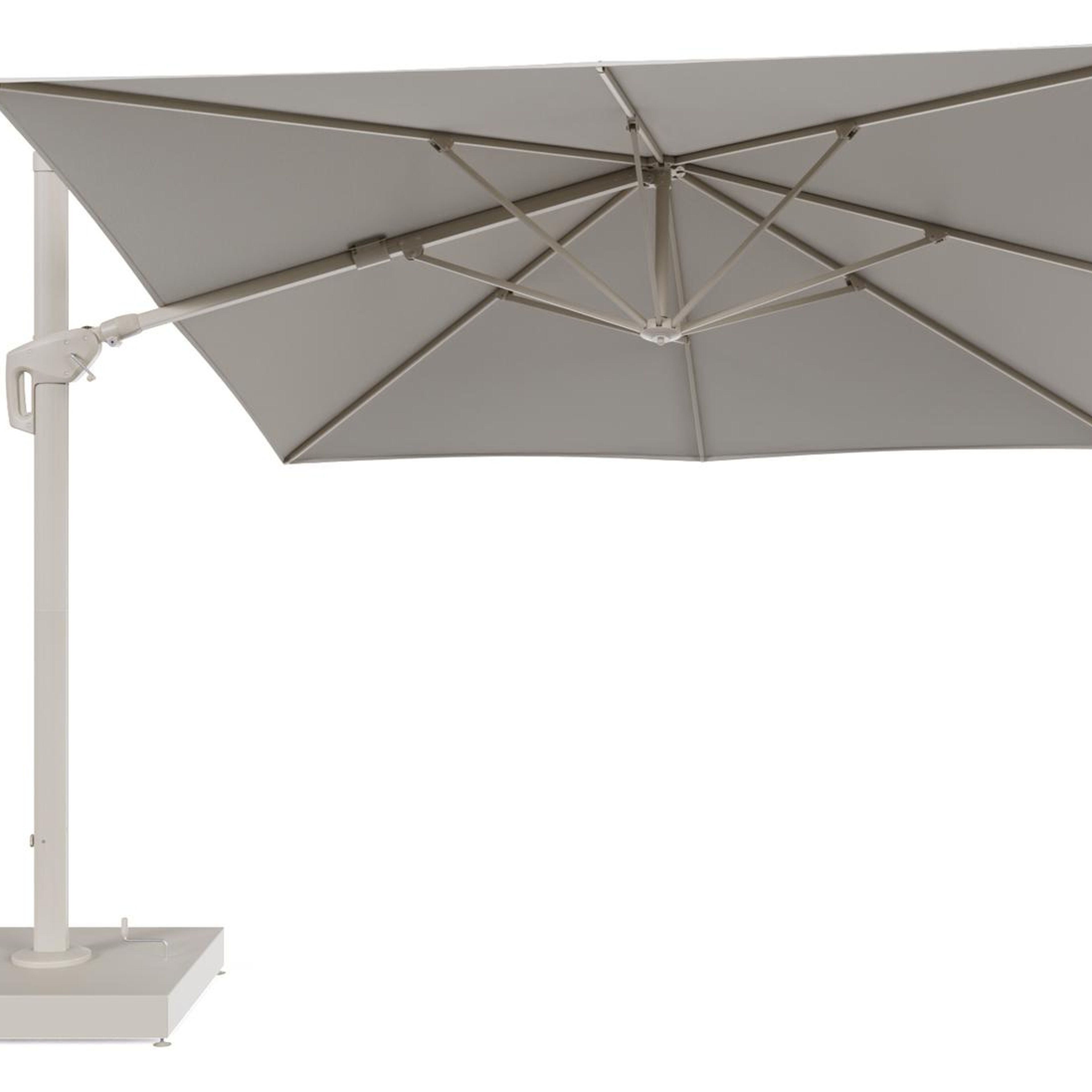 De parasol wordt geleverd met een 260 kg Minore aluminium parasolvoet. Deze stevige basis zorgt voor de nodige stabiliteit op je terras.