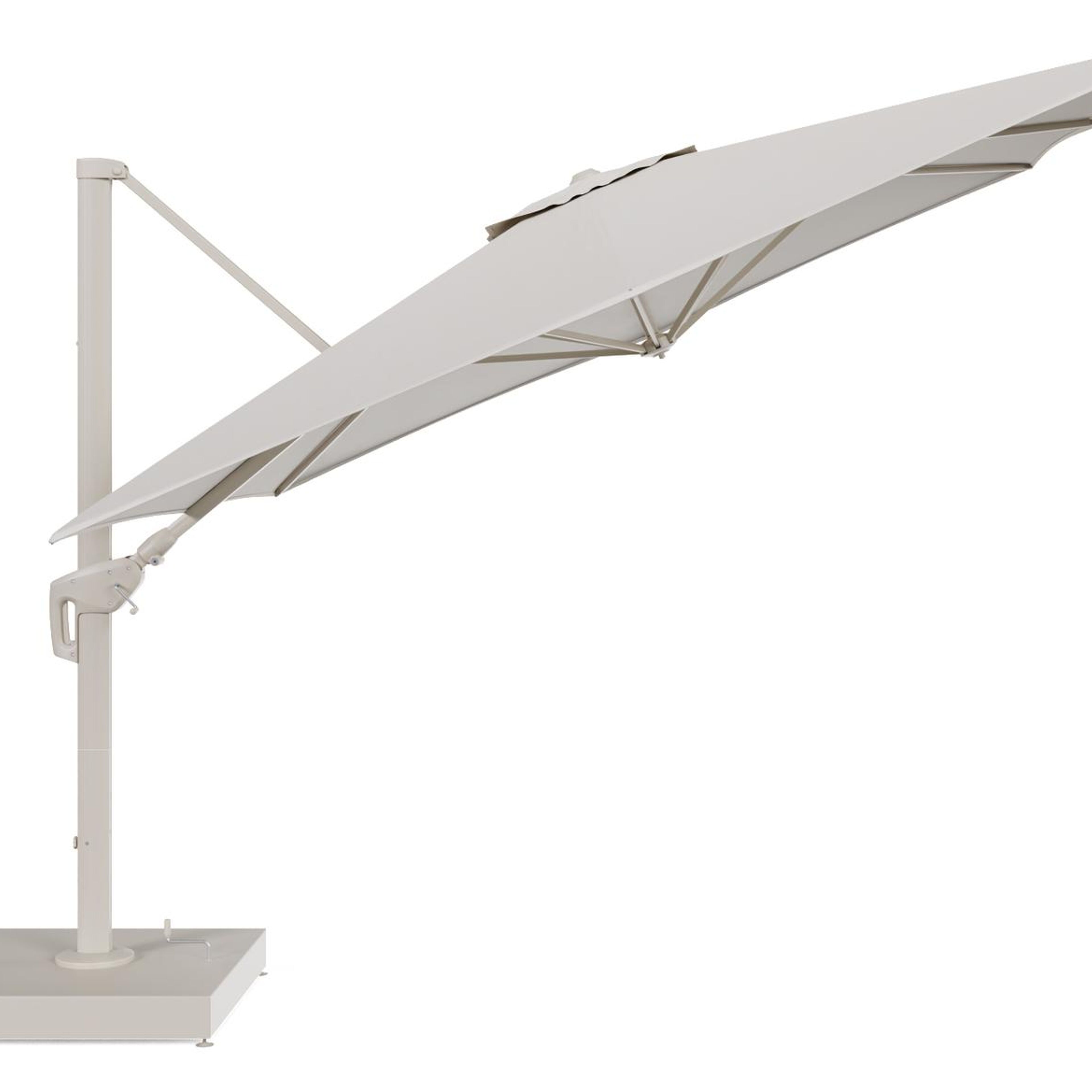 De parasoldoek is gemaakt van All Weather Sunbrella® Luxe, een stijlvolle, weerbestendige stof met een coating die niet enkel waterafstotend is maar ook beschermt tegen vuil, vlekken en vloeistoffen.