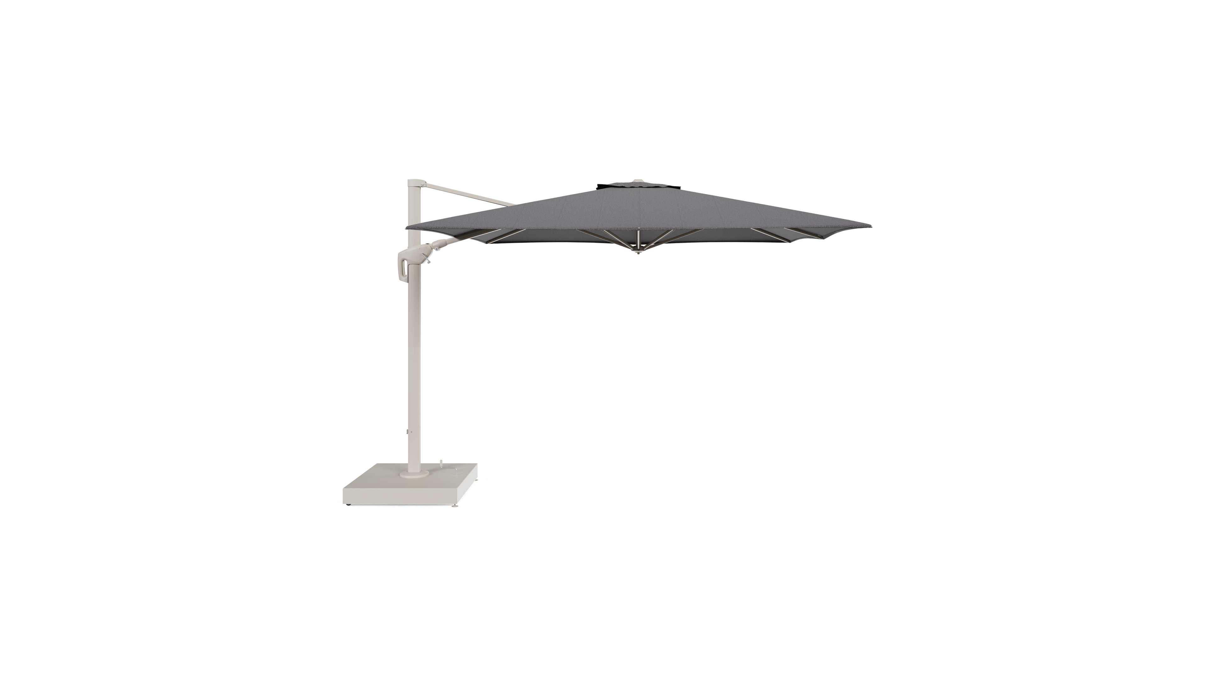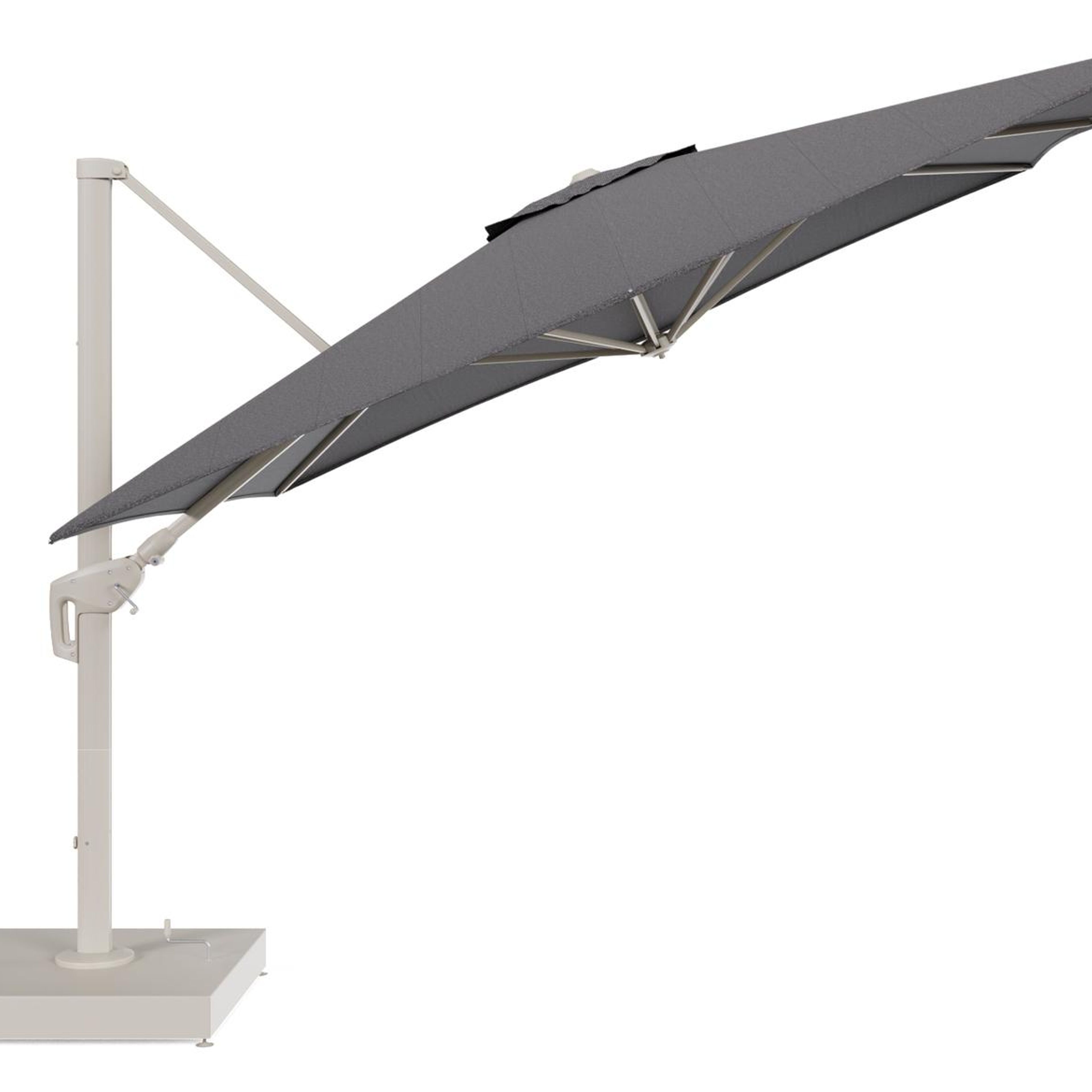 De parasol wordt geleverd met een 260 kg Minore aluminium parasolvoet. Deze stevige basis zorgt voor de nodige stabiliteit op je terras.