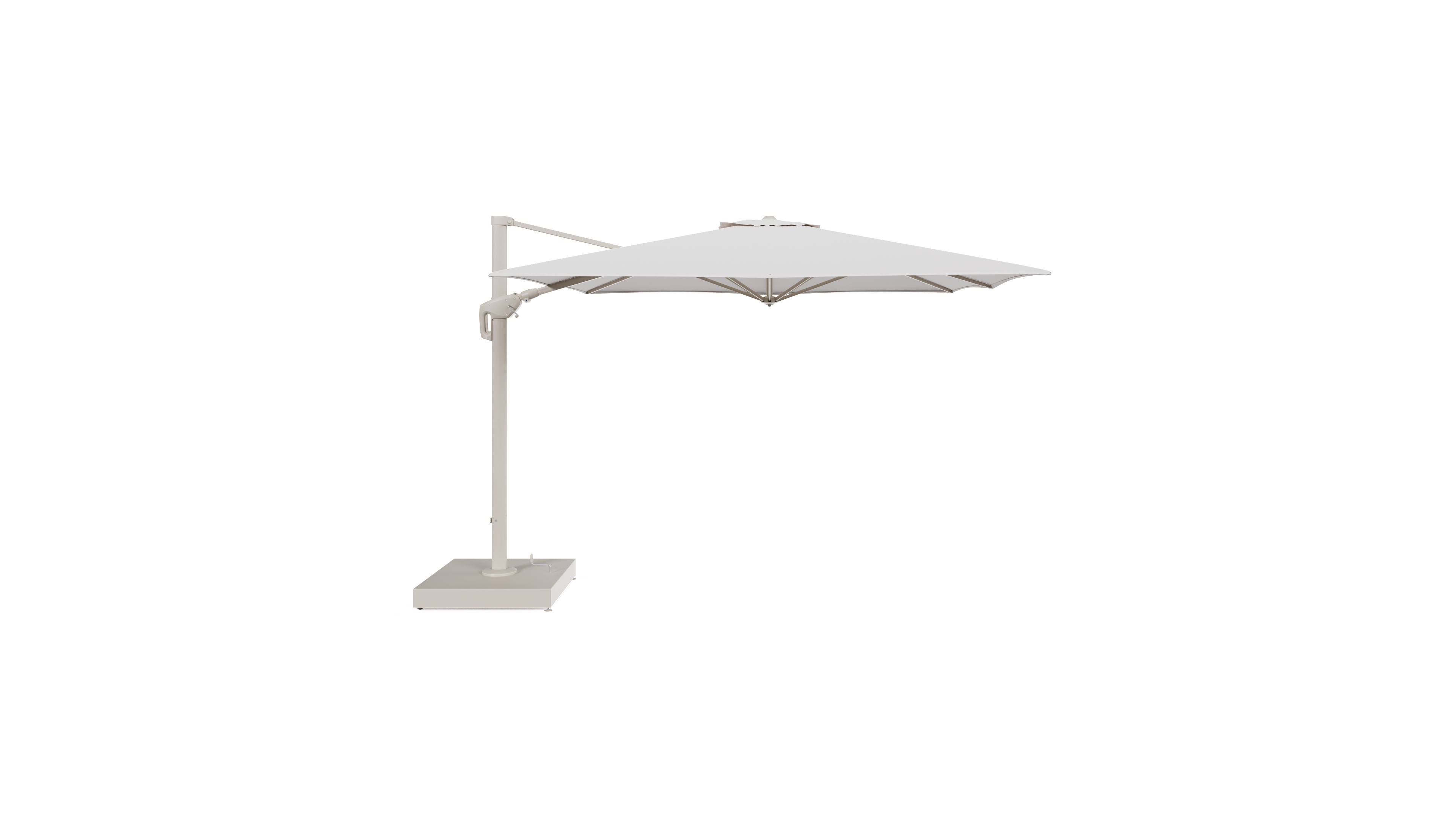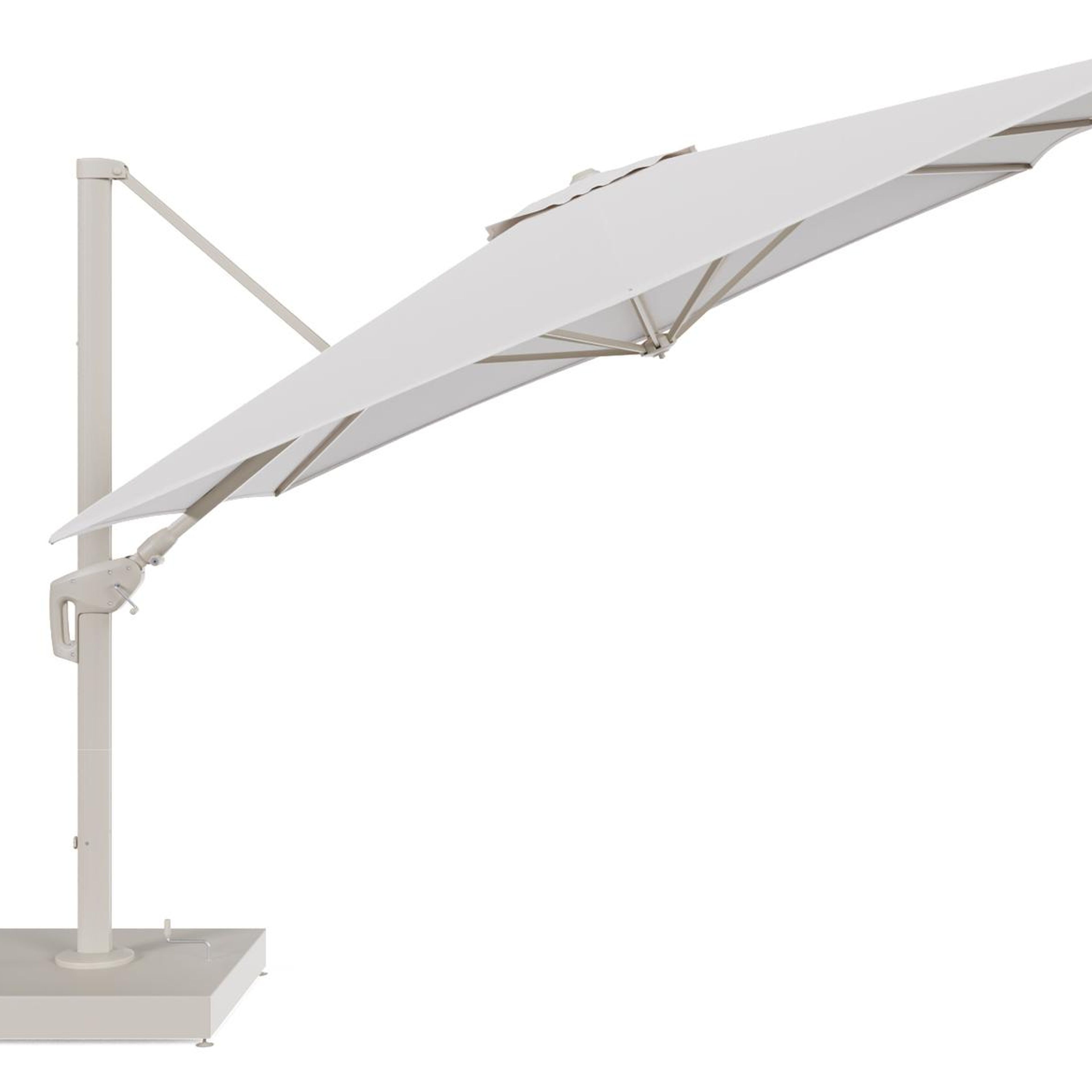 Minore zweefparasol met tiltfunctie in beige aluminium en Ego Eggshell All Weather Solica parasoldoek - L1 350 x L2 350 cm met parasolvoet Minore 260 kg met wielen | Exterioo tuinmeubelen