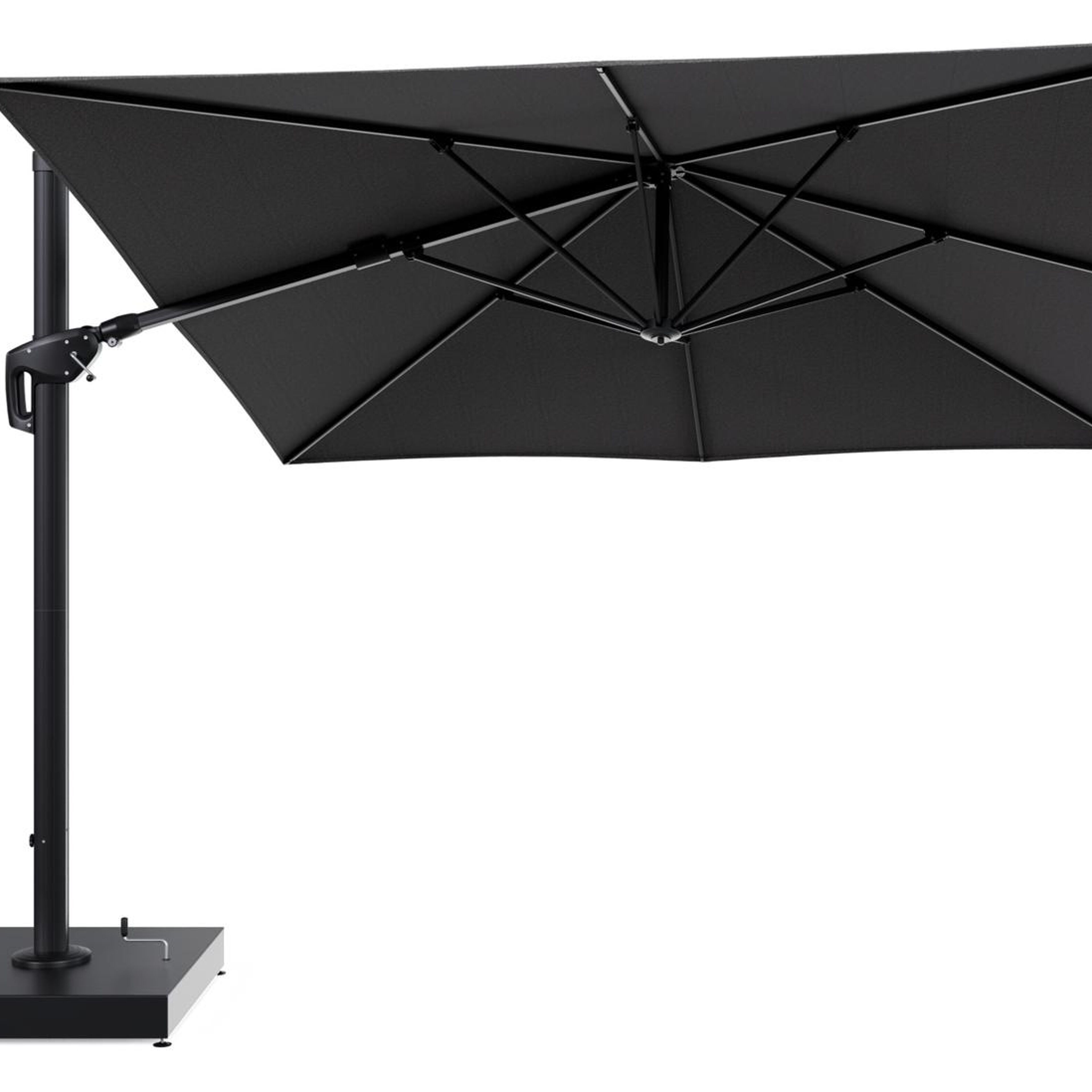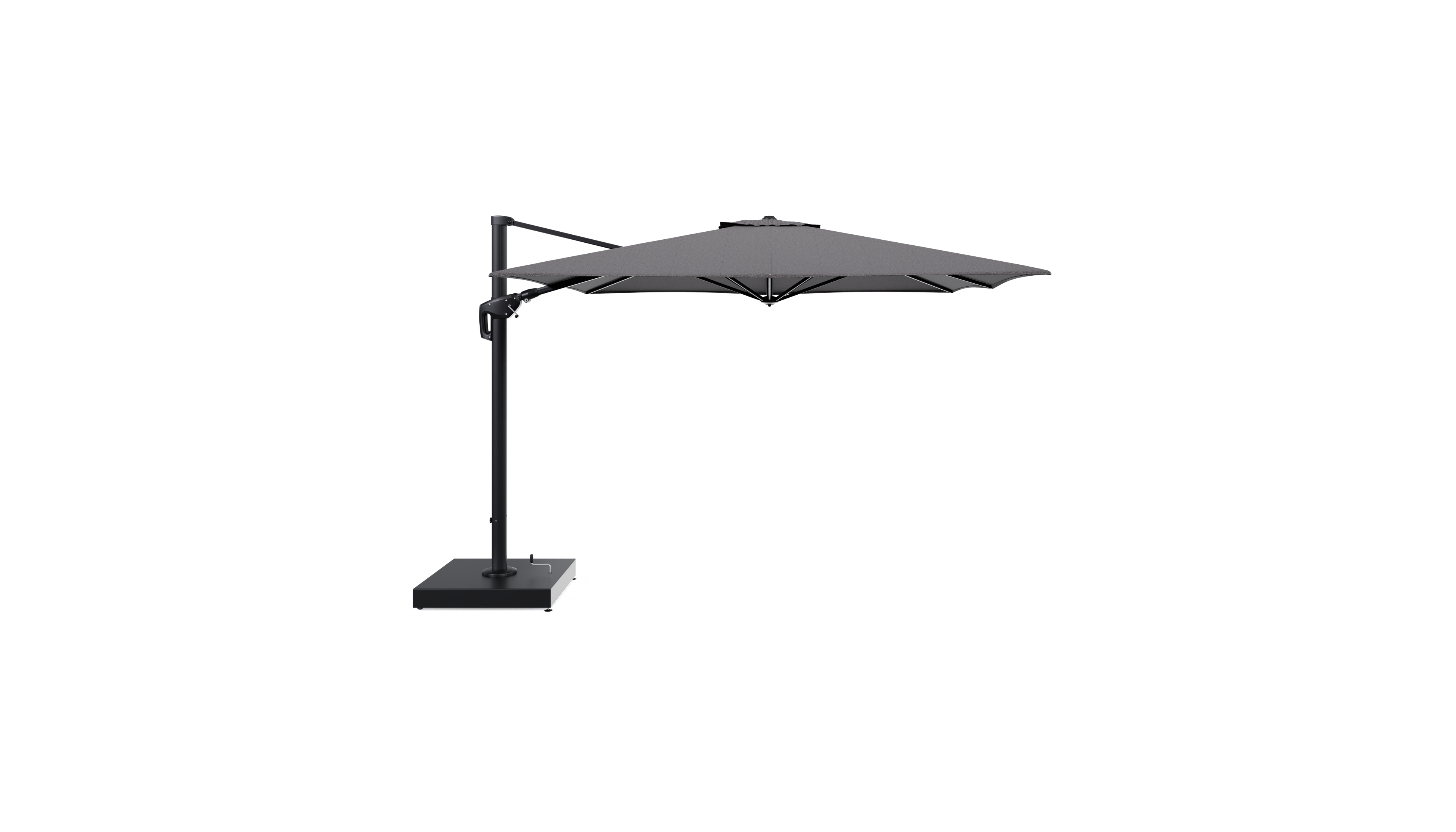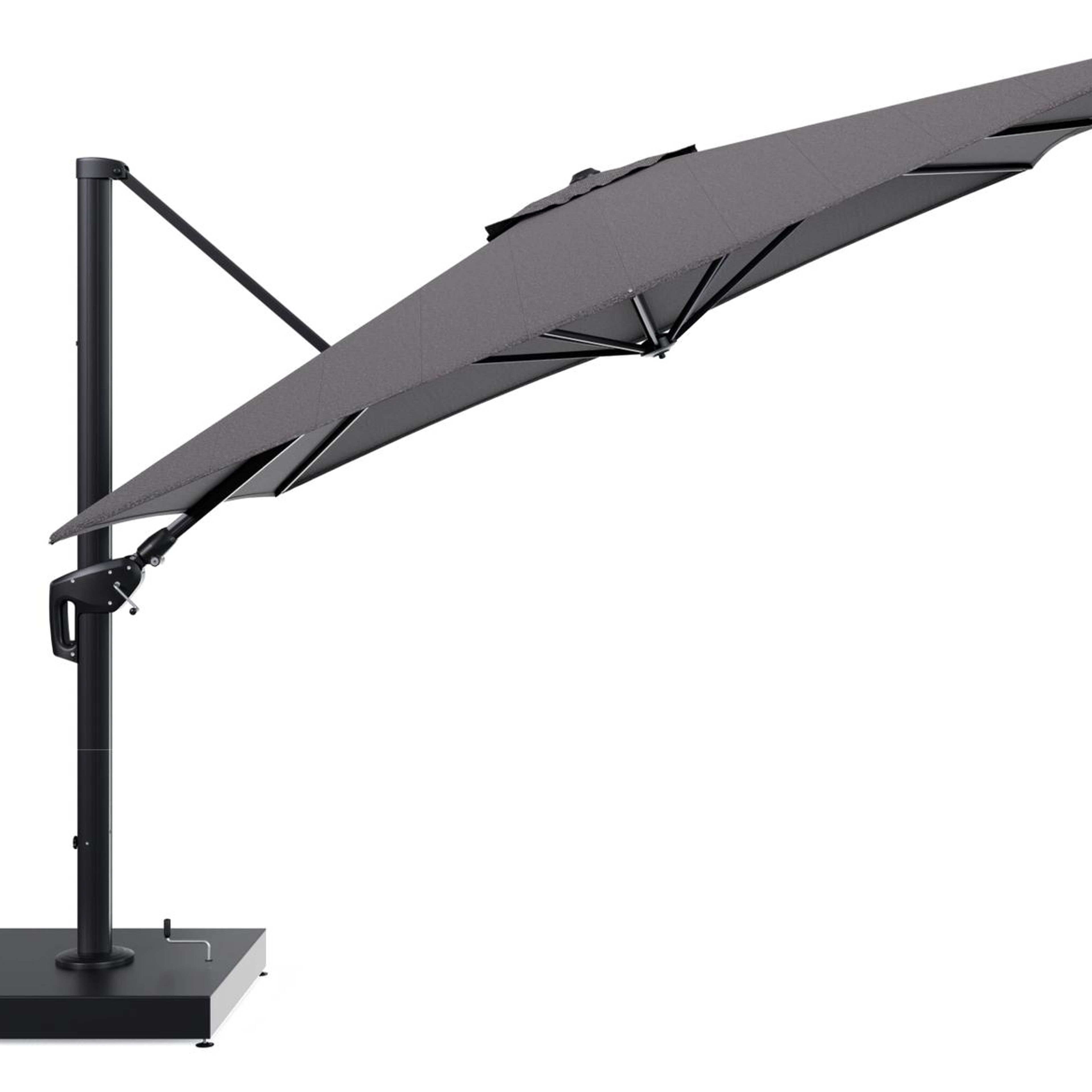De parasol wordt geleverd met een 260 kg Minore aluminium parasolvoet. Deze stevige basis zorgt voor de nodige stabiliteit op je terras.