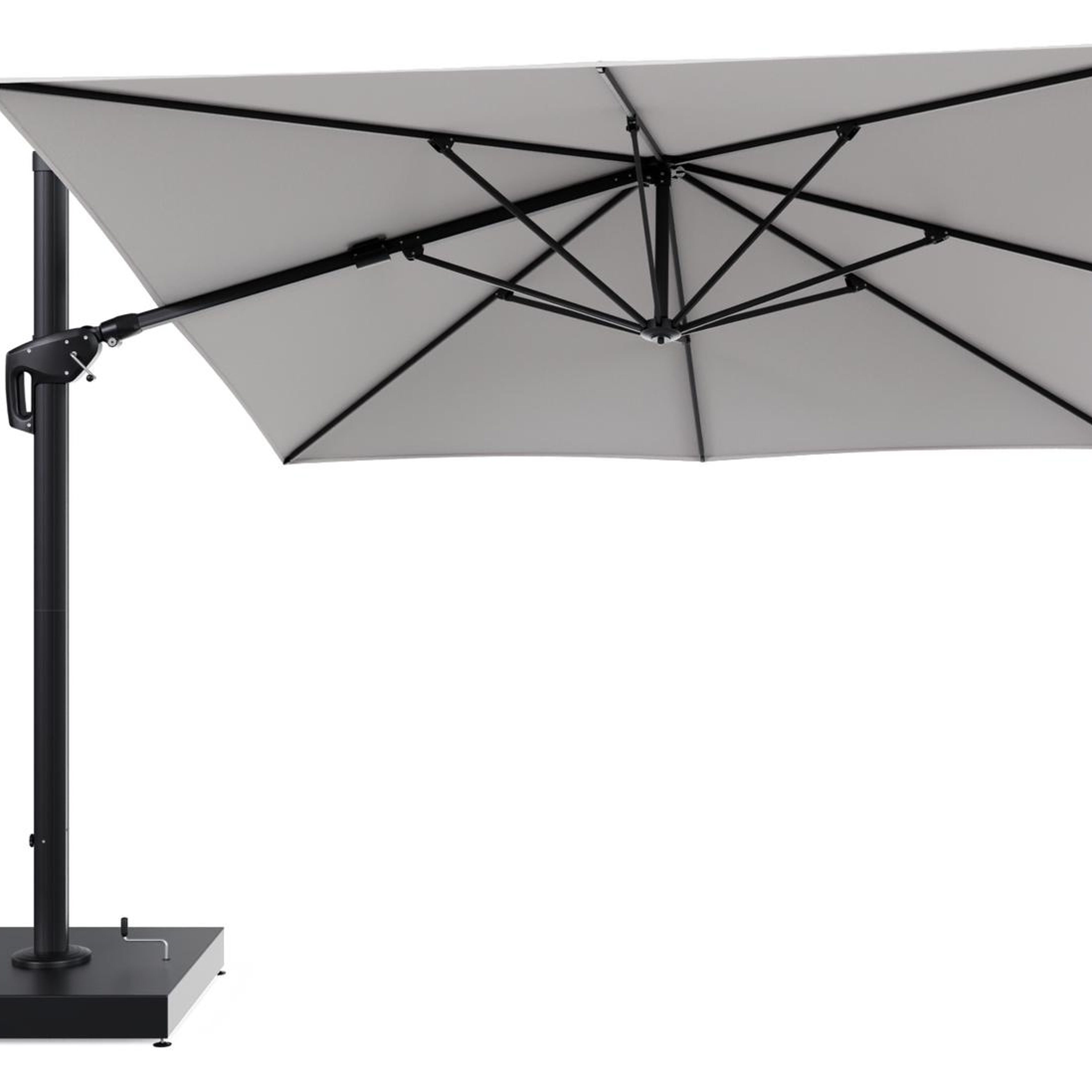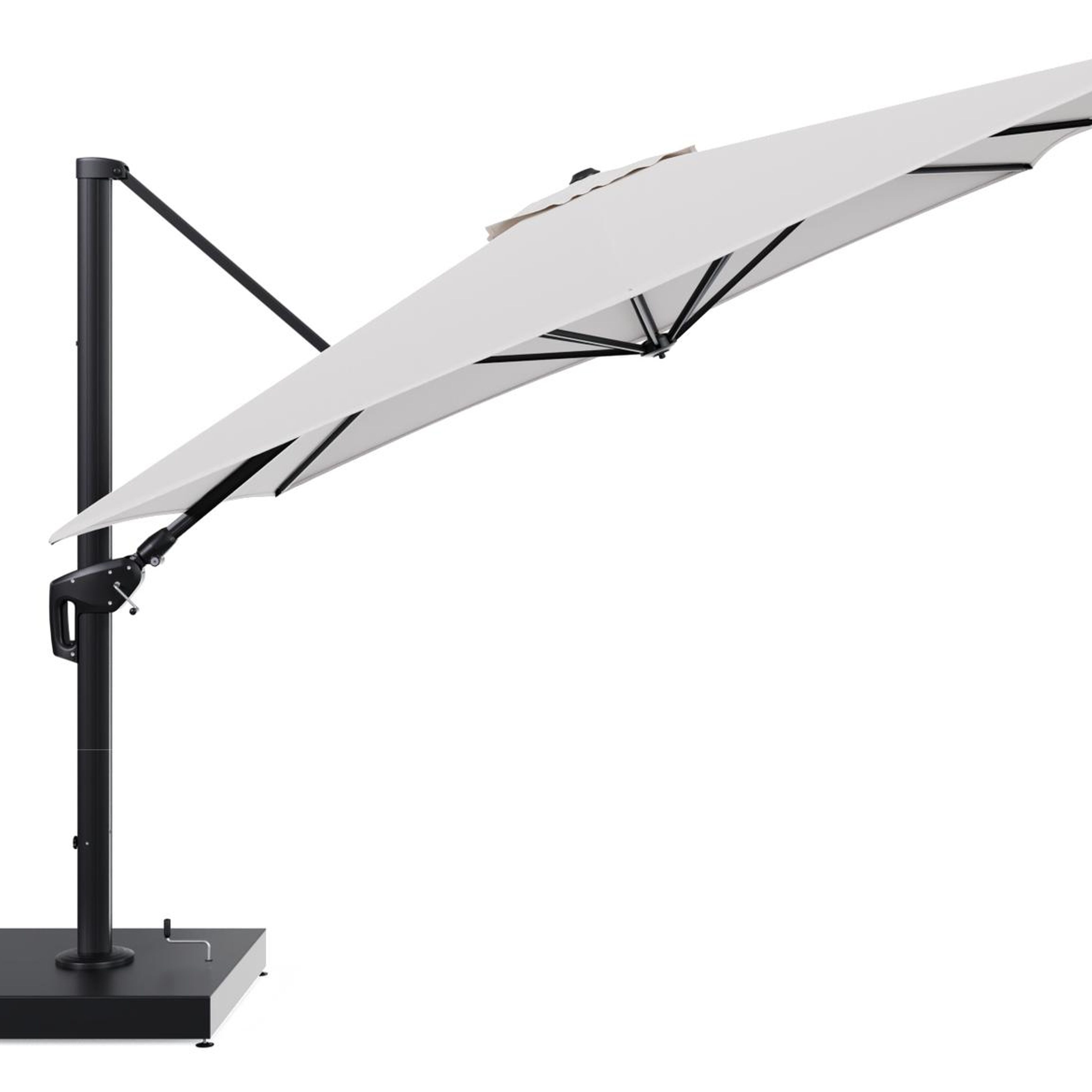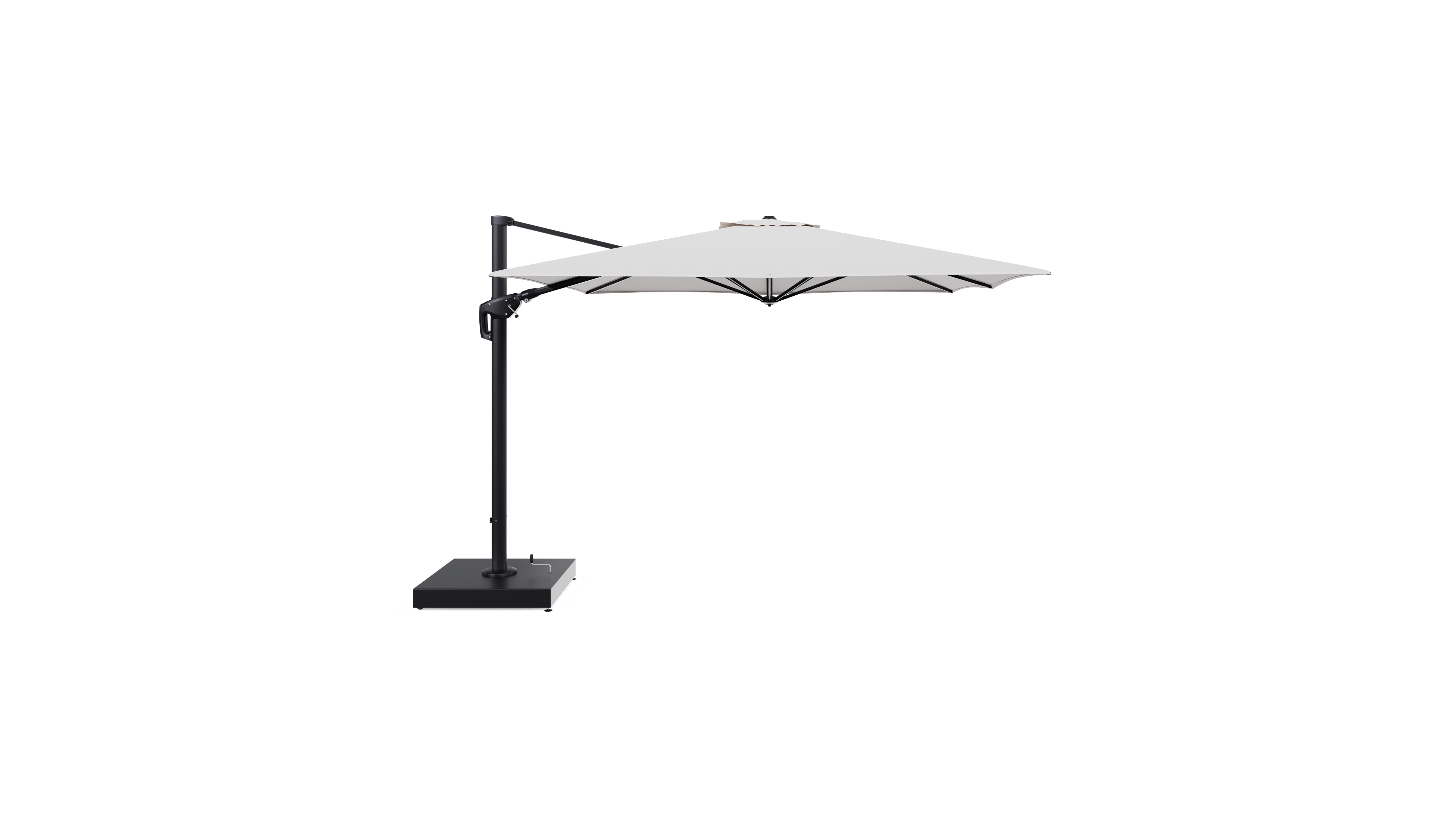 Minore zweefparasol met tiltfunctie in zwart aluminium en Ego Eggshell All Weather Solica parasoldoek - L1 350 x L2: 350 cm met parasolvoet Minore 260 kg met wielen | Exterioo tuinmeubelen