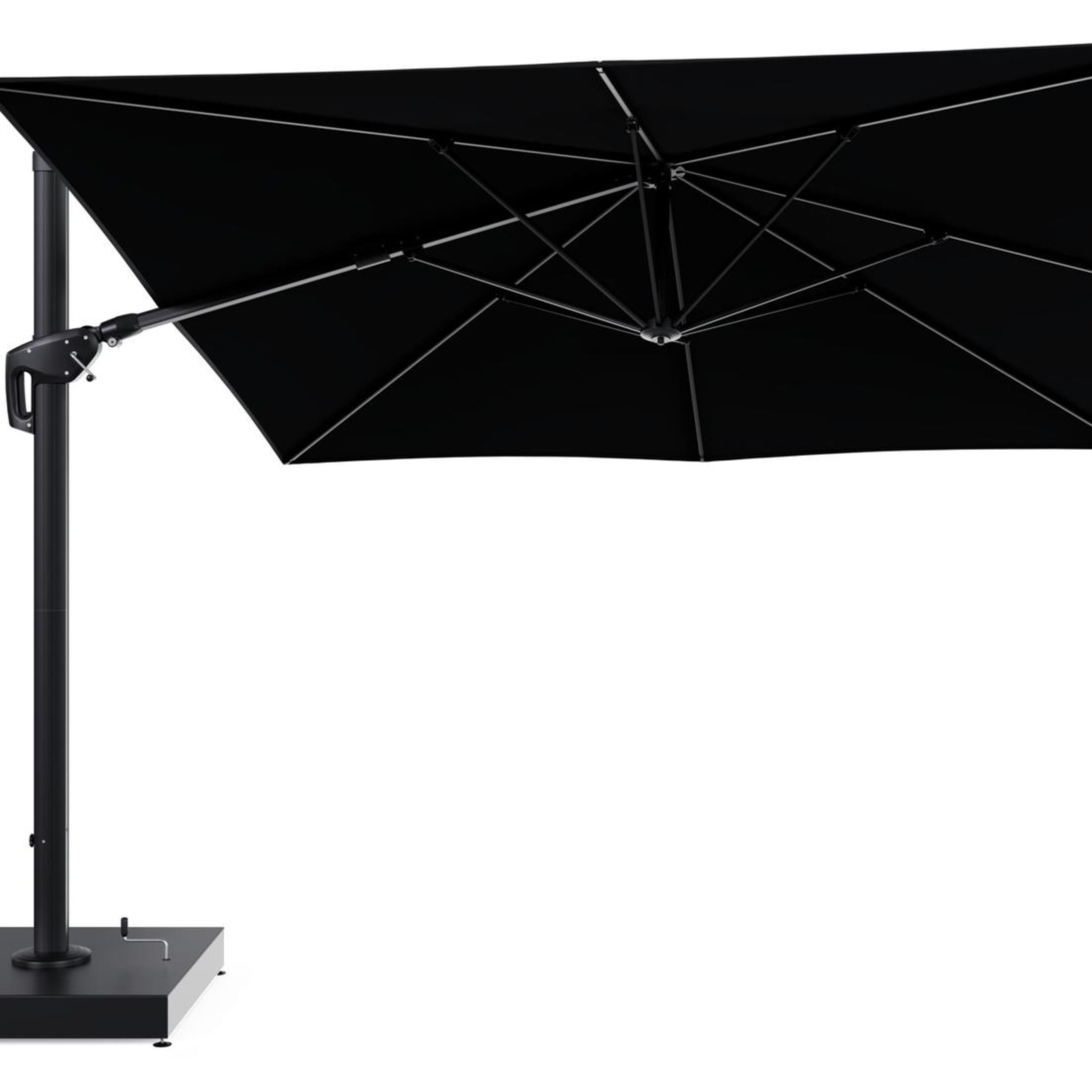 De parasol wordt geleverd met een 260 kg Minore aluminium parasolvoet. Deze stevige basis zorgt voor de nodige stabiliteit op je terras.