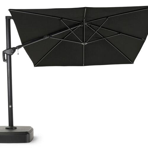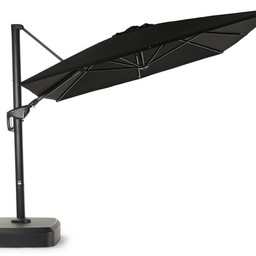 De Minore parasol is een zeer gebruiksvriendelijke parasol. Het is een zweefparasol waardoor de mast niet in de weg staat. De parasol is makkelijk open te draaien via de hendel. Bovendien is hij ook in hoogte verstelbaar en beschikt de Minore parasol ook over een tilt-functie. Deze functie biedt de mogelijkheid om de parasol te kantelen, zodat je de stand kunt aanpassen naar de positie van de zon. De parasol is afgewerkt met een Sunbrella parasoldoek. Een hoogwaardig materiaal dat perfect kleurvast is en UV-bestendig. Om er voor te zorgen dat de parasol stabiel blijft staan bij hevige wind wordt deze parasol gecombineerd met een zware Minore voet van 250 kg. Deze dient opgevuld te worden met water of zand. Daarnaast heeft een parasol ook 's avonds het voordeel dat de warmte blijft hangen. Laat hem dus gerust open staan eens de zon is onder gegaan.