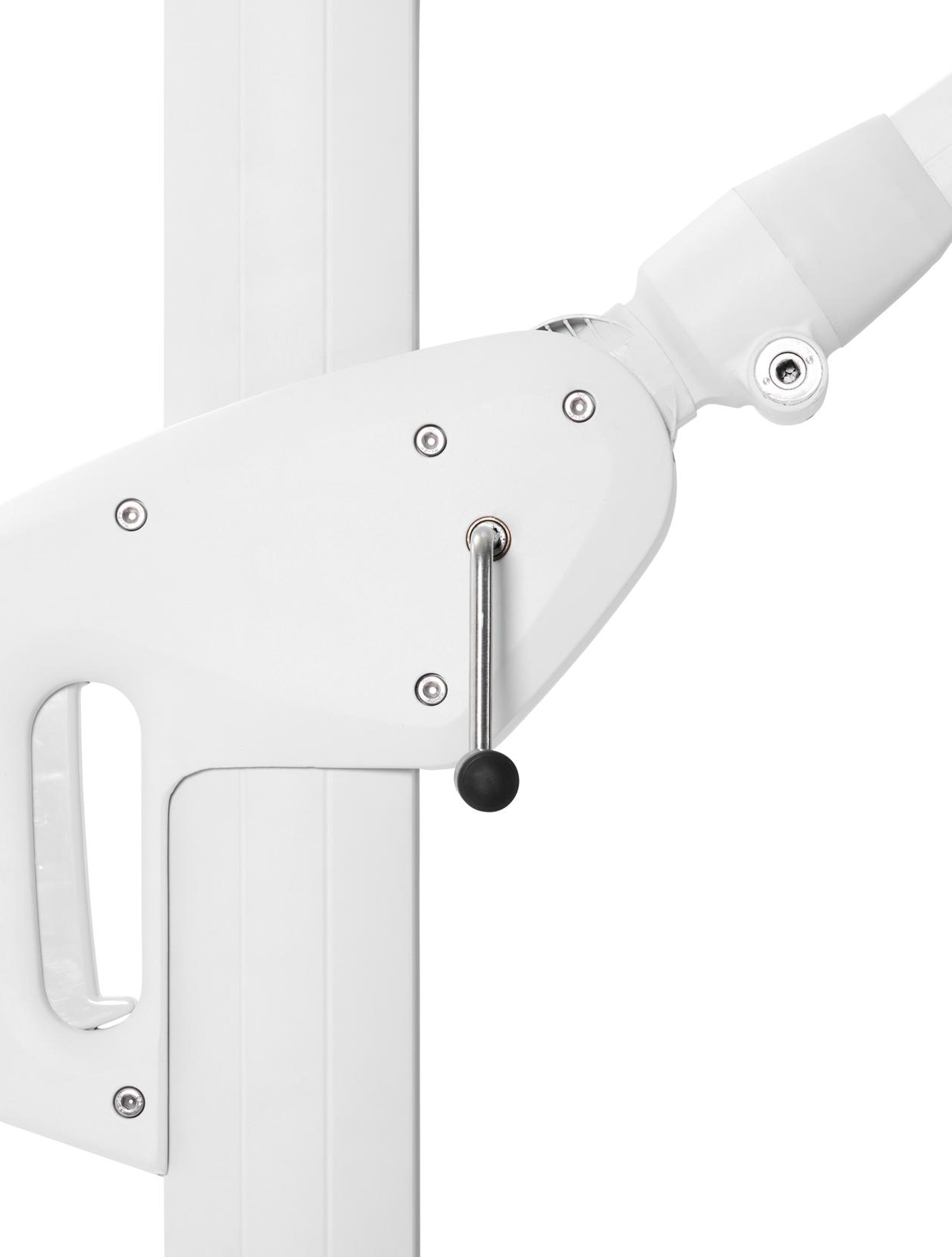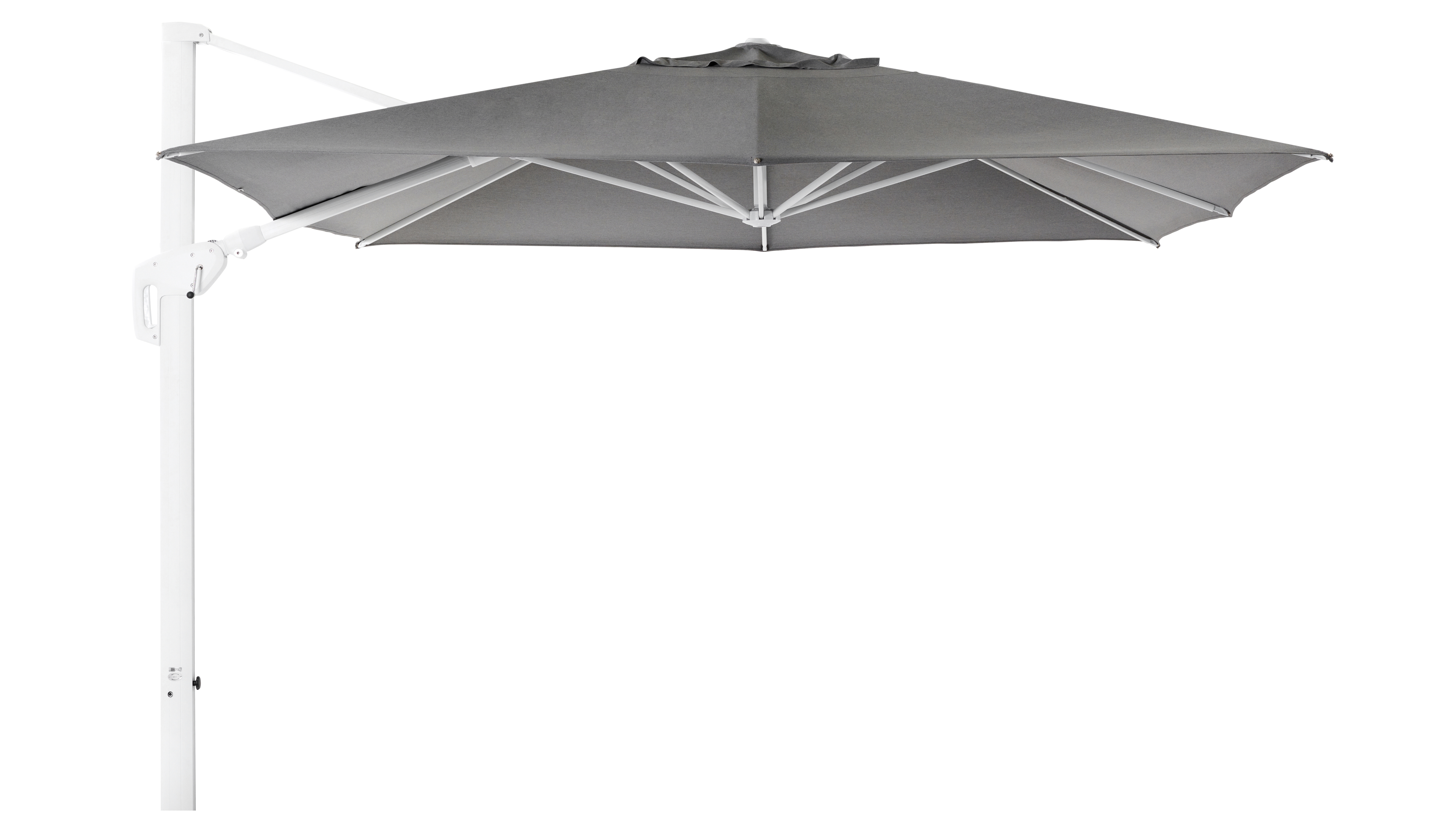 De Minore parasol is een robuuste parasol waarbij je via de hendel de mast kan bedienen. Op deze manier kan je in elke hoek schaduw maken.