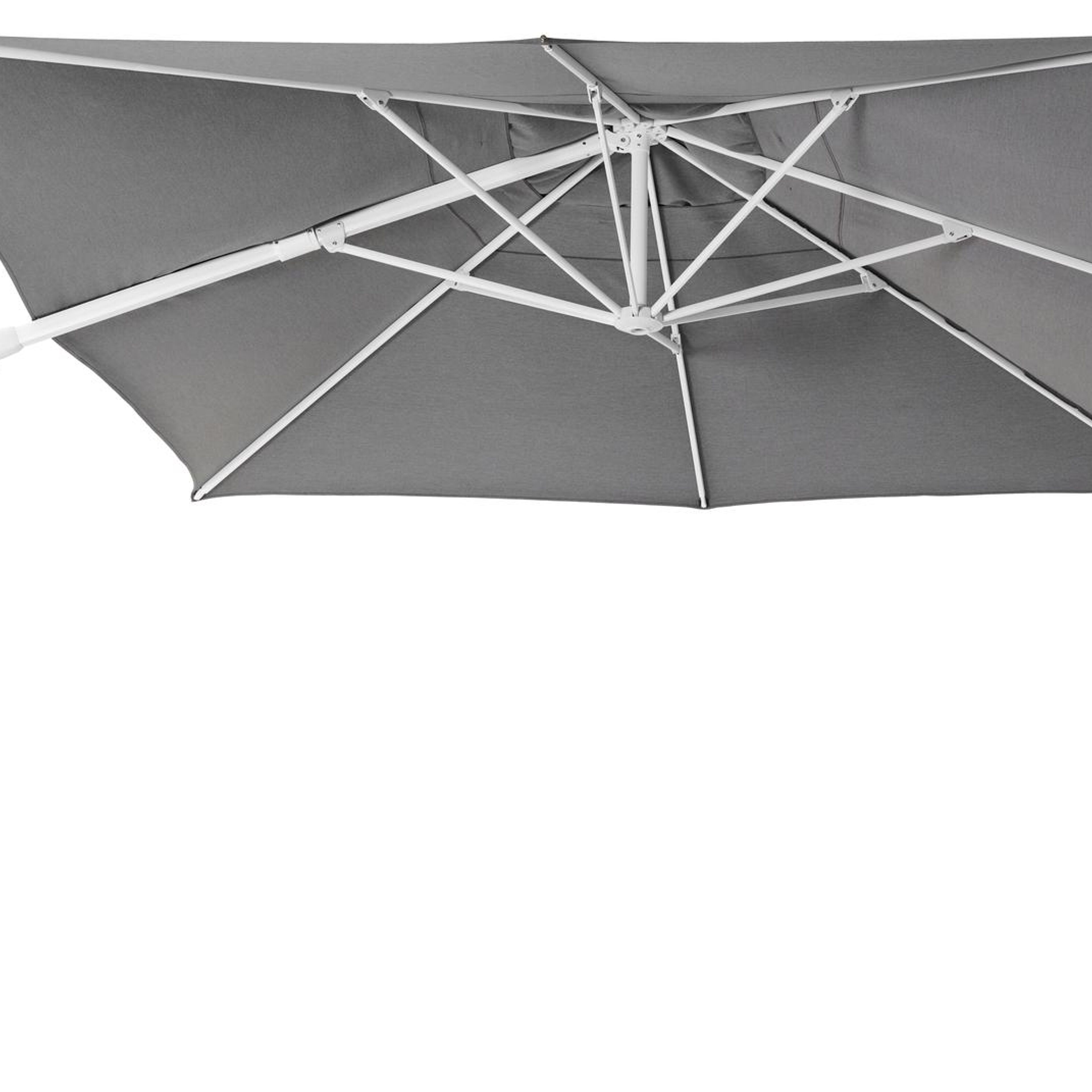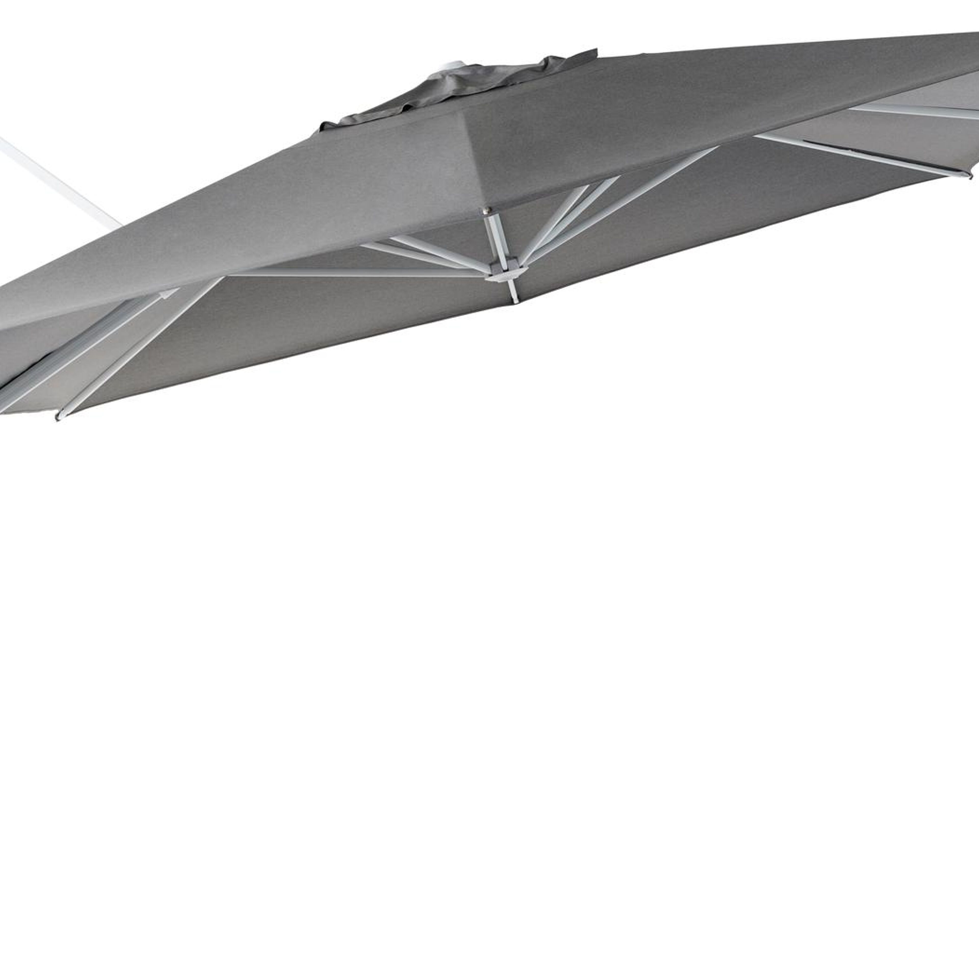 Het frame van de parasol is gemaakt uit roestvrij aluminium, een sterk, maar toch licht materiaal dat makkelijk verplaatsbaar is. Het oppervlak is glad afgewerkt waardoor het geen vuil aantrekt en onderhoudsvriendelijk is. De poedercoating zorgt voor de UV- en weerbestendigheid van je meubel. De Sunbrella® Luxe stof is bestand tegen weer en wind, mag het hele jaar buiten blijven en toont zich jarenlang slijt- en kleurvast dankzij de tot in de kern gekleurde acrylvezel.