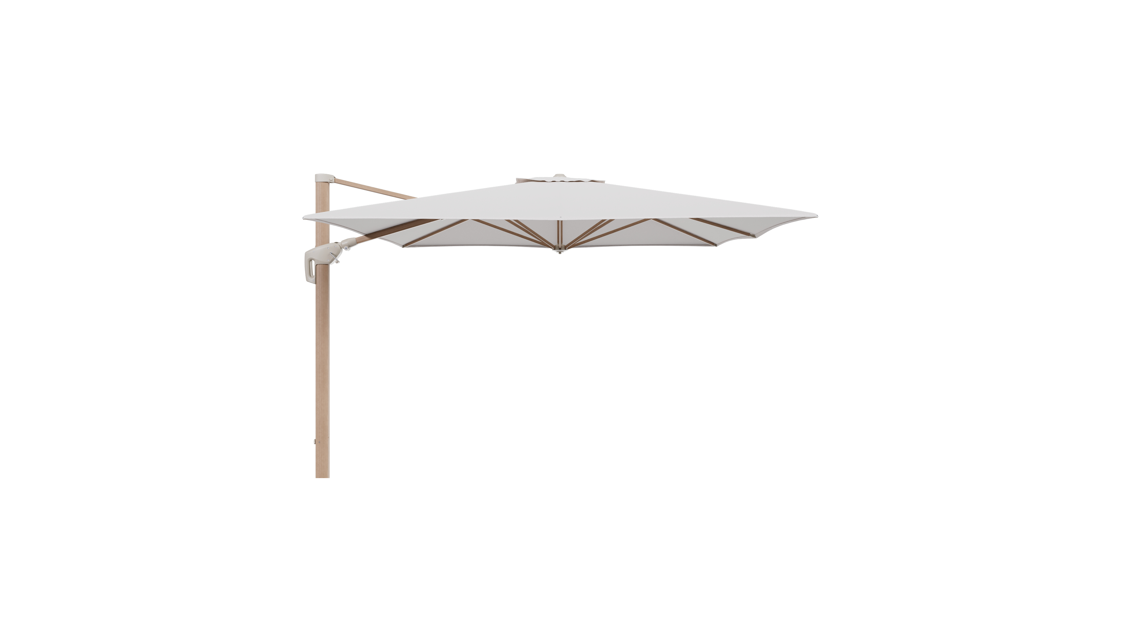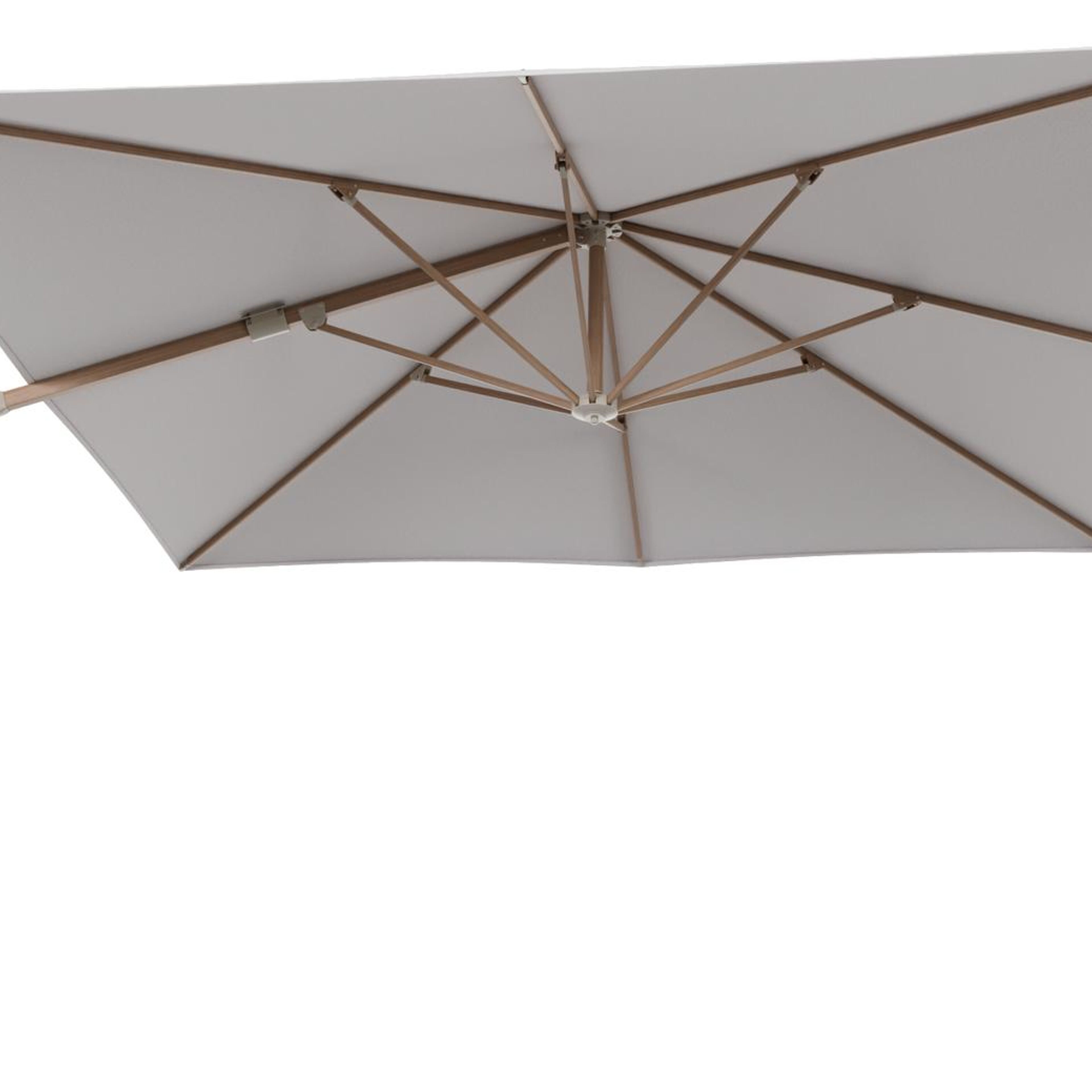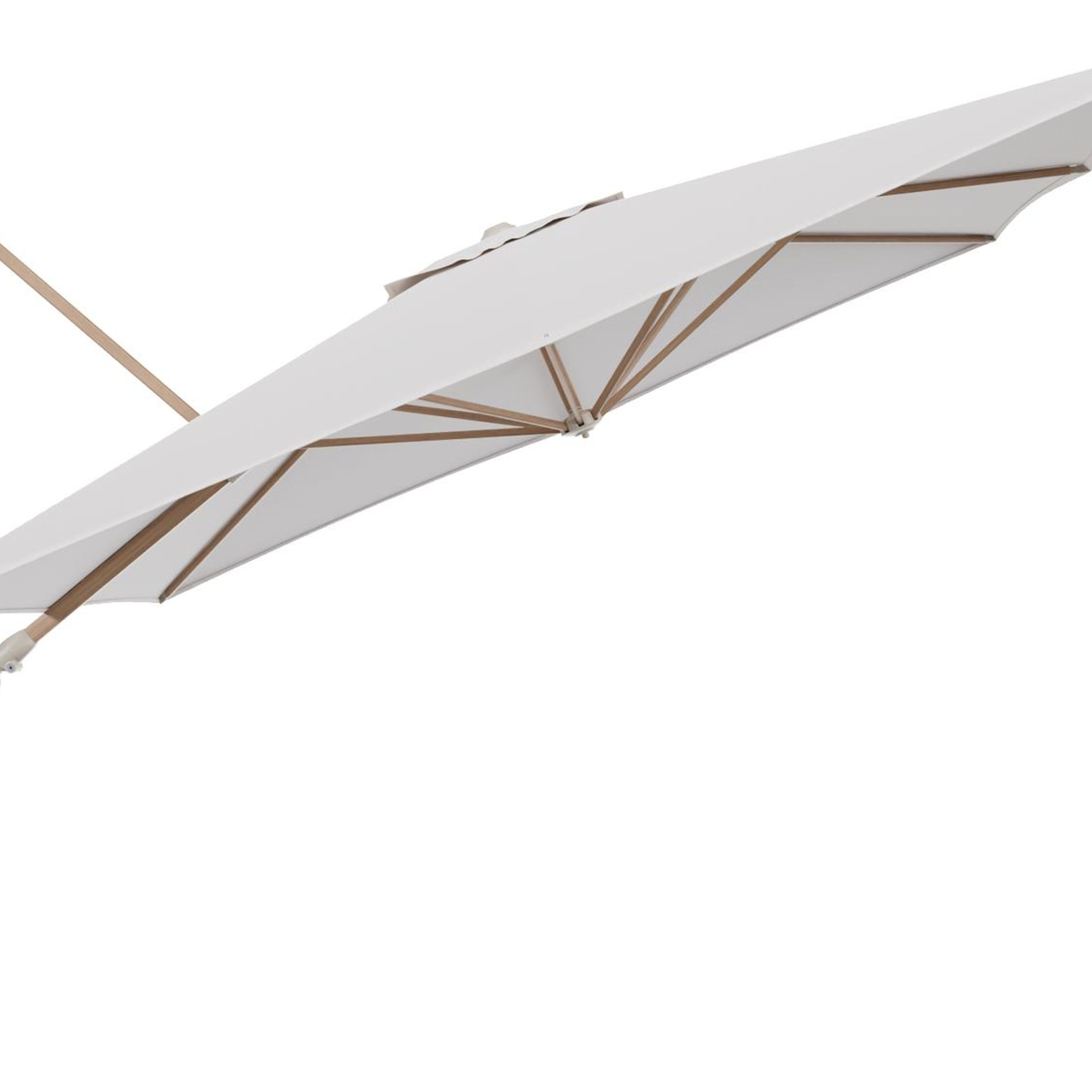 Minore zweefparasol met tiltfunctie in houtlook aluminium en Ego Eggshell All Weather Solica parasoldoek - L1 350 x L2 350 cm (zonder voet) (zonder voet) | Exterioo tuinmeubelen