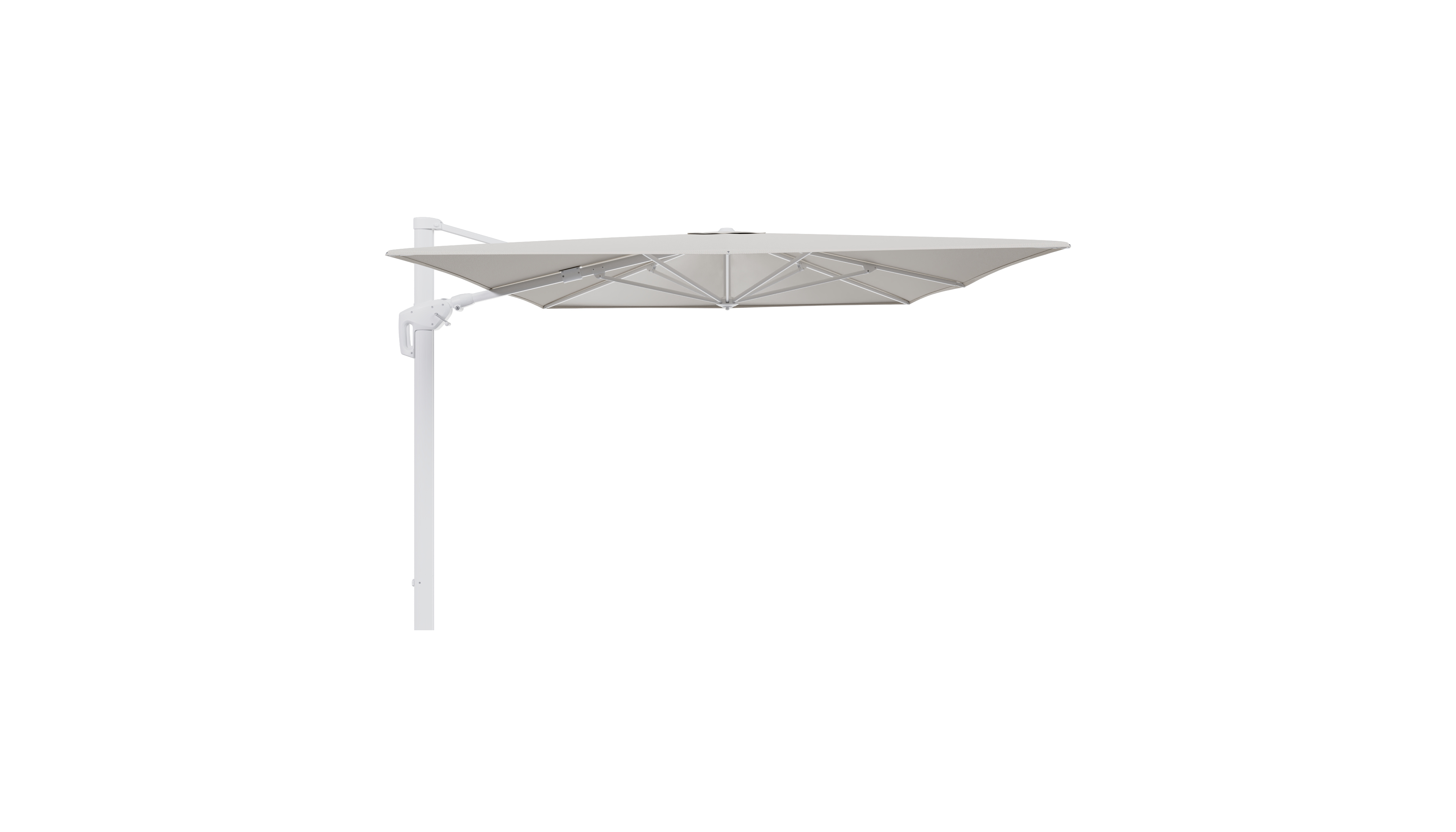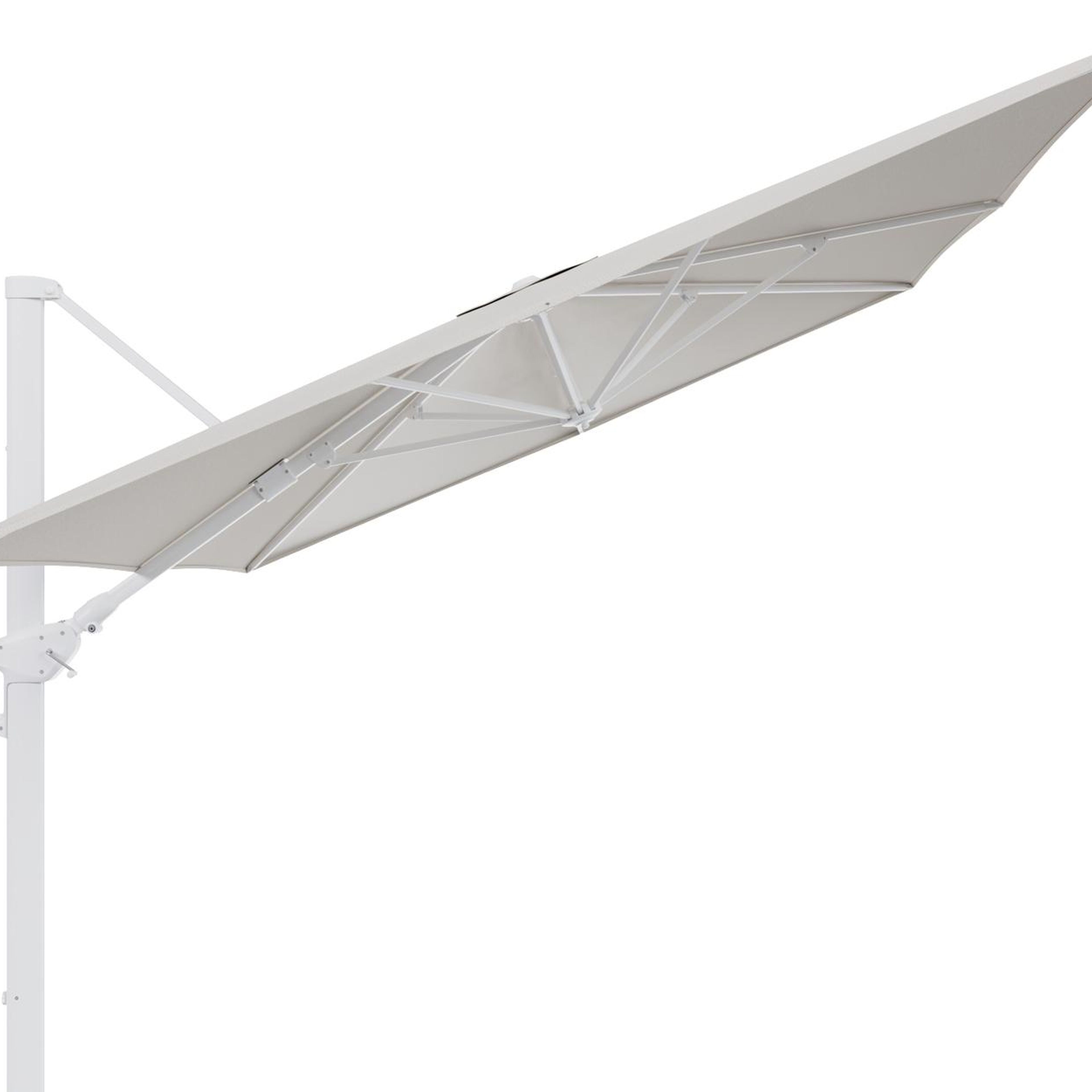 Minore zweefparasol tiltfunctie in wit aluminium en parasoldoek in All Weather Sunbrella® Luxe Lopi Marble - L1 400 x L2 300 cm (zonder voet) | Exterioo tuinmeubelen