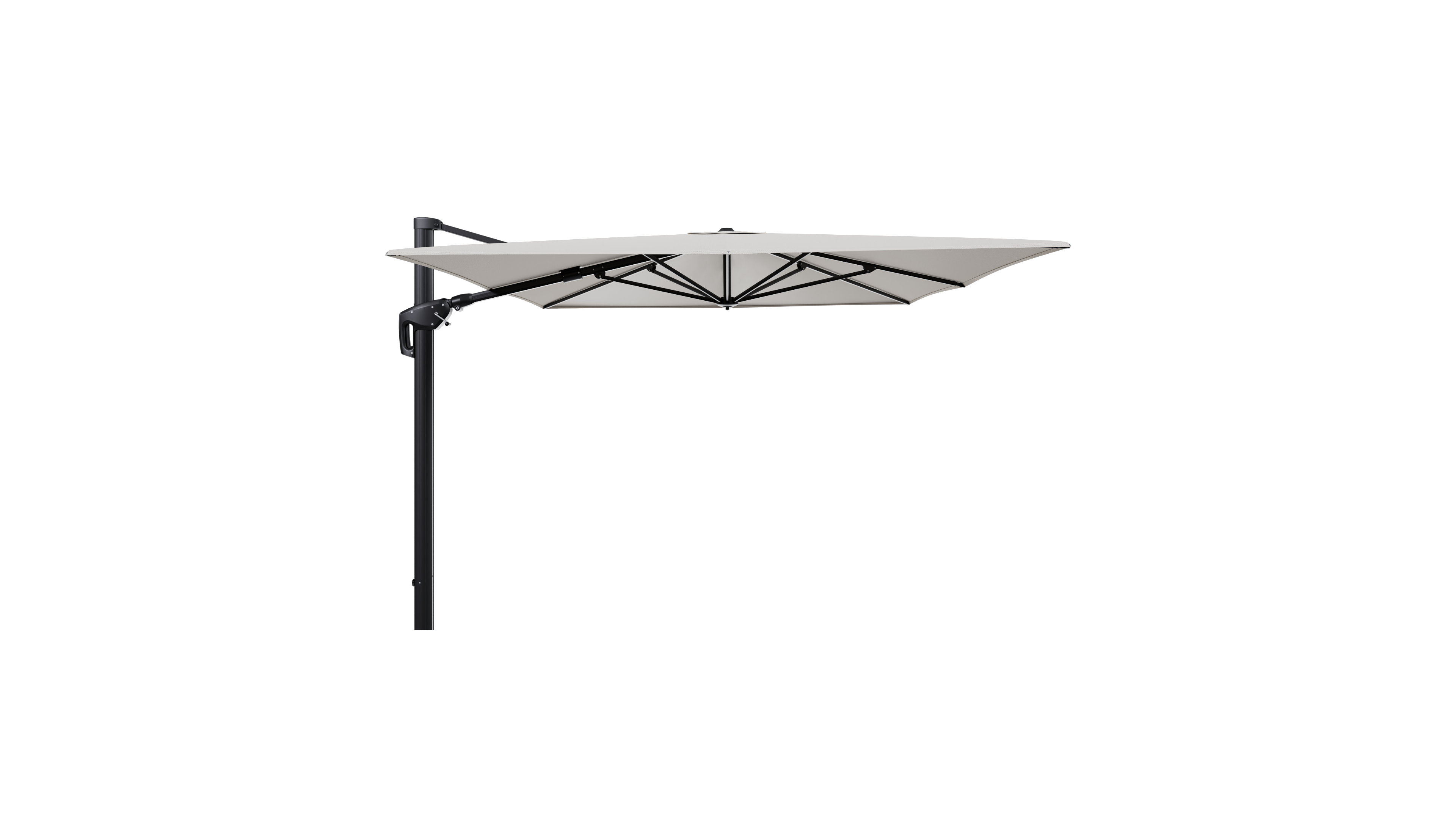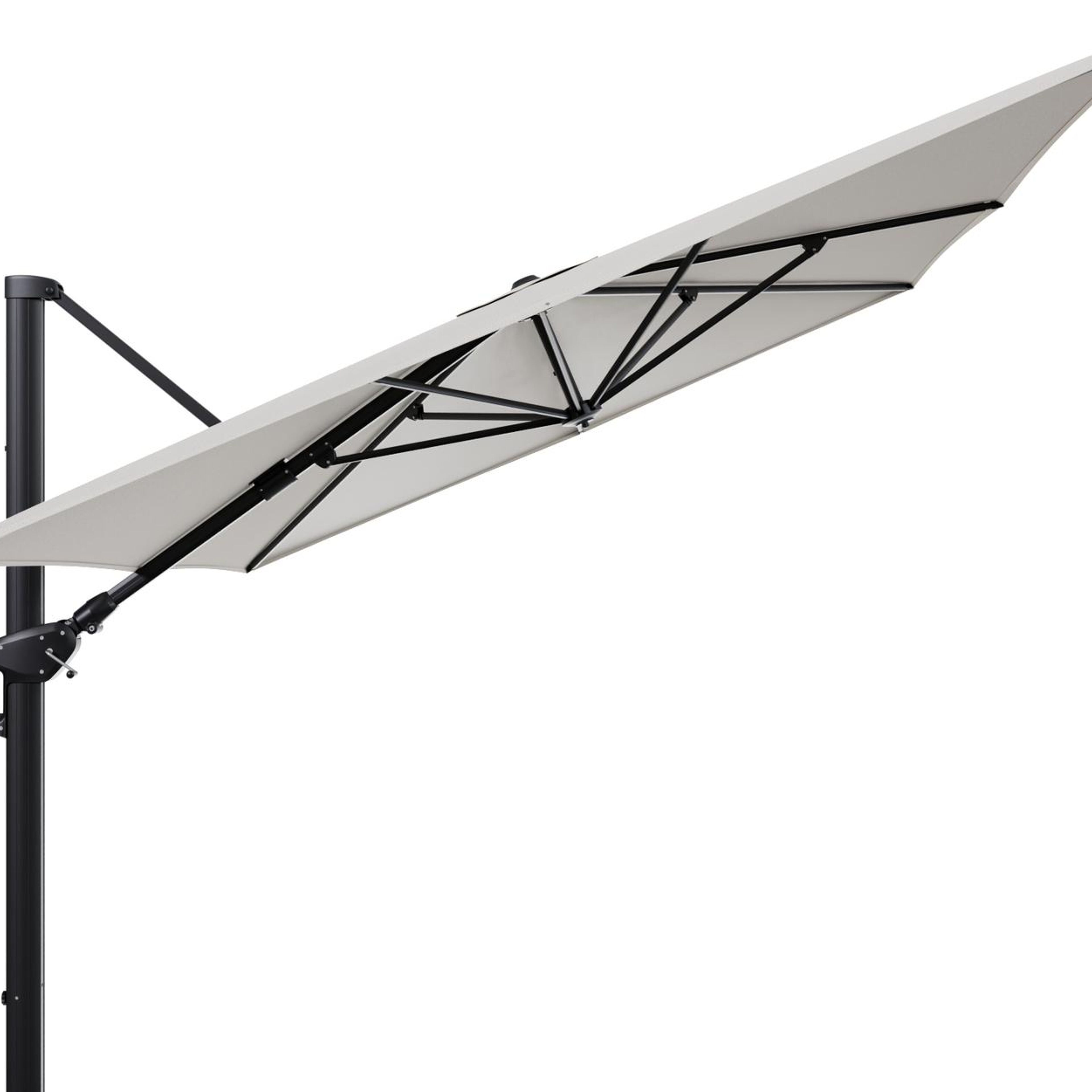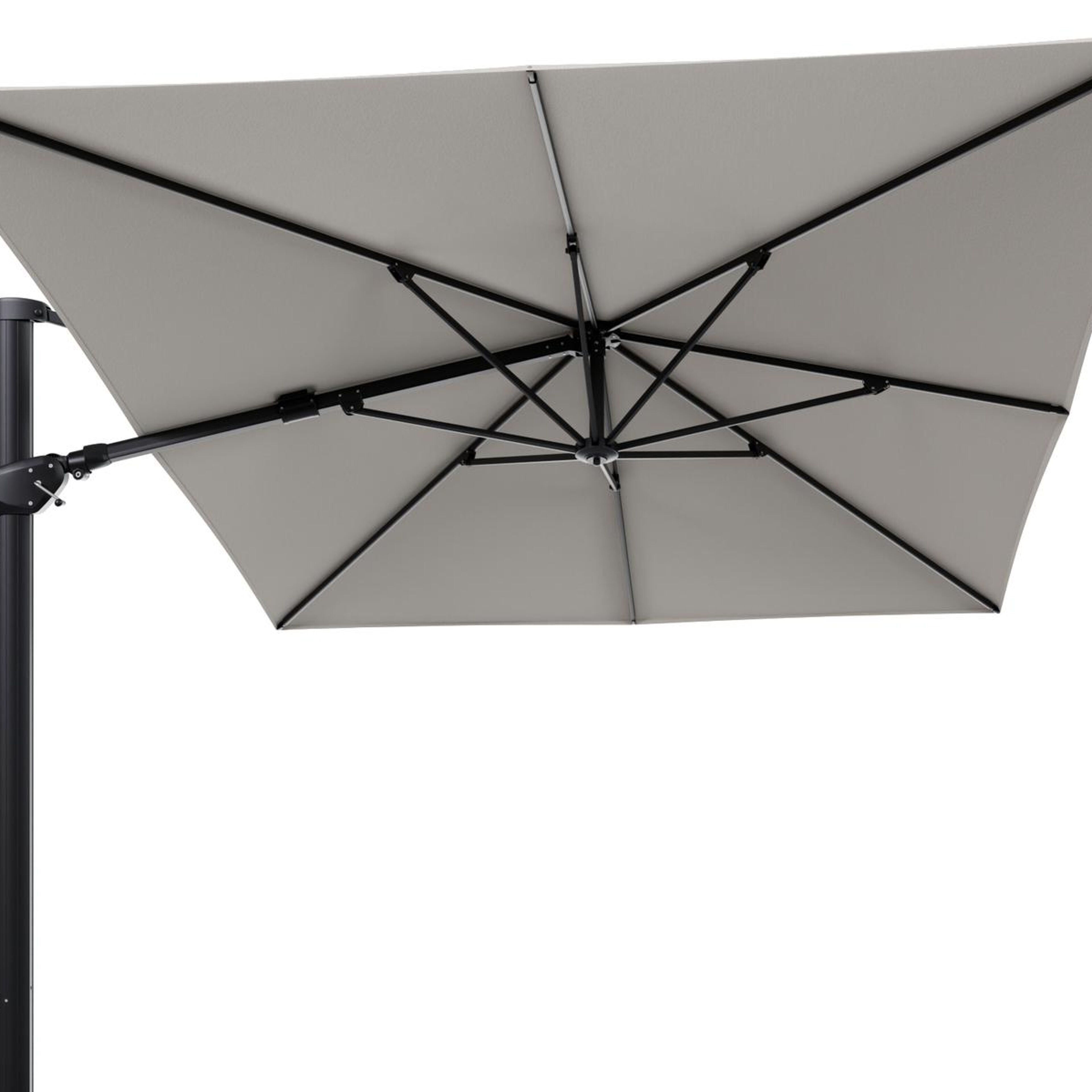 Minore zweefparasol tiltfunctie in zwart aluminium en parasoldoek in All Weather Sunbrella® Luxe Lopi Marble - L1 400 x L2 300 cm (zonder voet) | Exterioo tuinmeubelen