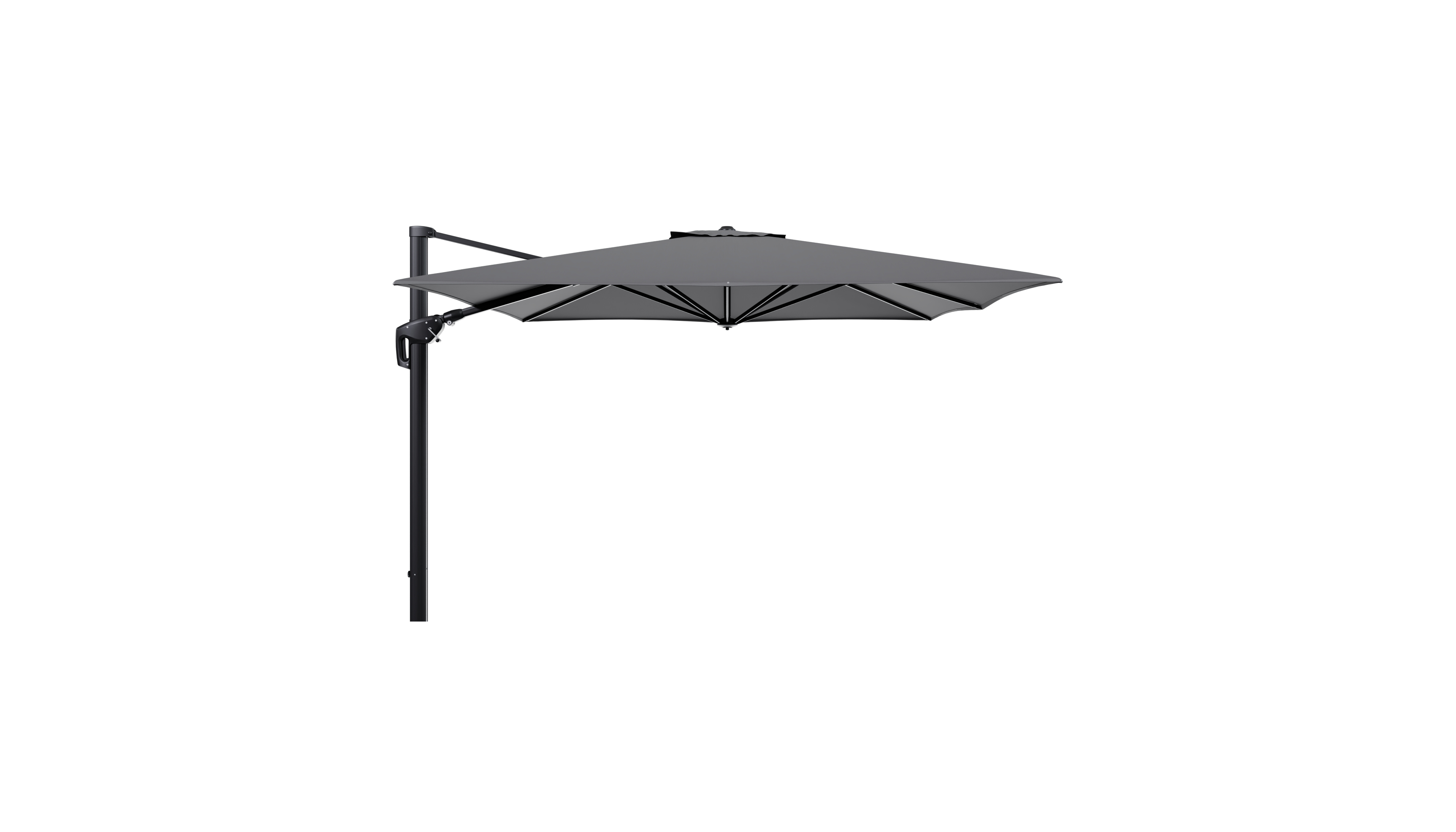 Minore zweefparasol tiltfunctie in zwart aluminium en parasoldoek in All Weather Sunbrella® Luxe Natte Charcoal Chine - L1 350 x L2: 350 cm (zonder voet) (zonder voet) | Exterioo tuinmeubelen