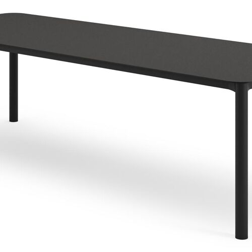 Mira rechthoekige afgeronde tuinset in zwart aluminium en sintered stone notte minerale met 10 Amalfi tuinstoelen | Exterioo