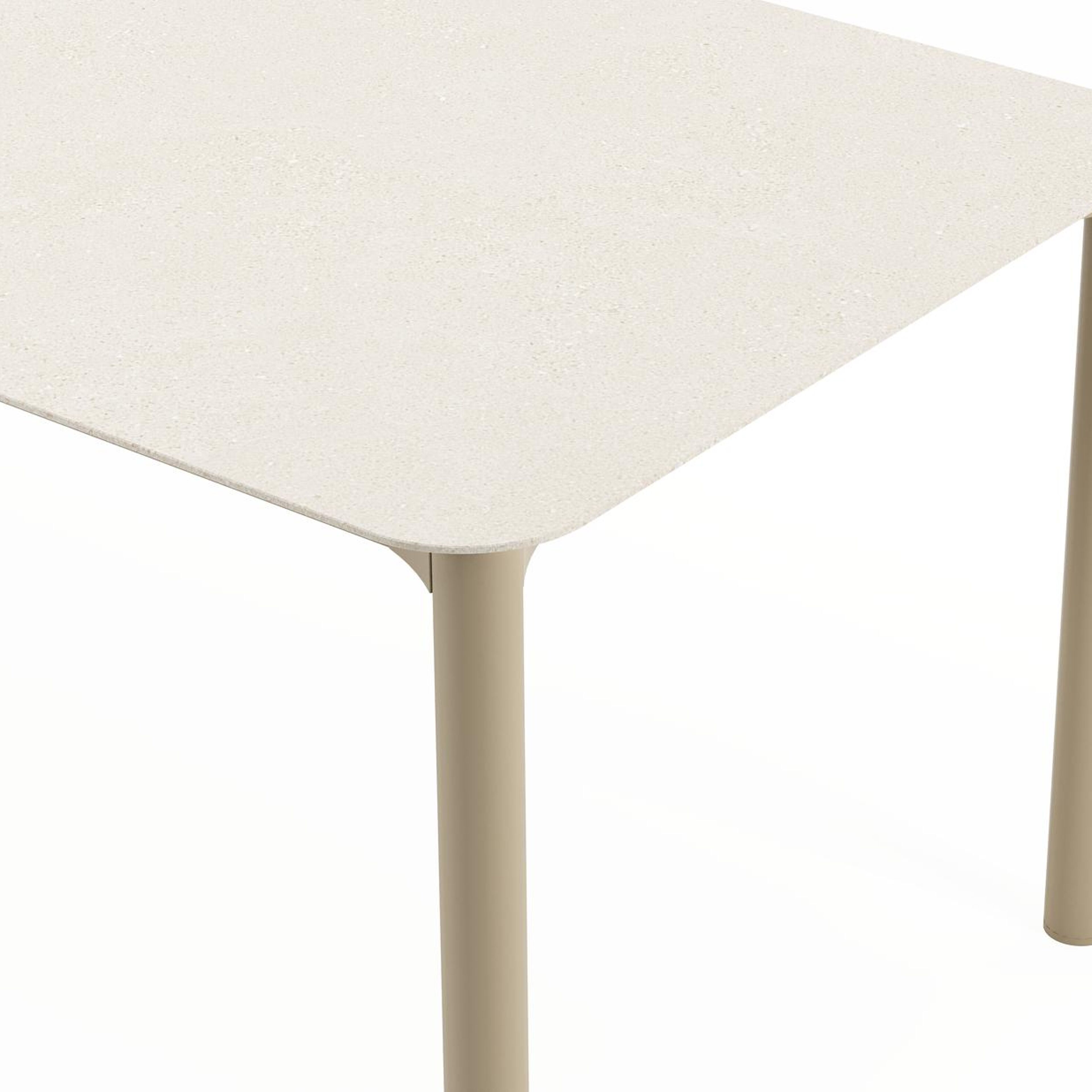 Het frame van de tafel is gemaakt uit roestvrij aluminium, een sterk, maar toch licht materiaal dat makkelijk verplaatsbaar is. Het oppervlak is glad afgewerkt waardoor het geen vuil aantrekt en onderhoudsvriendelijk is. De poedercoating zorgt voor de UV- en weerbestendigheid van je meubel.