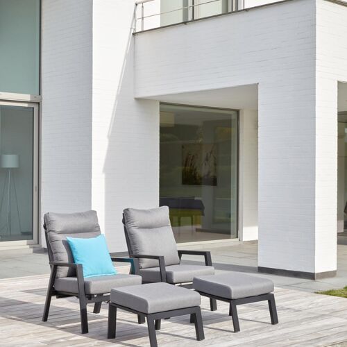 De Mismo loungeset met verstelbare rugleuning is de ideale toevoeging voor jouw terras om comfortabel te ontspannen. De Mismo loungeset met verstelbare rugleuning heeft een hoge rugleuning waardoor je geniet van extra zitcomfort. De drukknop geeft je de mogelijk om de rugleuning makkelijk te verstellen naar de gewenste positie.