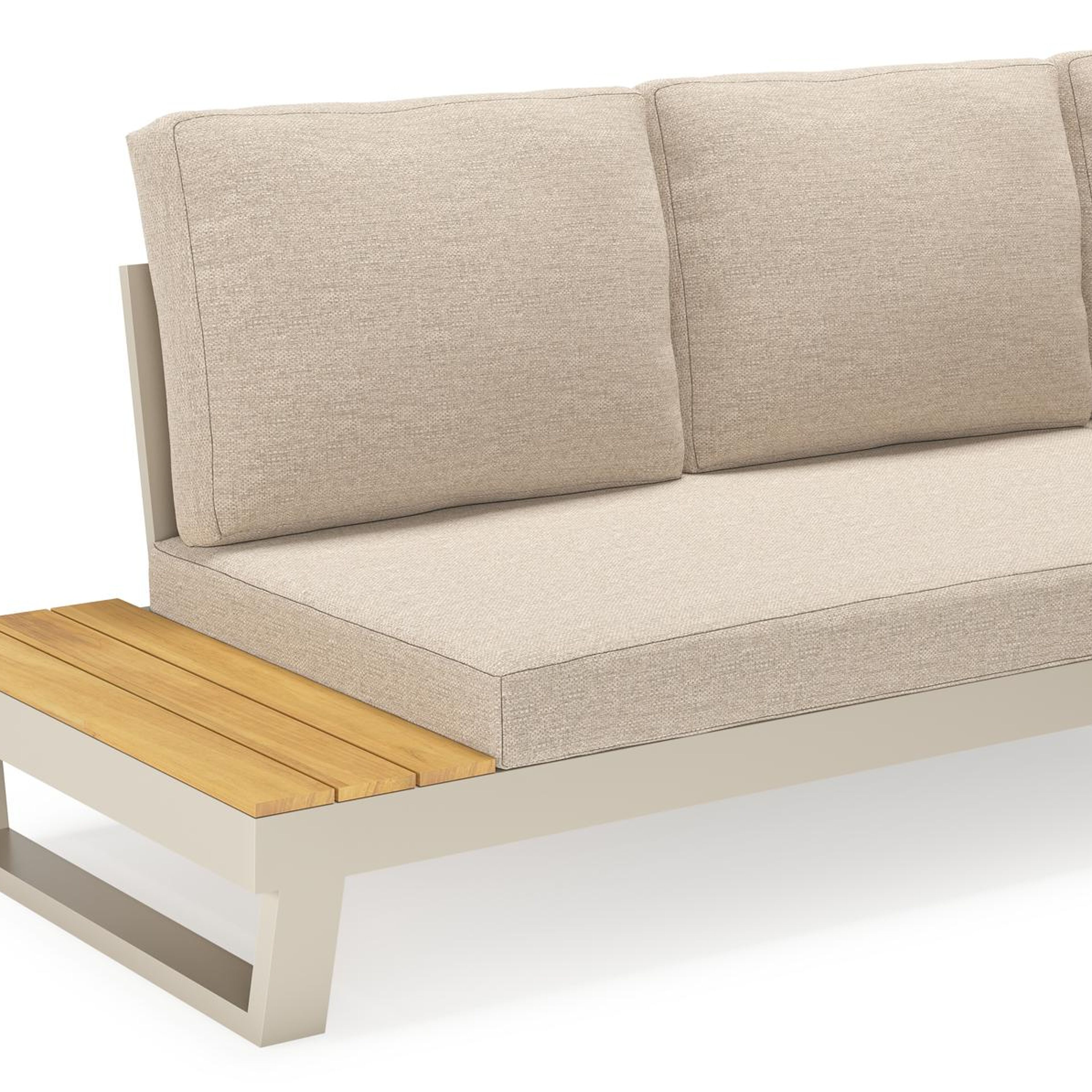 Modica loungehoek in beige aluminium en teak met rustic weather+ softtouch kussens | Exterioo tuinmeubelen