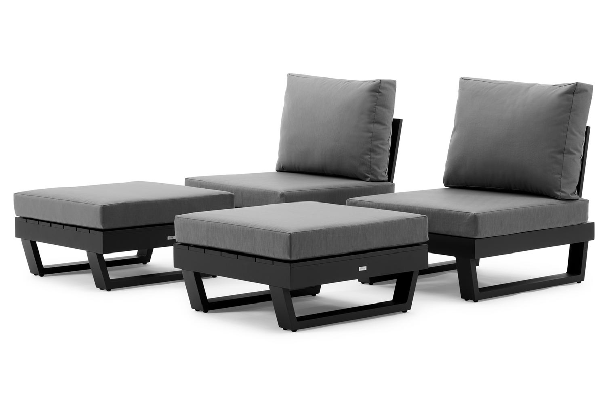 Modica loungeset in zwart aluminium met grijs textilene kussens | Exterioo