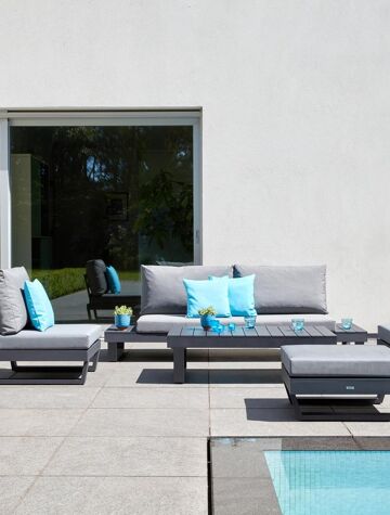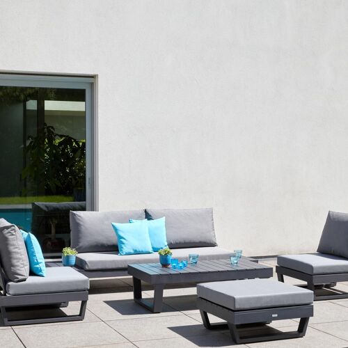 Modica lounge poef in zwart aluminium met grijs textilene kussen | Exterioo