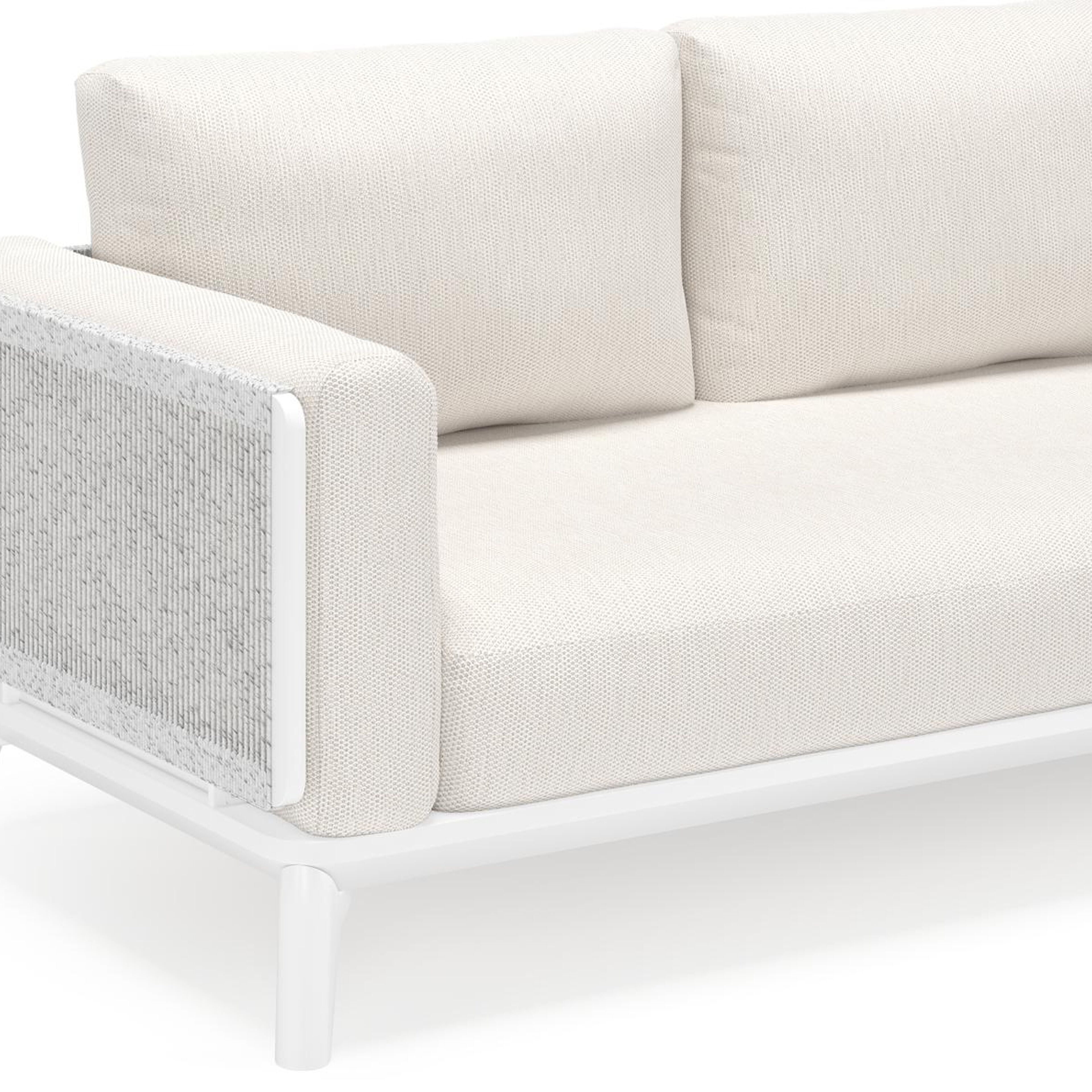 Het frame van de lounge is omgeven door wicker en geeft dezelfde uitstraling als een organisch materiaal. Wicker is een gevlochten (ronde of halfronde draad) kunststof en een bijzonder weersbestendig en onderhoudsvriendelijk materiaal. Kortom, zeer geschikt voor buitengebruik.