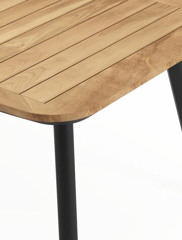 Een tafelblad uit teak staat gelijk aan bijzondere kwaliteit en natuurlijk design. Teak is een kwalitatieve houtsoort gekenmerkt door zijn hardheid. Aangezien hout leeft, kan de structuur of kleur licht anders zijn dan op het beeld weergegeven.